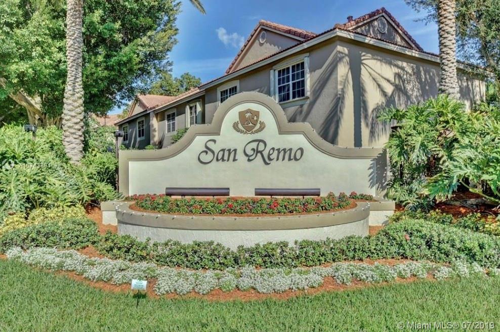 Welcome to this beautiful and meticulously well maintained home. This charming townhouse offers tile floors throughout, 2 master bedrooms with oversized walk-in closets and remodeled bathrooms, 1 car garage, all impact glass windows and door, stainless steel kitchen appliances, new washer & dryer, an outside porch and a convenient 1/2 bath in first floor. Located in quiet and safe San Remo Gated Community with basketball courts, pool and kids playground. Surrounded by A+ rated schools. Call today to schedule your appointment,see this gem for yourself and fall in love with it.