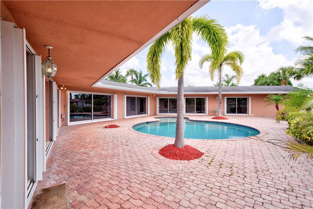 Significant price reduction! Large waterfront home with 4 bedrooms and 4 bathrooms. 3 of the bedrooms have the baths ensuite and walk in closets. This home is on an oversized lot at the end of a cul-de-sac with approximately 160 Ft of seawall. This home was built by an architect for his family. The home is spacious and bright and wraps around the sparkling salt chlorinated swimming pool. Enormous living room features a beautiful fireplace. Oversized 2 car garage with space for a workshop. Brand new roof is being installed and home is ready for occupancy, or if you choose, update to your desires. Come and see!