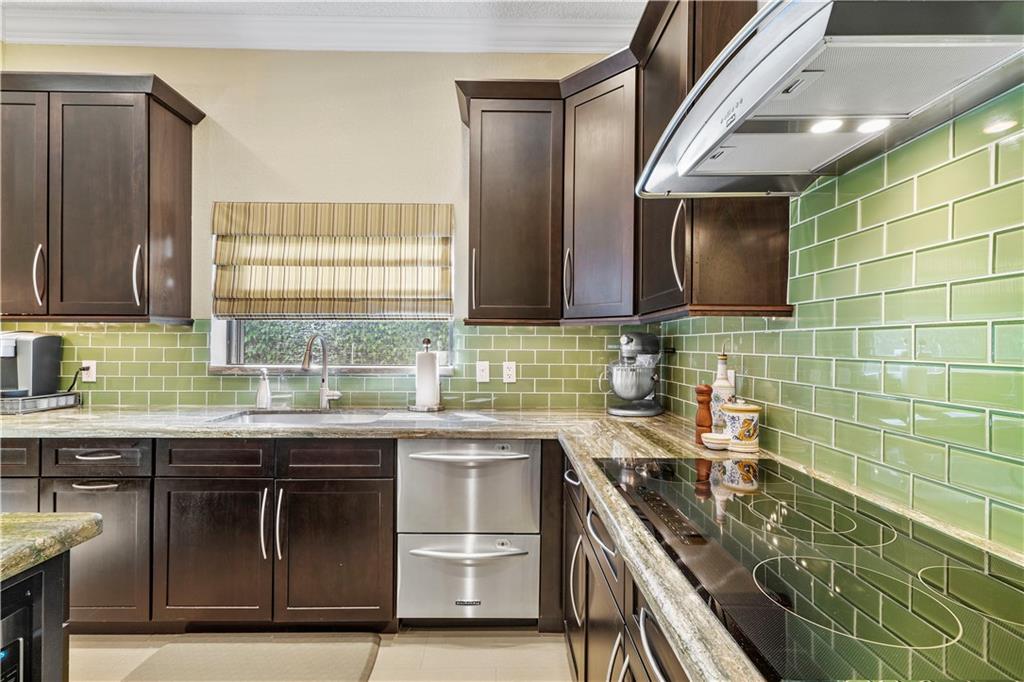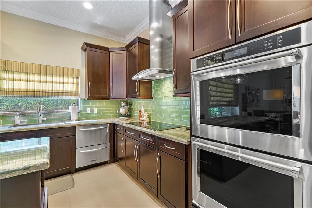 UPGRADES! UPGRADES! Enjoy living in a relaxed and elegant opened environment where no expense has been spared. All the designer finishes were chosen with great care! Crown moldings, 12ft ceilings, open floor plan, three sets of french doors. The kitchen is a chef's dream and makes entertaining easy! Enjoy the large center island KtichenAid appliances: including double ovens, induction cook-top, double draw dishwasher. The spacious master suite has a double door entry, sitting area, custom his and her closets and a beautiful master bathroom w/ over-sized shower and soaking tub. The outdoor living features include an outside cabana bath, diamond bright heated pool, relaxing spa, paver pool deck and the "new" artificial grass in a private setting. This home has the WOW factor in and out!
