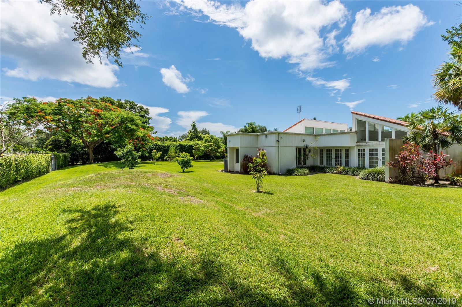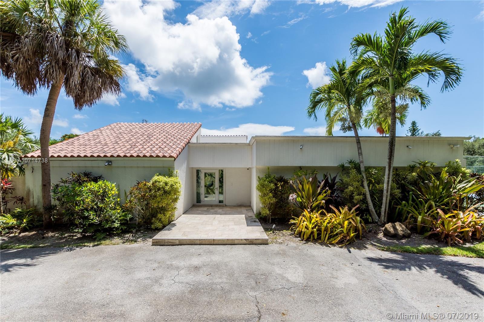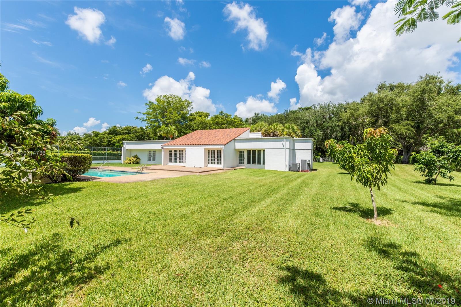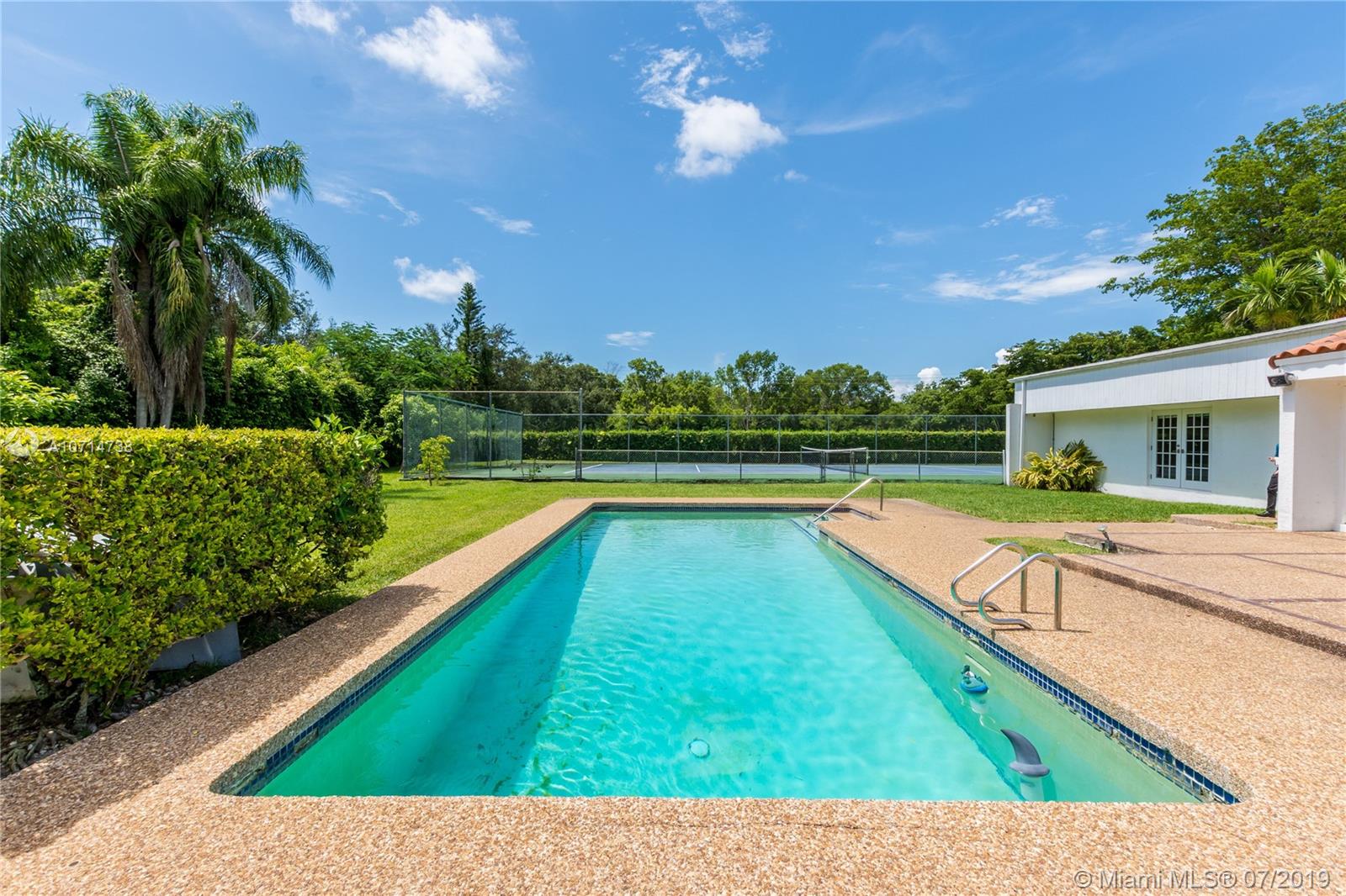 A beautifully landscaped acre in a quiet corner of southeast Pinecrest harbors this modern, designer 3BD/3BA gated home with a wide-open floor plan, volume ceilings & unfettered natural light streaming in on all sides. Chic decorative touches are everywhere, from the trendy drop lighting, to the arched built-ins, colorful kitchen backsplash, tropical leaf fans, a spectacular showcase stained-glass entrance & more. The master suite, which opens to the pool, boasts a big custom closet & large bath with a deep soaking jetted tub and glass brick shower. The expansive, completely private yard provides plenty of space for play, entertainment & relaxation. With the new owners' TLC, the swimming pool and tennis court will complement the home's active, outdoor South Florida lifestyle appeal.