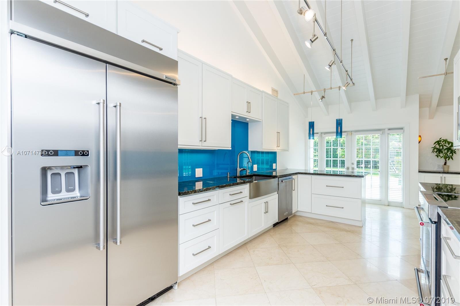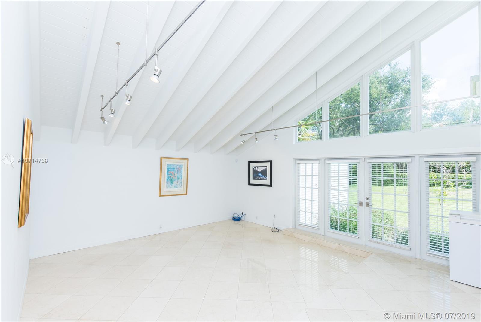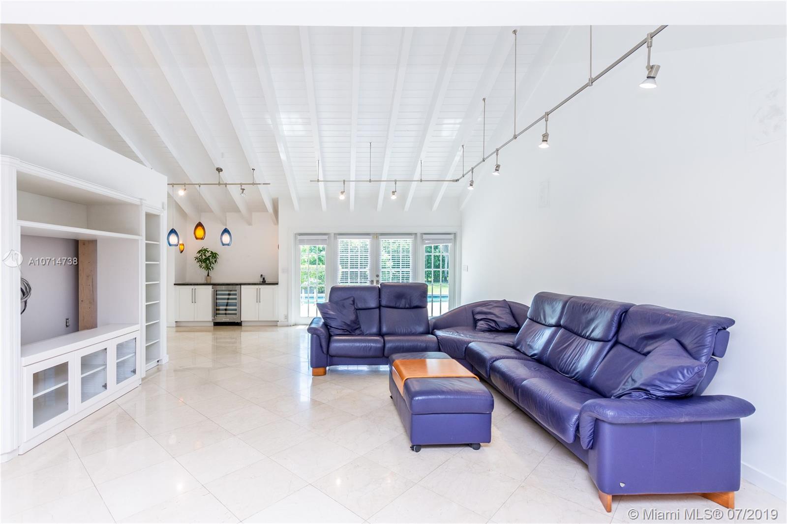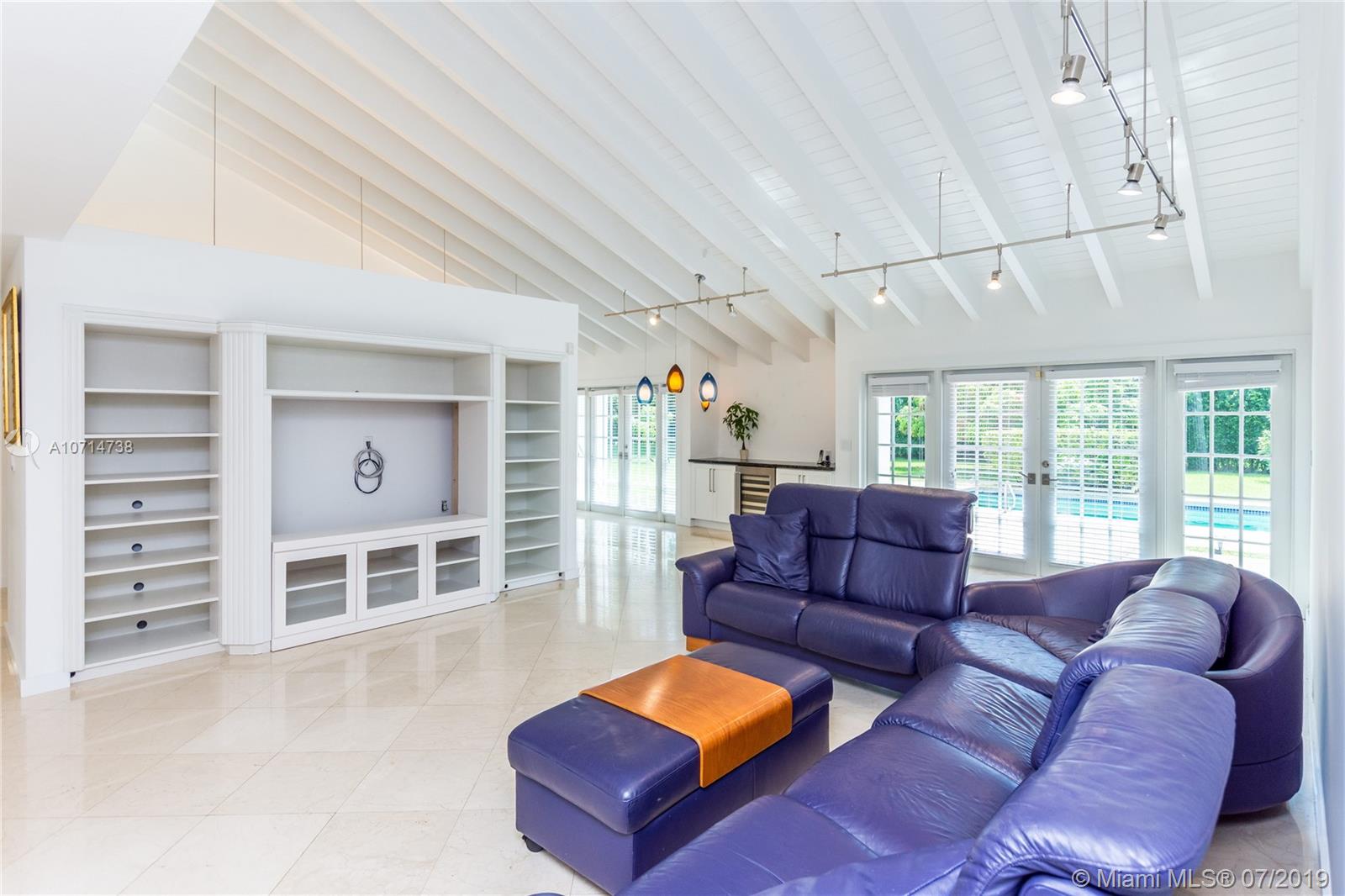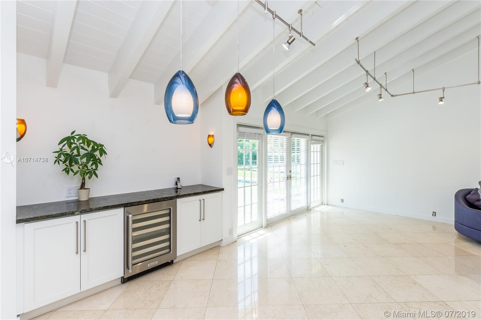 A beautifully landscaped acre in a quiet corner of southeast Pinecrest harbors this modern, designer 3BD/3BA gated home with a wide-open floor plan, volume ceilings & unfettered natural light streaming in on all sides. Chic decorative touches are everywhere, from the trendy drop lighting, to the arched built-ins, colorful kitchen backsplash, tropical leaf fans, a spectacular showcase stained-glass entrance & more. The master suite, which opens to the pool, boasts a big custom closet & large bath with a deep soaking jetted tub and glass brick shower. The expansive, completely private yard provides plenty of space for play, entertainment & relaxation. With the new owners' TLC, the swimming pool and tennis court will complement the home's active, outdoor South Florida lifestyle appeal.