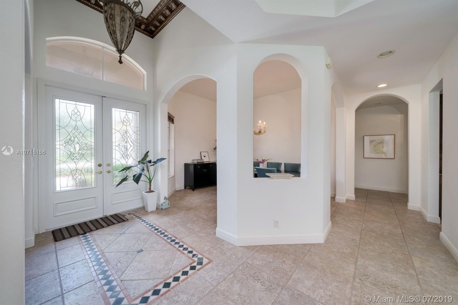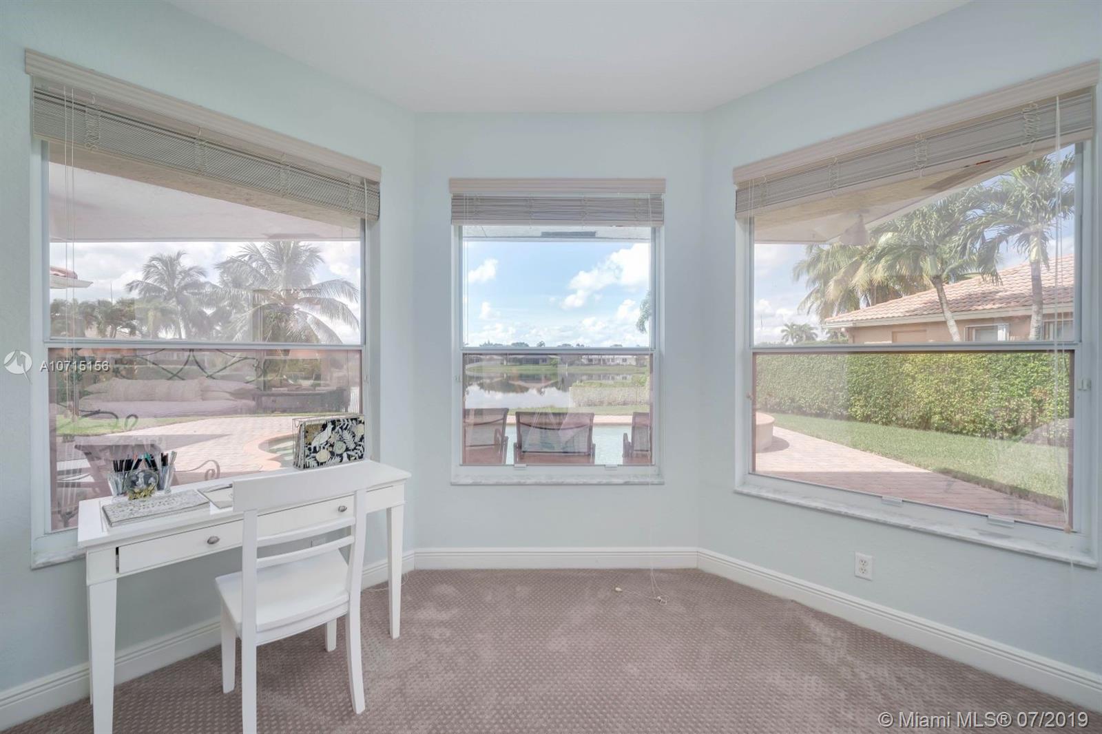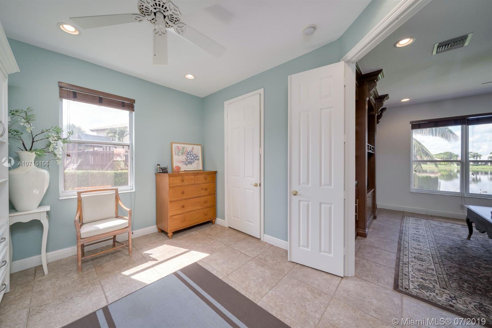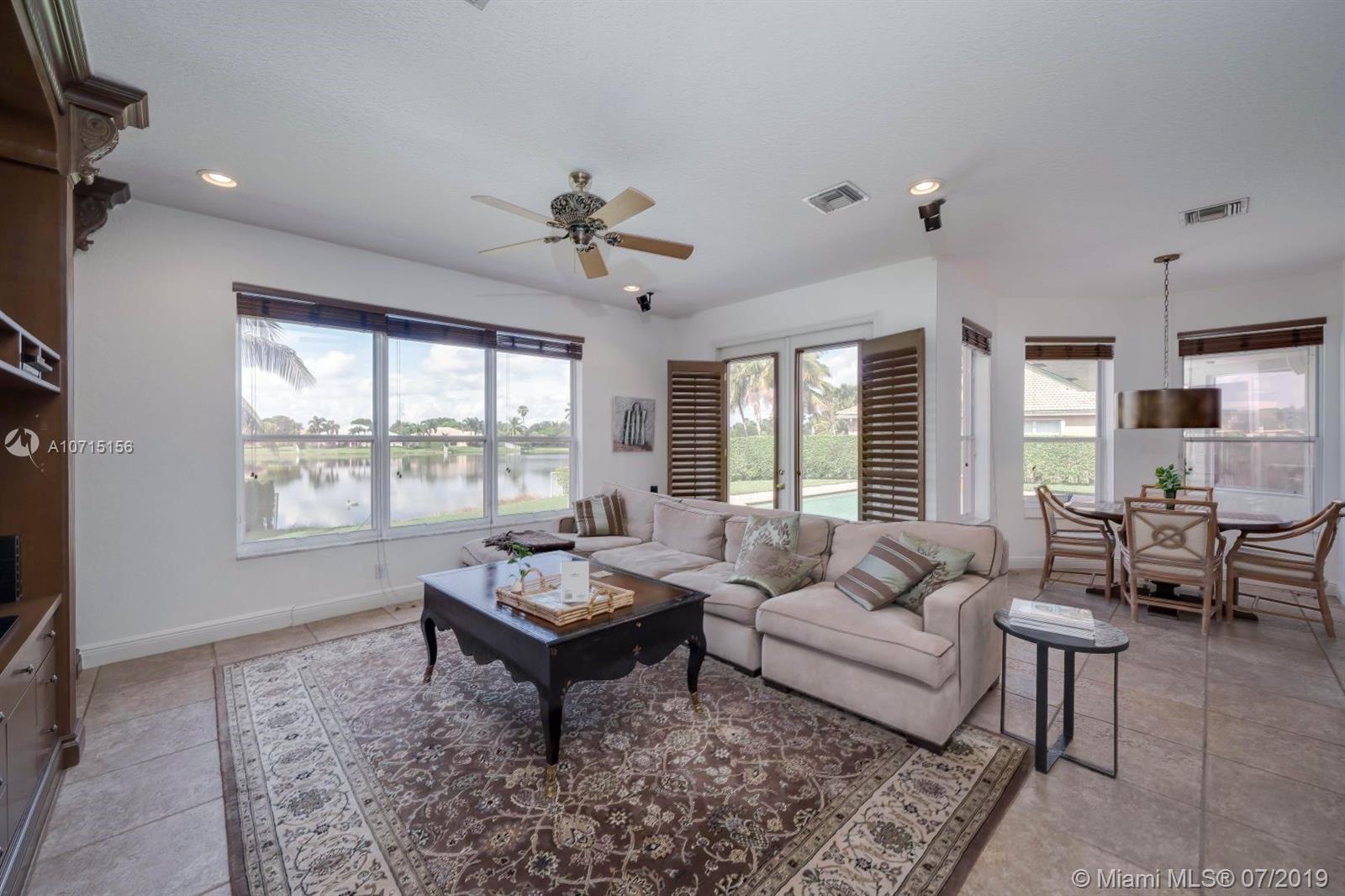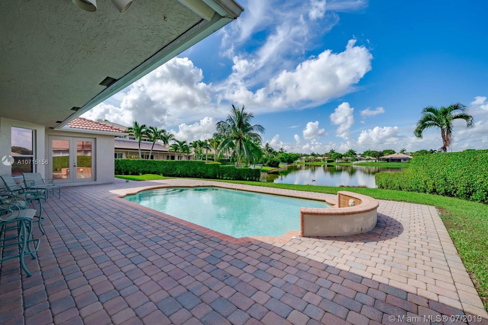 Amazing Waterfront Pool home in 24hr. Gated community/Country Glen. This 4 bedroom(plus office/den) 3.5 bath home in immaculate condition. Tile flooring in living/guest BR areas/carpet in master. Brick pavers lead from drive/entryway into foyer w/crown molding. Look thru French doors to Fabulous pool/wide lake view beyond, w/covered patio. Remodeled granite countertop kitchen w/new Fridge, cooktop, dishwasher, double oven. Walk-in pantry w/custom shelving. All closets custom built-ins. Huge master BR w/sitting area/crown molding/great lake view, His/hers walk-in closets. Luxury, Spa like Master Bath. Triple split BR's w/4th BR having an en-suite, doubles as a cabana bath. Vaulted ceilings throughout. Inside Laundry. Fully fenced yard. Custom built-ins, FR & office/den. Corner Lot .49 acres