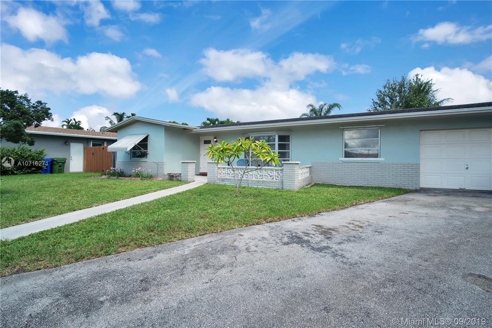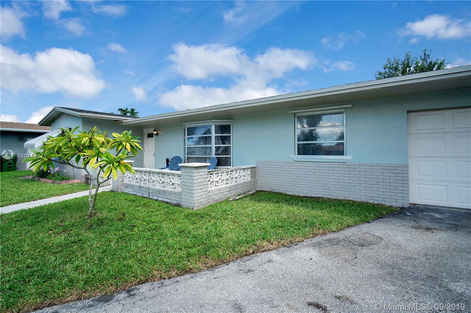 THIS ONE STORY SINGLE FAMILY HOME SITS IN THE MUCH DESIRED PEMBROKE PINES NEAR SHOPPING, DINING & PARKS. THIS SPACIOUS HOME -ON A CUL-DE SAC WITH NO HOA HAS 3 BEDROOMS, 2 FULL BATHROOMS, LARGE 1 CAR GARAGE, BACKYARD, PORCH & DRIVEWAY BIG ENOUGH TO PARK 3 CARS OR EVEN A BOAT. THIS SPACIOUS HOME CAN EASILY BECOME A 4 BEDROOMS HOME. IN ADDITION TO THAT SINCE THE GARAGE HAS AN INDEPENDENT ENTRANCE THIS HOME HAS POTENTIAL FOR GENERATING EXTRA INCOME BY CONVERTING THE GARAGE INTO AN EFFICIENCY. STOVE, DISHWASHER & MICROWAVE ARE ALL STAINLESS STEEL. HOME HAS FULL SIZE WASHER & DRYER. PLENTY OF CLOSET SPACE & LARGE WALK-IN-CLOSET IN MASTER BEDROOM. A MUST SEE. EASY TO SHOW.