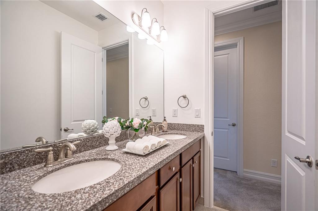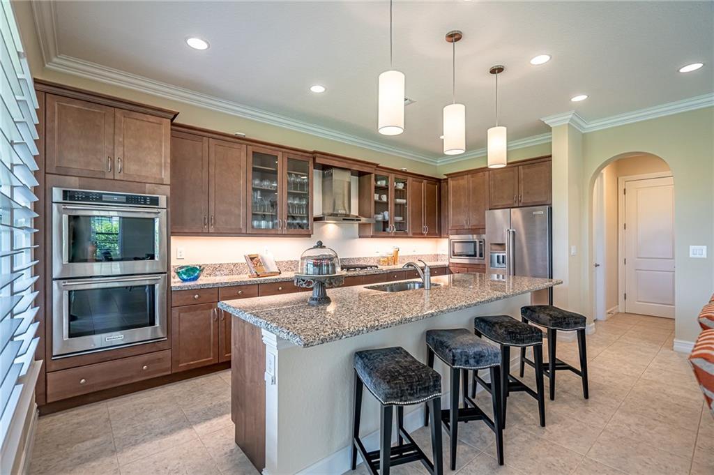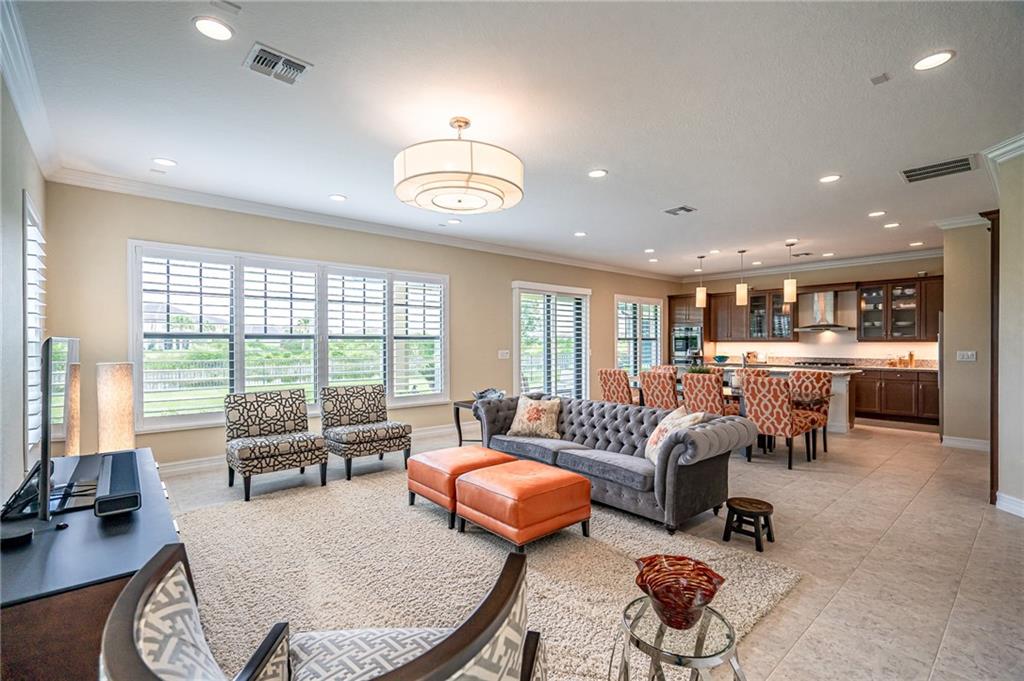 Featuring crown molding adorning all of the ceilings and beautiful plantation shutters on all windows, this beautiful 4 bedroom + den, 3.5 bath home sits on a premier lot with a covered lanai overlooking an extended fenced in backyard with plenty of room for a pool and breathtaking views of the lake and the preserve. You will wake up in the mornings enjoying meals prepared in your kitchen equipped with S/S appliances including double oven, 5 gas top burners, 4’ extended granite island, maple saddle kitchen cabinets w/pull out drawers. The second story offers a spacious master suite with a luxurious bathroom with dual sinks, a Roman tub, a junior suite, and two other bedrooms with an extra bathroom. See supplement remarks for additional information.