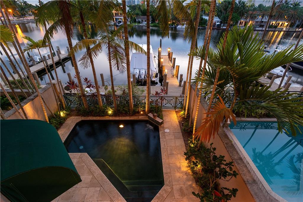 Luxury Las Olas waterfront living at it's finest with deep water dockage for a 100ft plus boat overlooking a spectacular 300' wide canal. This gorgeous 3-story gated residence w/ elevator offers tranquil waterway views from almost every room and from any one of the 3 private terraces. Relax in your private, tropically landscaped waterside pool & enjoy custom interior features such as a sleek eat-in kitchen w/ granite counters & high-end appliances, spacious 2-story living area w/ soaring ceilings, marble flooring & romantic gas fireplace. Amazing master suite w/ dual walk-in closets, 4th bedroom is a rich built-out office/den w/ full wet bar, fridge, icemaker and wine cooler, equipped w/ 20 KW generator. Seconds to beaches & famous Las Olas restaurants, shops and nightlife.