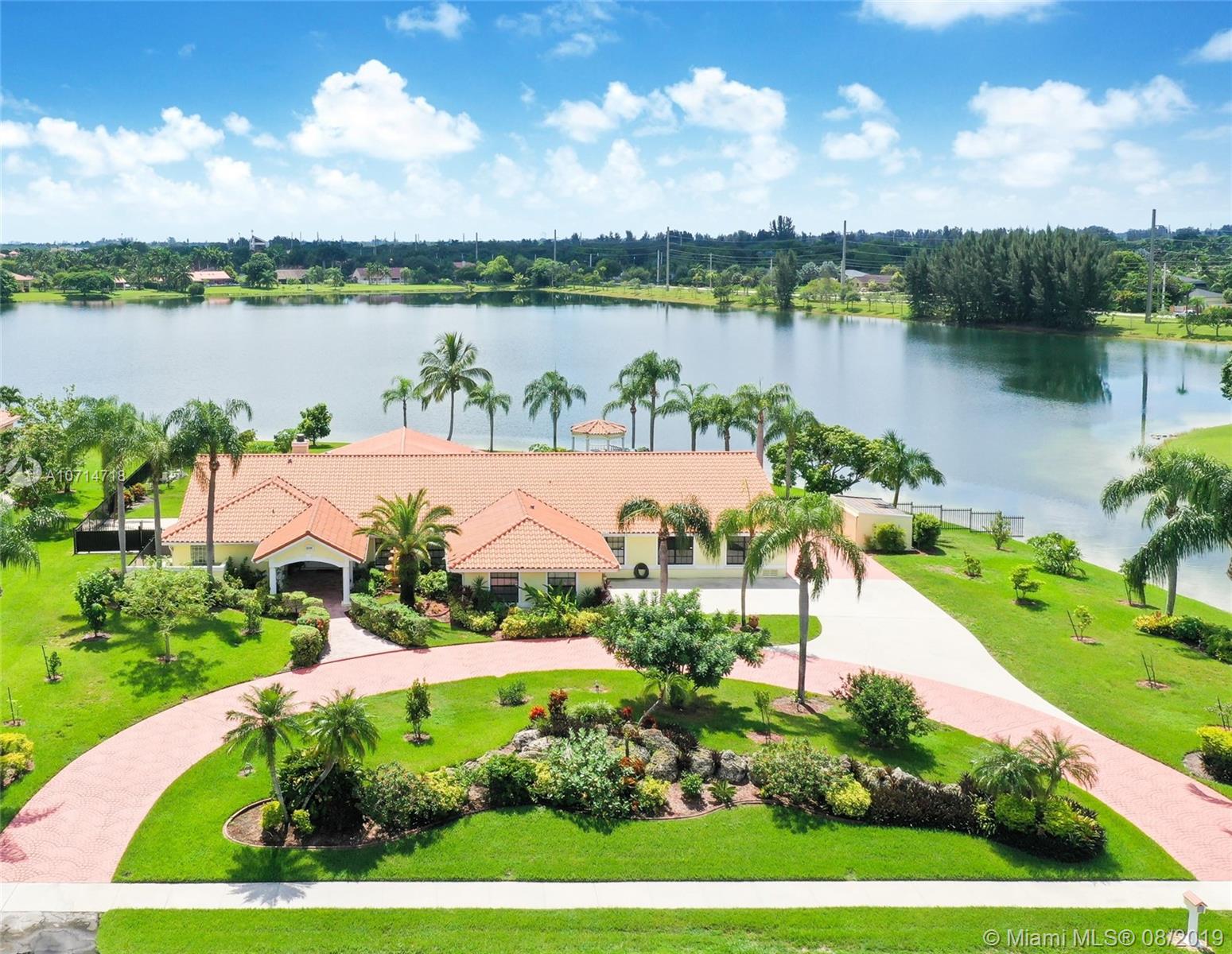 Nestled on a private one acre lot, this truly unique and completely renovated home with wraparound water features captivating and extensive lake views. The spacious 900 sq ft covered paver patio with stunning wood ceiling is perfect for enjoying the outdoors and overlooks the 40x20 heated pool and spa with fountains and fiber optic lights. Lushly landscaped and fenced yard has over 60 exotic fruit trees as well as a 30x24 concrete pad for RV or boat. Interior boasts large center island kitchen, master bedroom with sitting area and rectangular porcelain tile floors everywhere. Main house has 4 bdrms 2.5 baths and "in-laws" suite has 1 bedrm and 1 bath. The 2 car garage and circular driveway provides ample parking but there is space under roof to create additional 2 bays. Must See!