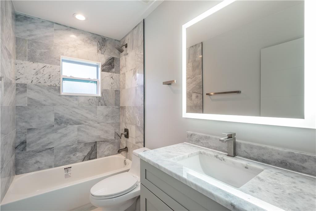 This stunningly remodeled 3 bedroom 2 bathroom home is in the sought after community of Shady Banks. This bright & open home has vaulted ceilings & high impact windows throughout. The kitchen is modern & elegant with high-end 2 tone shaker cabinets, stainless steel appliances & quartz counter-tops. This style continues throughout the house into the master-bath with the impressive wall to wall, walk-in rain shower & marble top dual sink vanity. This home has been COMPLETELY renovated down to the concrete walls with New Electrical, New A/C, New Roof & the list keeps going. You will have the comfort & peace of mind that comes with NEW Construction. This AMAZING OPPORTUNITY to live in East Ft Lauderdale walking distance to a park won't last long. Come see for yourself, you'll be glad you did.