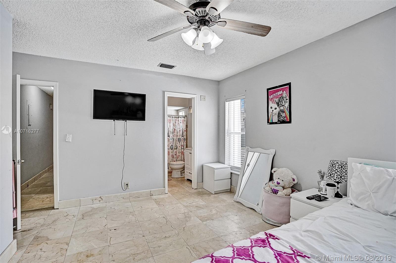 Amazing opportunity to own a beautiful 4/3 POOL home in Millers Sunrise Estate in West Sunrise! This beauty is nestled away on a quiet street on an oversized lot with a large inviting pool perfect for entertaining. Home features an open concept floorplan, volume ceilings, beautifully upgraded bathrooms, marble floors throughout. Painted in modern neutral colors. Large eat-in kitchen with stainless steel appliances. Fully equipped with accordion hurricane shutters. Spacious back yard with shed for storage. Newly fenced in backyard for added privacy. Centrally located within minutes of Sawgrass Mills Mall, schools, parks, shopping and places of worship. No association fees. Easy to show!