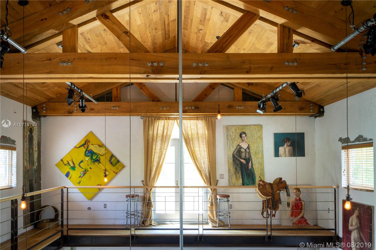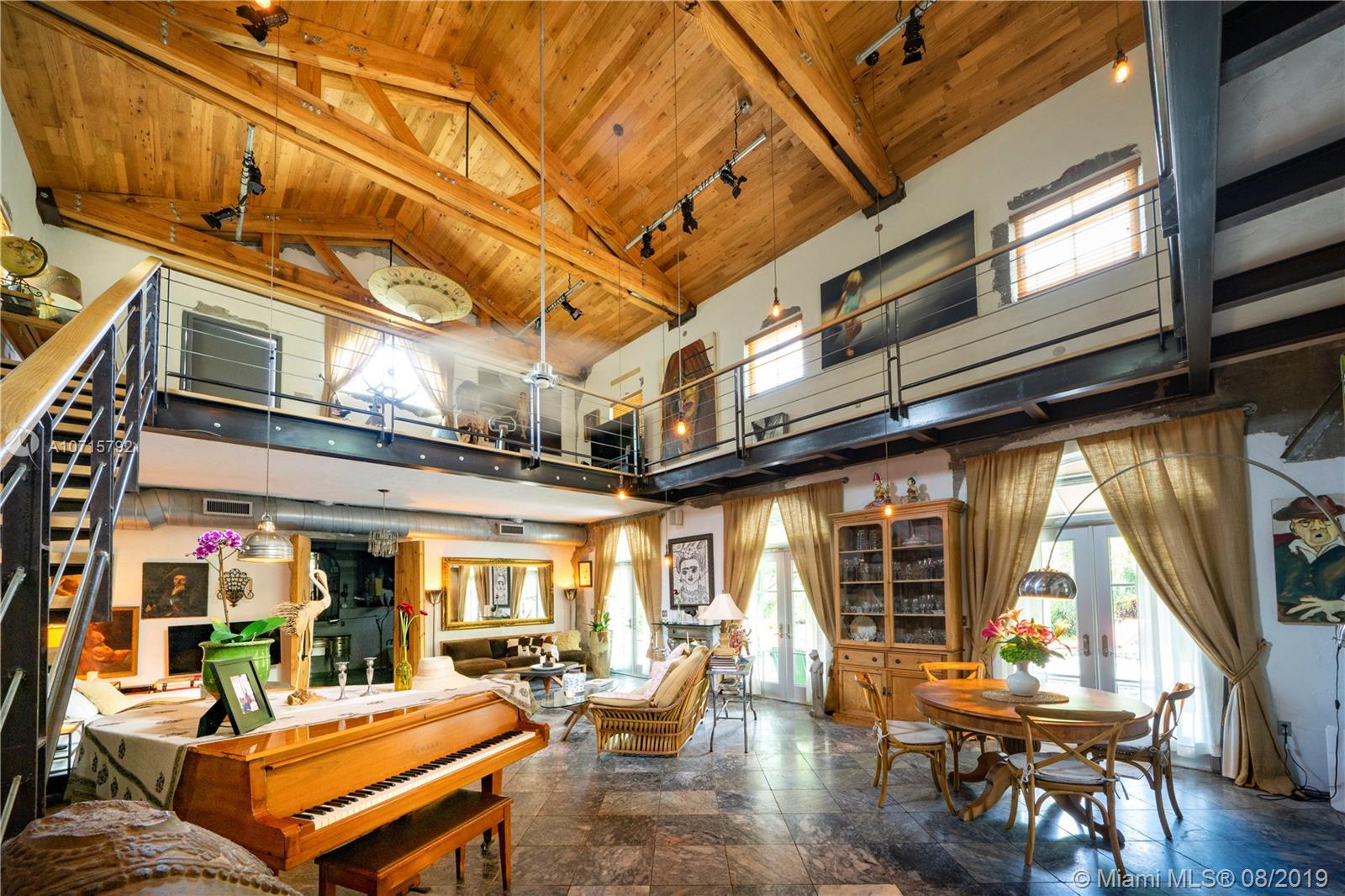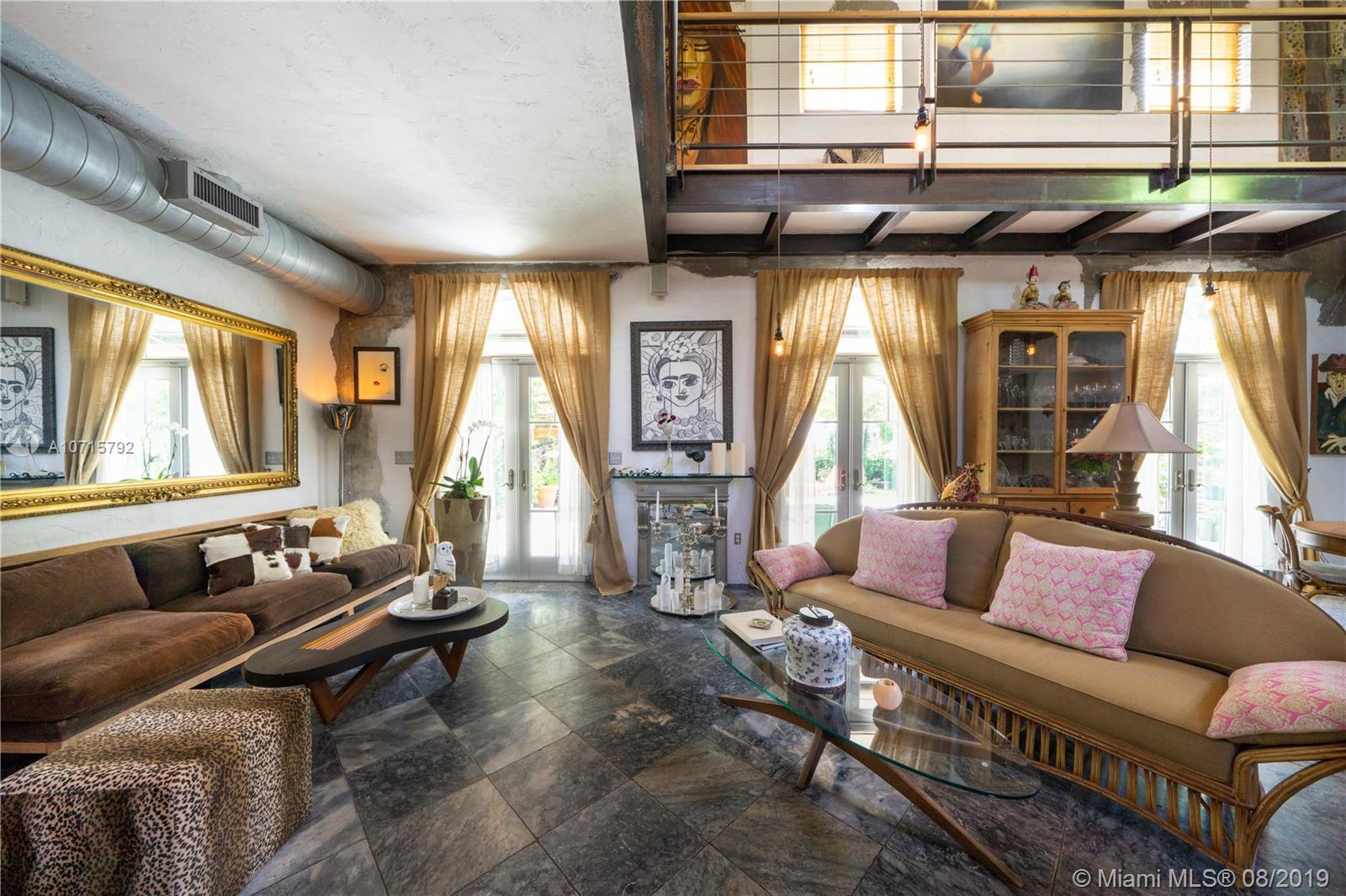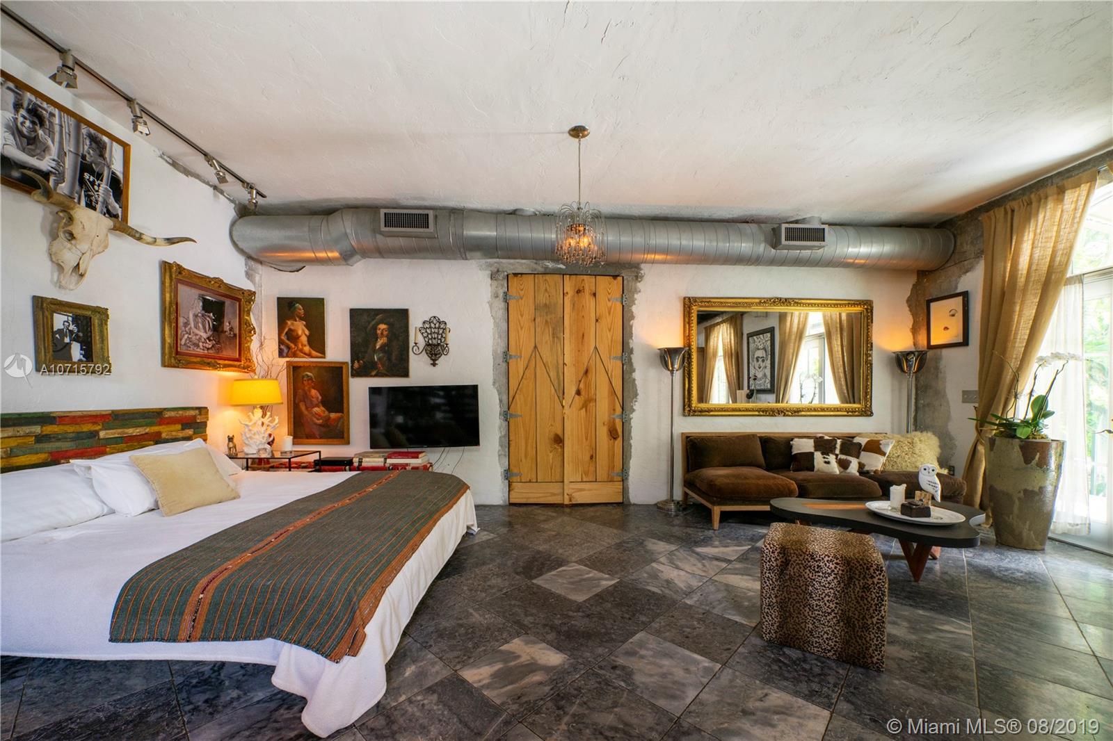 STUNNING ONE OF A KIND ICONIC PROPERTY DESIGNED WITH STYLE. This unique New York studio loft residence is unlike anything you’ve experienced! Situated on a 12,513 SF corner lot just 1 block from bay, features include 30ft ceilings, wood beams, exposed ducts, array of custom light fixtures, separate adjacent 2nd bedroom & detached 1/1 guest cottage with kitchenette. Ideal for luxurious living & entertaining with grand interiors & vast outdoor spaces. Impact French doors line the home and open up to a phenomenal pool deck. An art lovers dream! Plenty of room to display your collection. This property also has one of the highest elevations in Morningside. Built from the ground up in 2012, no detail was overlooked in the construction of this magnificent residence. Sold with 235k furniture.