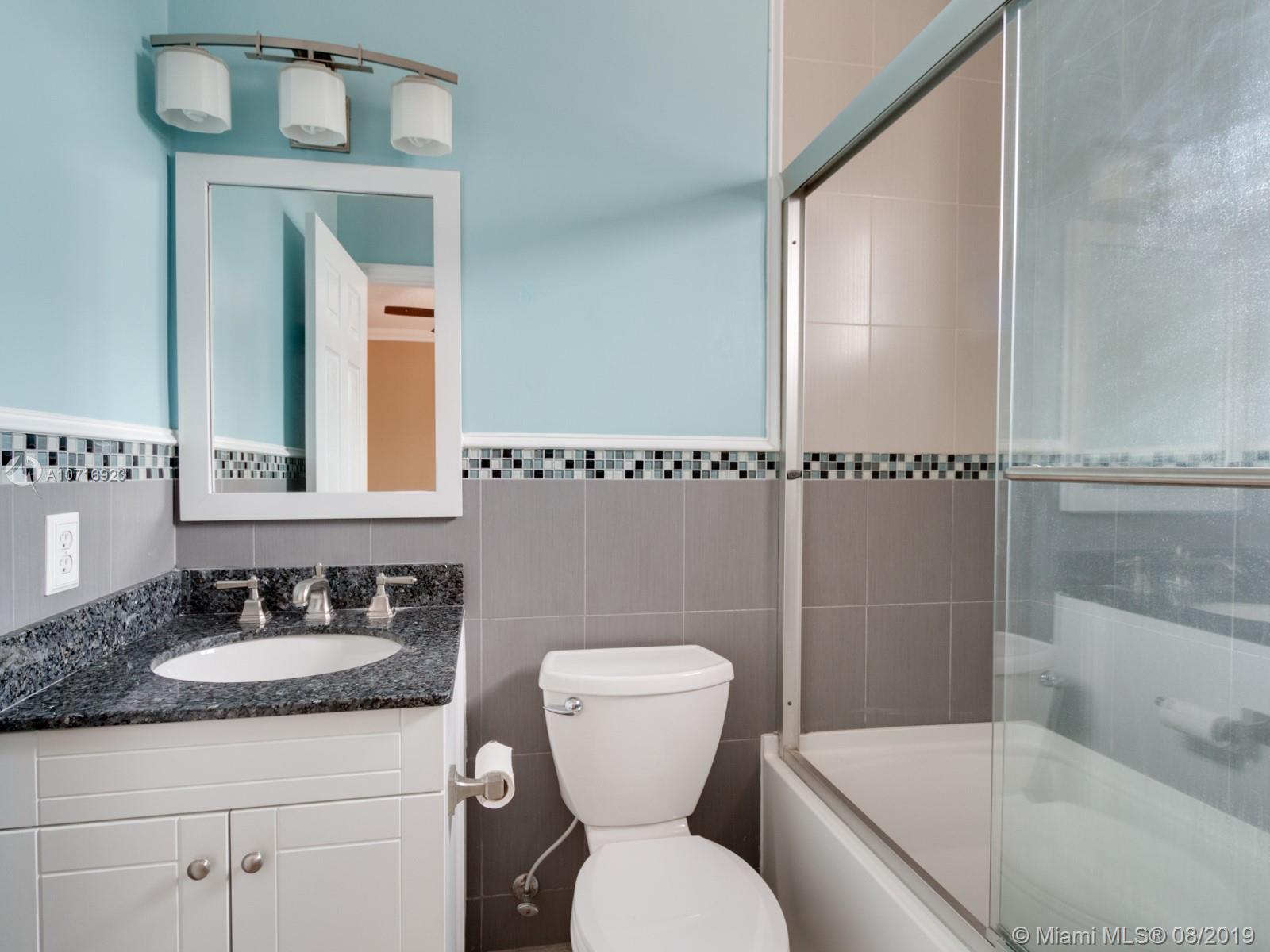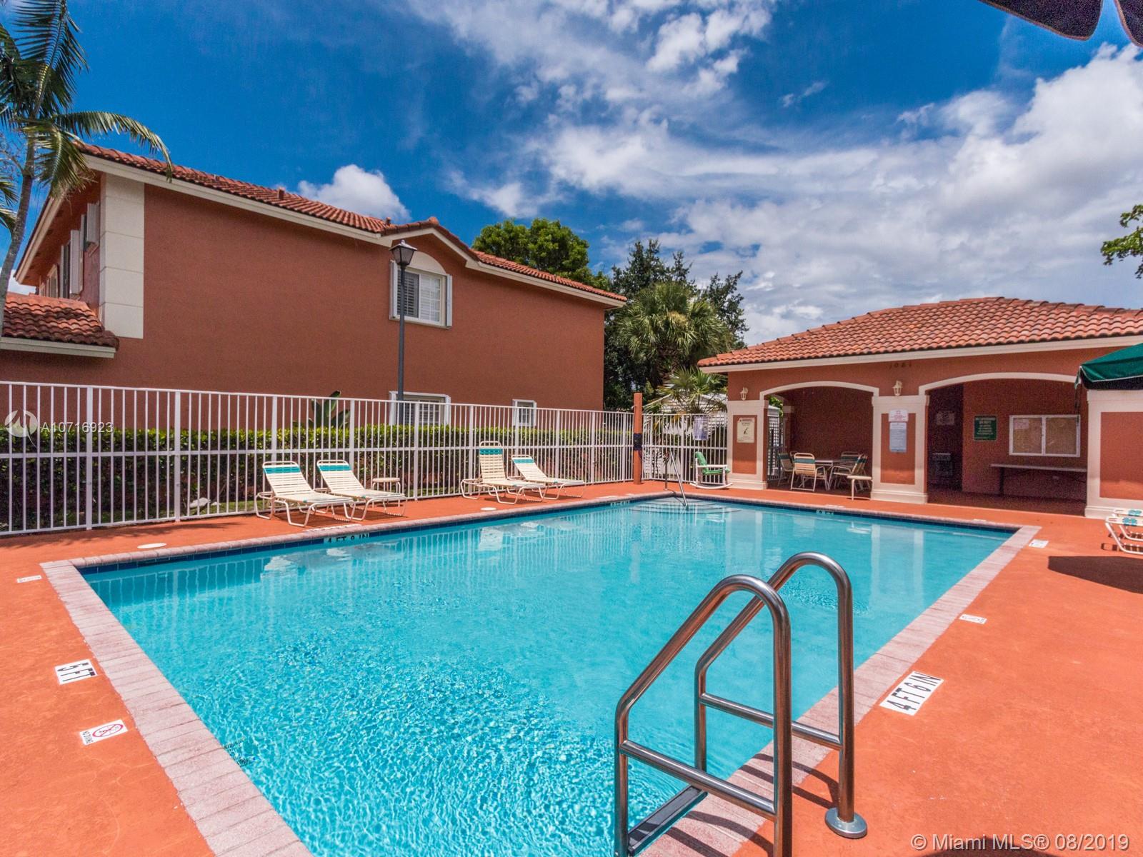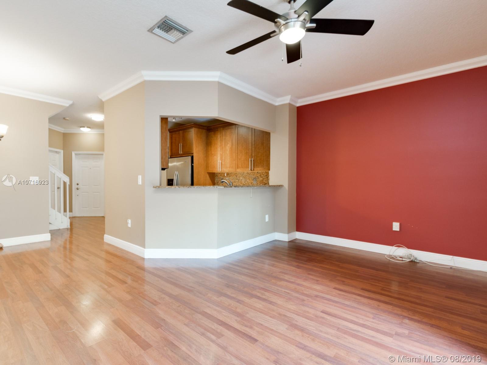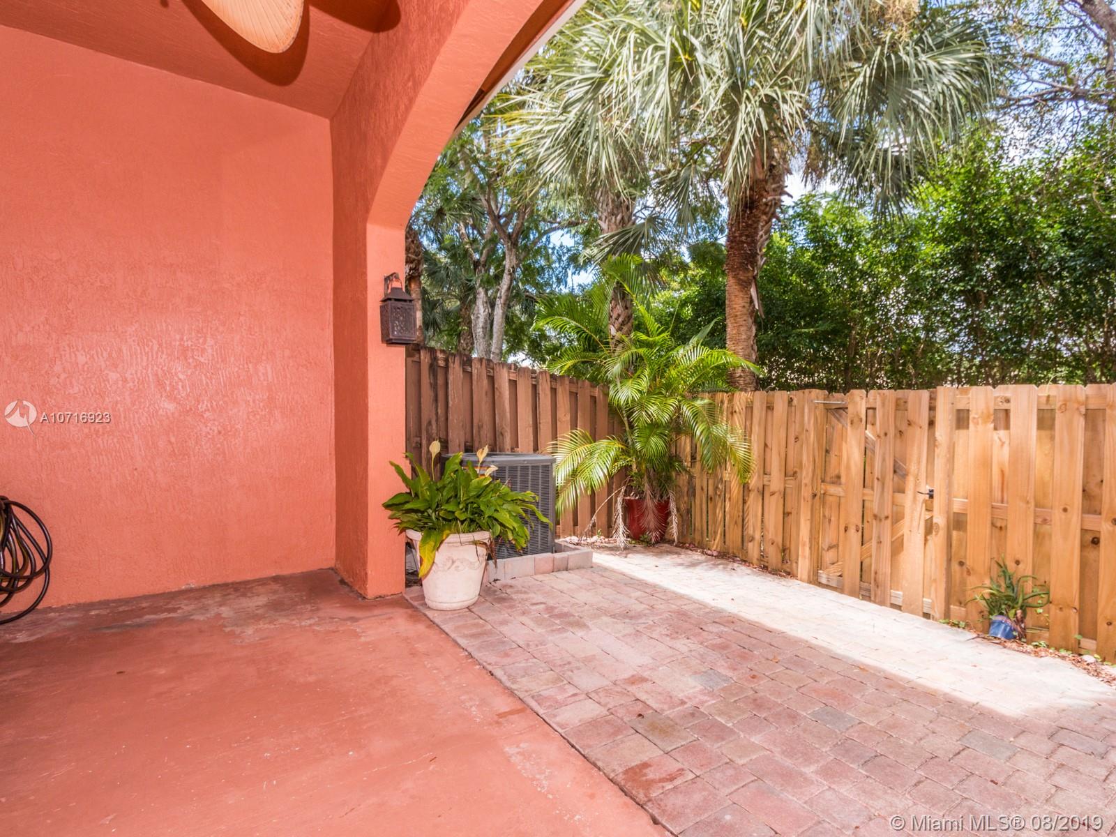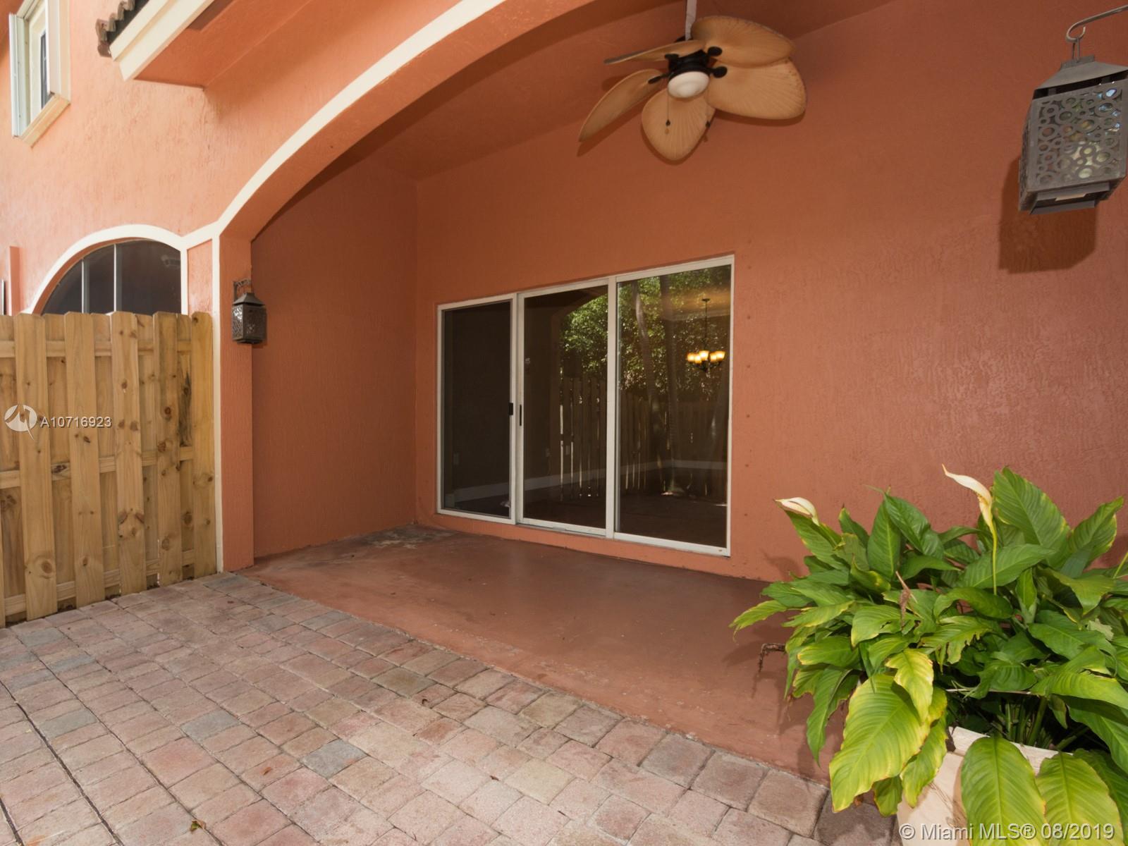 Beautifully updated 2.0 bedroom/2.5 bathroom/1.0 car garage town-home. Master suite with 2 walk in closets ,double sinks and shower. Second bedroom is an en-suite with a combination shower/tub. Both bedrooms located on the second level. Dark laminated wood flooring throughout. Updated kitchen with granite counters and stainless steel appliance package. Updated bathrooms. Additional storage space. Crown moldings and upgraded baseboards. New light fixtures. Private patio area with fenced yard. Fresh exterior paint, newer fences. Owned alarm system, hurricane panels. Community pool and play ground. Central location with easy access to schools, shops, restaurants, medical facilities, parks, major roads and highway. Low HOA. Move-in-ready. Must see..