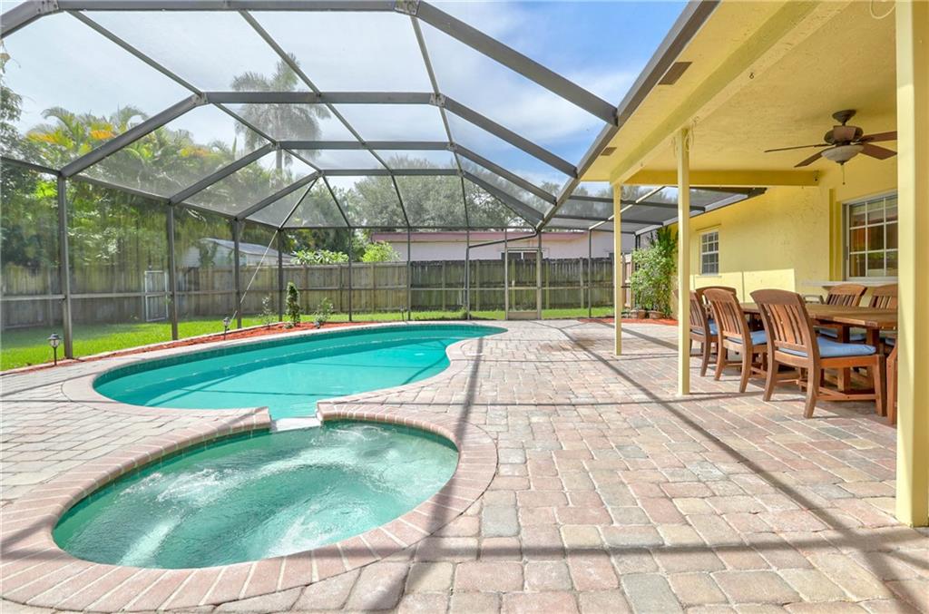 Beautiful 4 bedroom 2 bath pool home located on a fantastic street in Royal Palm, Plantation! Great curb appeal with stamped concrete driveway and well-manicured landscaping. Formal living and dining room areas with updated lighting fixtures. Laminate flooring, deep baseboards & crown molding throughout the home. Open kitchen and family room area great for entertaining. Large butlers pantry off the kitchen. Backyard features large overhang, screened in patio with brick paver pool deck. Tons of yard space. Panel hurricane shutters. Impact-rated garage door. Roof replaced in 2006. Rheem Water heater 2013. Trane AC replaced in 2009. Close to schools, parks, shopping, I-595 and Ft Lauderdale airport. No HOA!