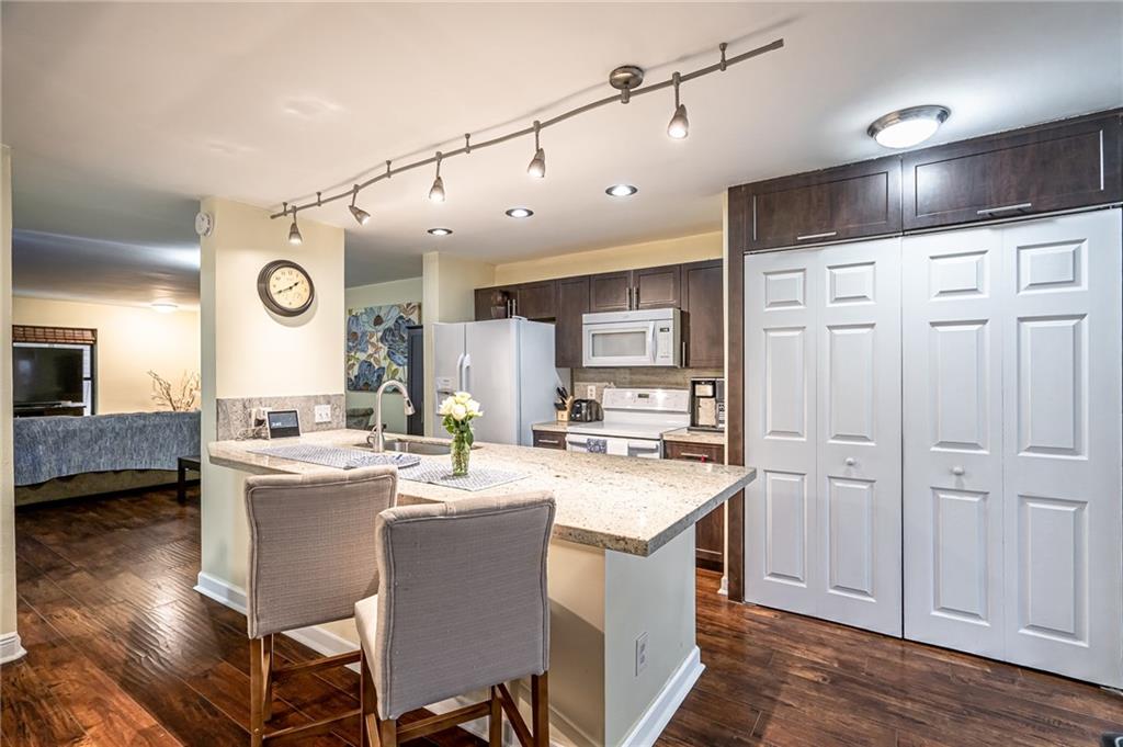 Villas Lakes Community, 3/2.5 remodeled and move in ready with all bedrooms on the second floor. This beautiful home features wood laminate and tile floors, foyer area, remodeled kitchen with wood cabinets, granite counter tops, newer appliances, eat at counter bar, remodeled bathrooms, frameless glass enclosures, front patio, very private back screened patio, family room with glass doors to the patio, 2 parking spaces directly in front, lots of guest parking. Great community with HOA fees and lots of amenities: pool, tennis, basketball, racquetball, clubhouse in the heart of Pembroke Pines.