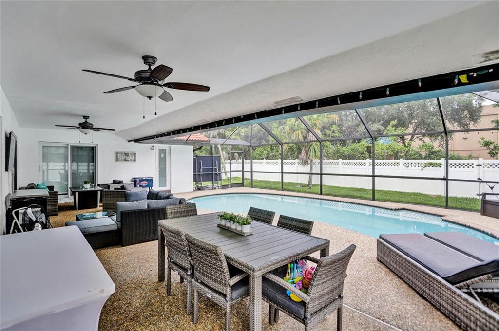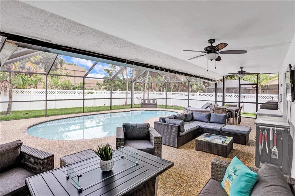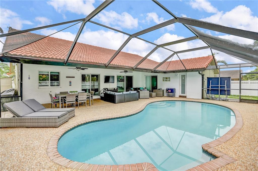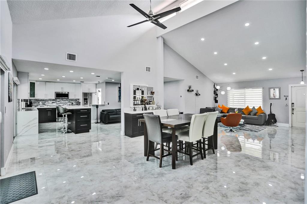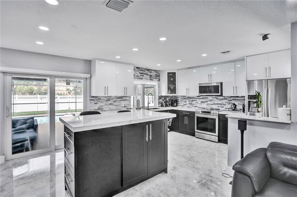 FULLY RENOVATED - 4/2 SINGLE FAMILY HOME WITH POOL, IN RAMBLEWOOD PERFECT TO ENTERTAIN!"NO HOA FEE" "ASSURA" (2019) IMPACT WINDOWS AND DOORS THROUGH OUT THE PROPERTY, CUSTOM MOVABLE ISLAND KITCHEN WITH CALLACATA QUARTZ COUNTER TOPS, WHITE AND GREY STONE BACK SPLASH, AND MODERN CUSTOM SOFT CLOSING CABINETS AND DRAWERS. SAMSUNG STAINLESS STEEL APPLIANCES CUSTOM BUILT BAR, WITH BUILT IN WINE COOLER IN THE LIVING AREA, POLISHED WHITE & GREY PORCELAIN IN THE LIVING AREA, 6" MODERN SQUARE BASEBOARDS THROUGH OUT, UPGRADED BATHROOMS, WIRELESS SPEAKERS IN THE BATHROOMS, JACUZZI TUB IN GUEST BATHROOM,LAMINATED WOOD FLOORS IN THE BEDROOMS. CUSTOM RECESSED LIGHTING IN LIVING AREA, KITCHEN, AND MASTER BEDROOM. ROOF: 2006, A/C: 2014, WATER HEATER: 2015. WHITE 6' PVC FENCE SURROUNDING ENTIRE PROPERTY.