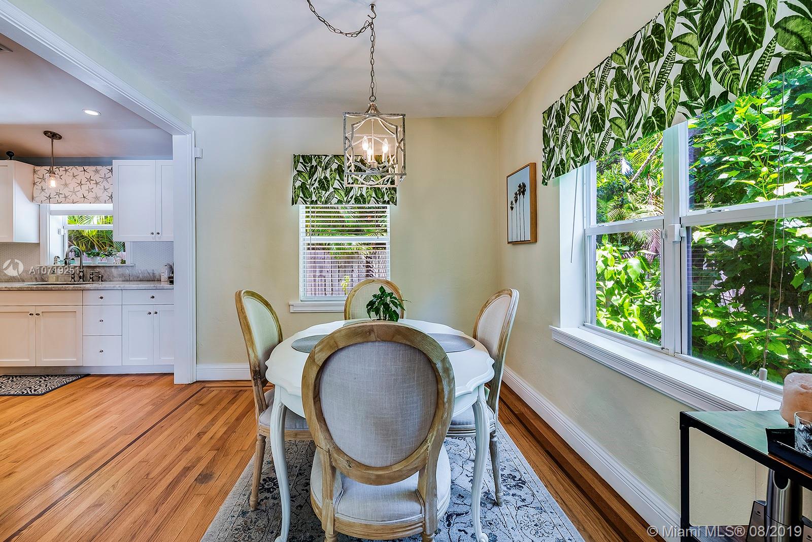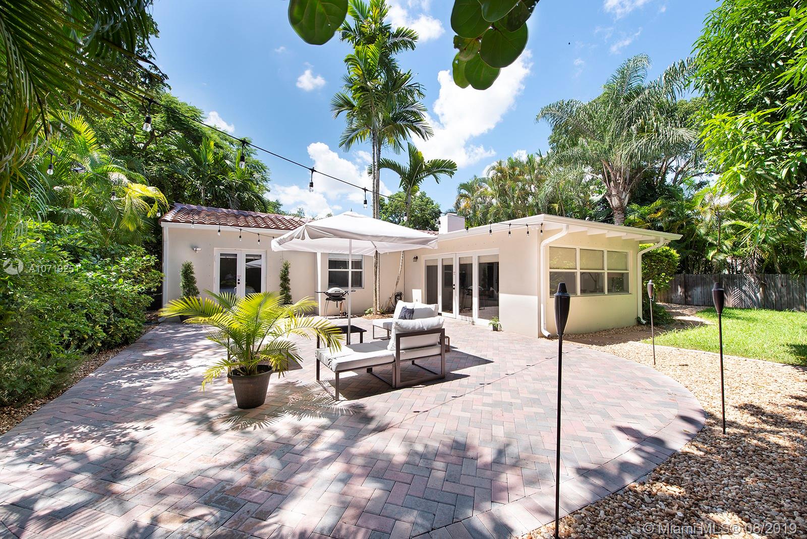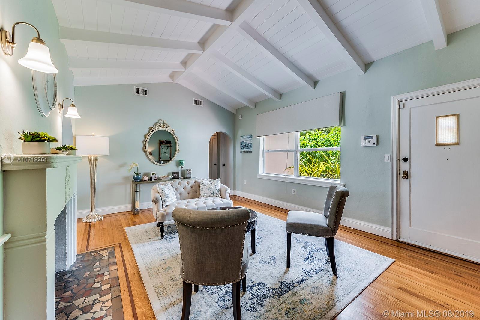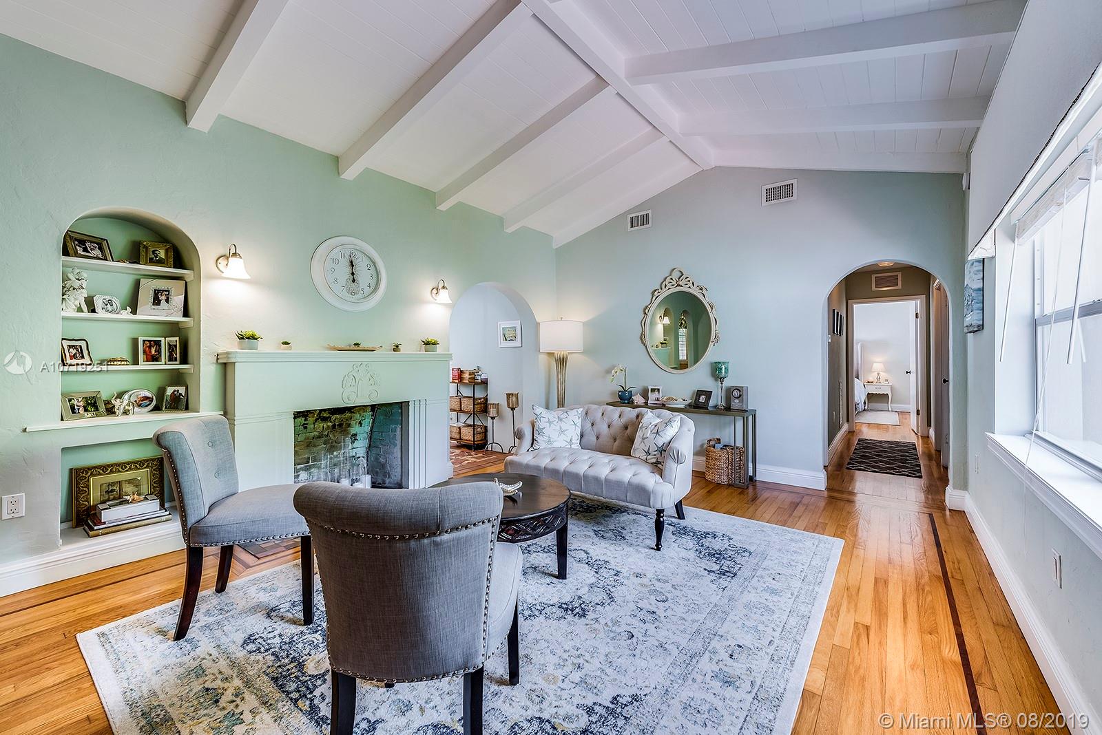 Charming and comfortable this 1930's home has been lovingly renovated. Cathedral ceilings, original hardwood flrs and wood burning f/p create an irresistible charm in the liv rm, perfect place to entertain or read a good book. Renovated, open concept kitchen/dining w/ marble counter tops and stainless appl opens to a roomy window filled fam rm with original quarry tile floors that overlooks the patio and lovely landscaped backyard. 3 bedrooms include a lovely master w/ on-suite master bath. Walk to downtown Miami Shores, weekend farmers market and concerts in the park. Some upgrades include: 2 months new roof, updated electrical, new interior lighting, new washer/dryer, custom window treatments, new A/C. Liv area sf 1,544, Adj sf 1,663 (incl 50% garage/33% covered porch)Total sfl 1,782