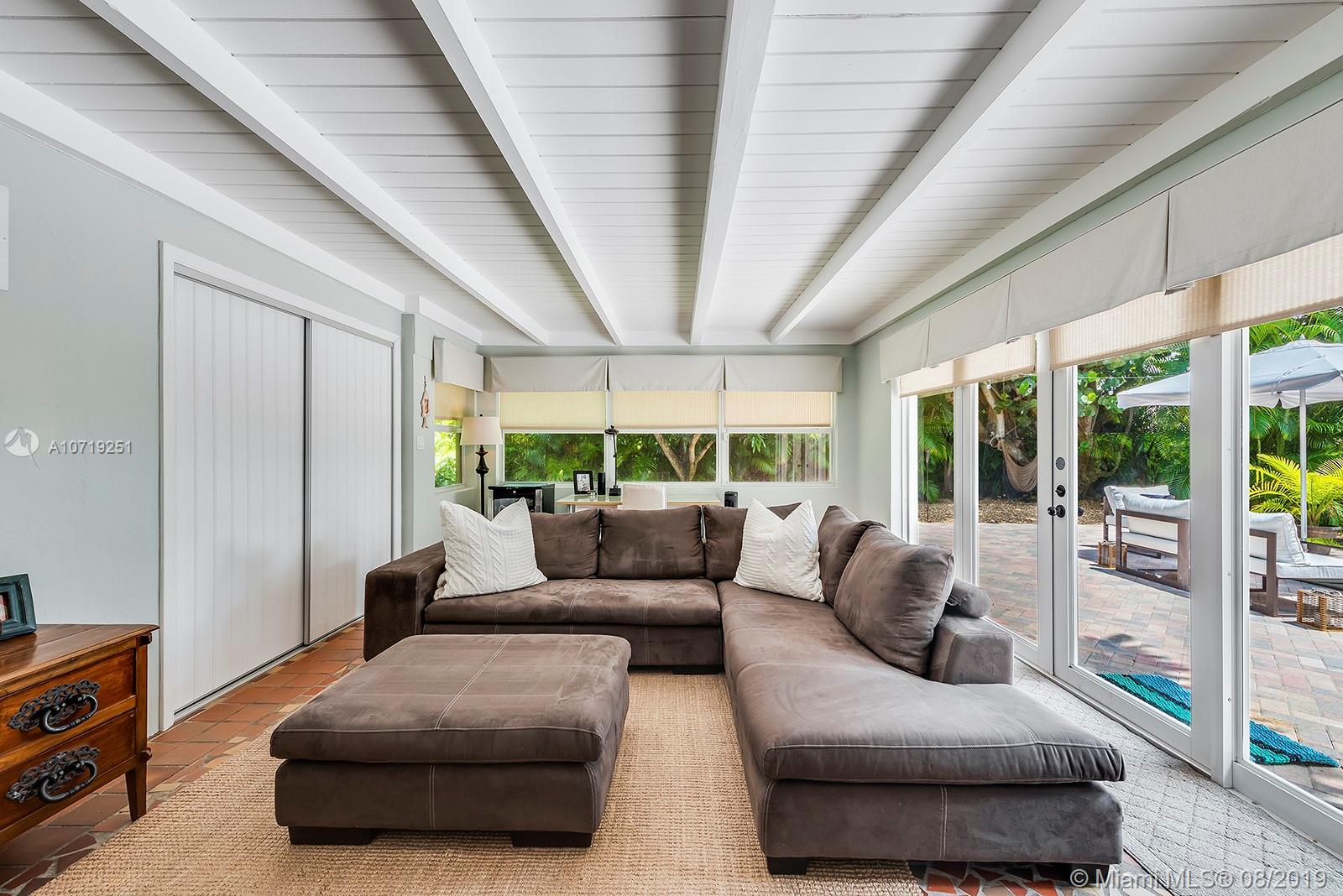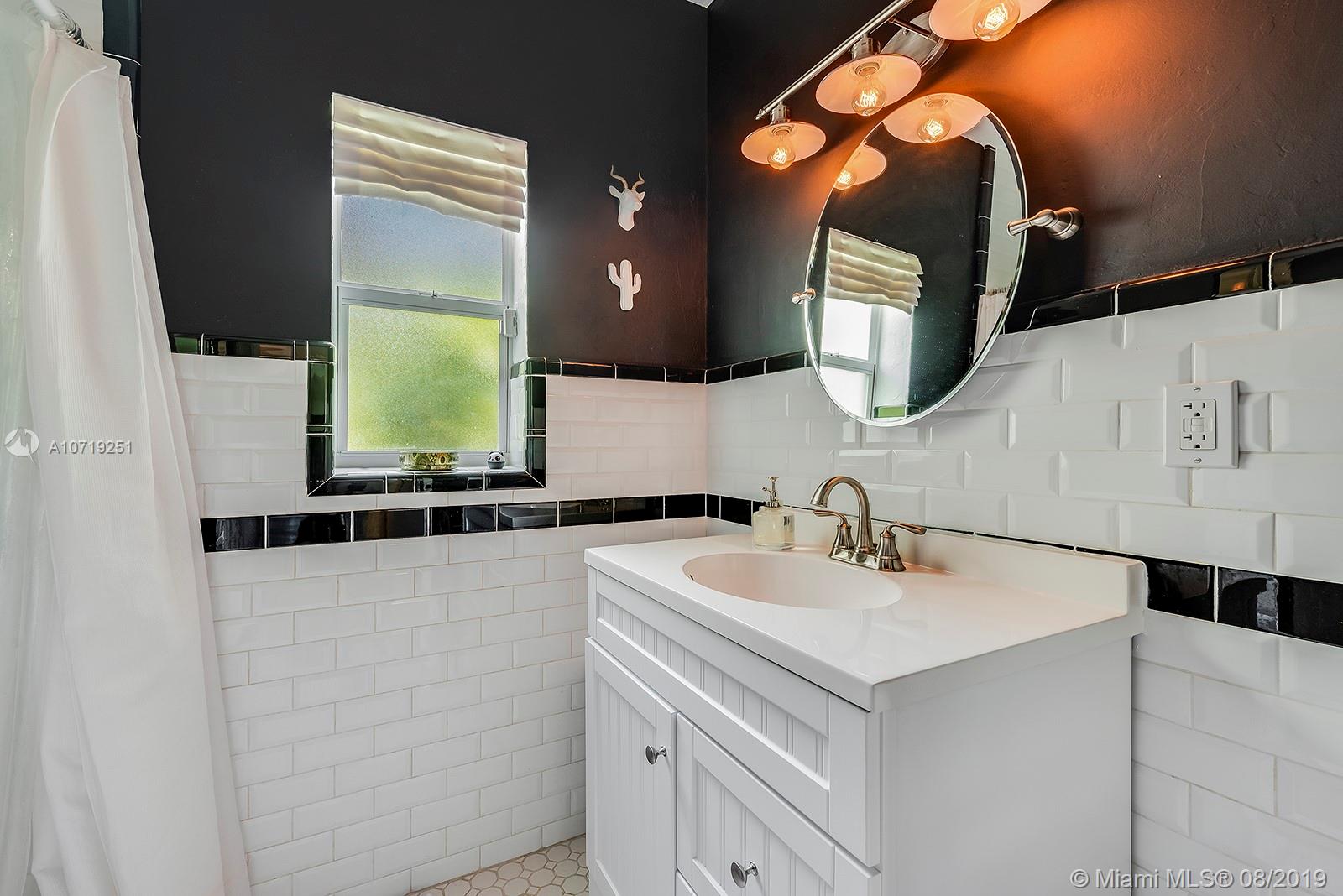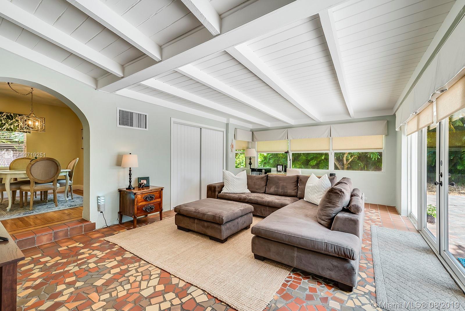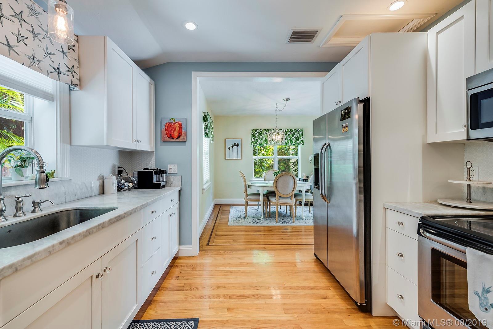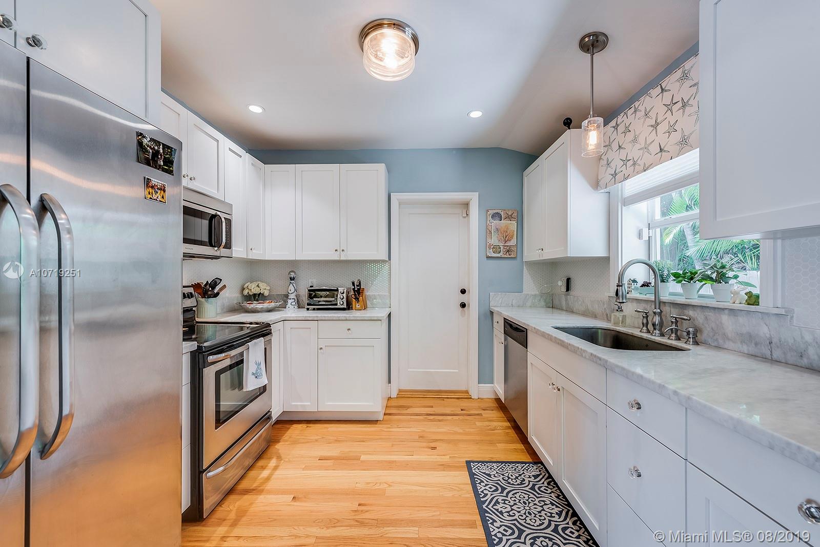 Charming and comfortable this 1930's home has been lovingly renovated. Cathedral ceilings, original hardwood flrs and wood burning f/p create an irresistible charm in the liv rm, perfect place to entertain or read a good book. Renovated, open concept kitchen/dining w/ marble counter tops and stainless appl opens to a roomy window filled fam rm with original quarry tile floors that overlooks the patio and lovely landscaped backyard. 3 bedrooms include a lovely master w/ on-suite master bath. Walk to downtown Miami Shores, weekend farmers market and concerts in the park. Some upgrades include: 2 months new roof, updated electrical, new interior lighting, new washer/dryer, custom window treatments, new A/C. Liv area sf 1,544, Adj sf 1,663 (incl 50% garage/33% covered porch)Total sfl 1,782