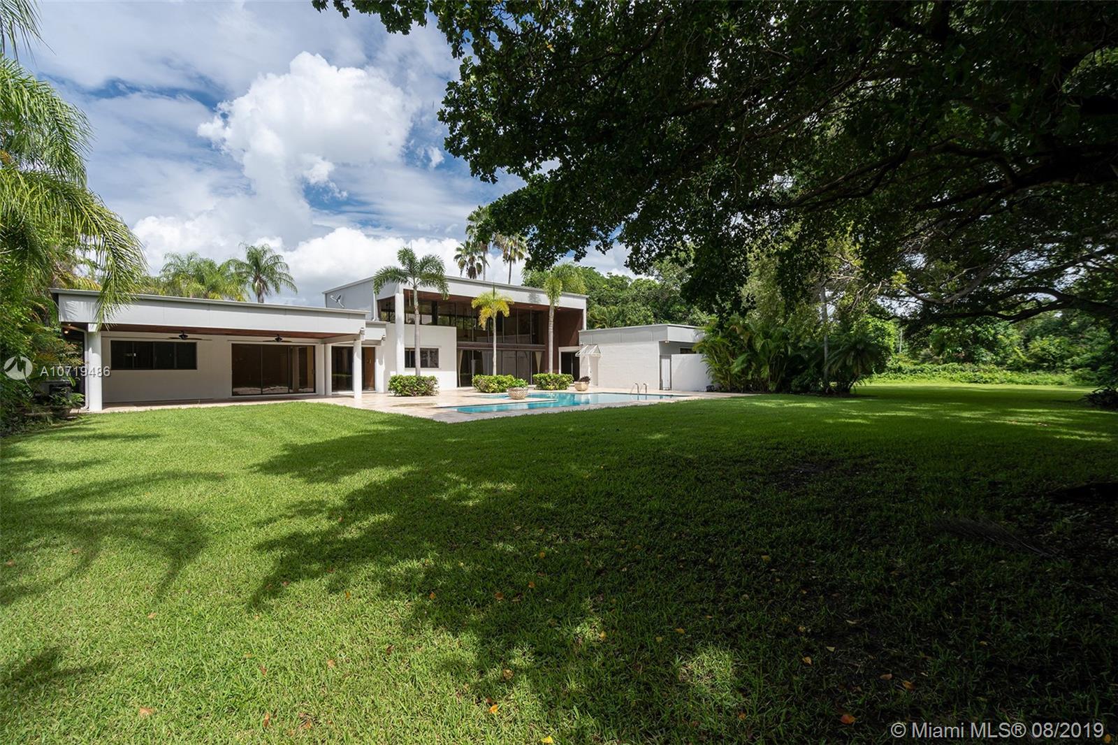 Ultra Private & Extraordinary Contemporary Acre Estate. Located in North Pinecrest on a quiet one-way road with very little traffic. Dramatic expanses of floor-to-ceiling glass open to a dreamy back yard & expansive grounds with a resort vibe...overlooking a stunning new pool & patio. New Roof & Pool in 2019. 4 bedrooms/3.5 baths (plus 2 offices/5th bedroom/extra den). Gourmet Kitchen & wet bar. Butler Pantry. Gas Stove. Double Height Volume Ceilings. Fireplaces in Grand Master Suite & Living Room (both). Pinecrest School District ** PLEASE SEE ATTACHED APPRAISAL reflecting SF larger than tax roll **