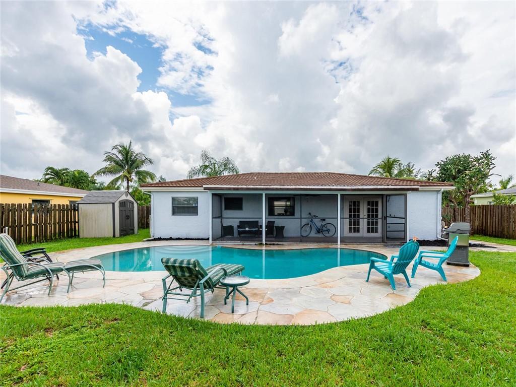 OPEN HOUSE THIS WEEKEND SAT 1-4 SUNDAY 11-1 Great location!!! Charming and cozy 3/2 bath home. Open and bright.Sit and relax by your beautiful POOL. Fully fenced in PRIVATE huge back yard. New pool pump and the roof was replaced with a METAL s-shaped roof in 2006.Screened in porch overlooks pool. Double entry gates and a storage shed. Completely redone kitchen with granite and stainless steel. Renovated bathrooms. 3 year old ac. Giant flat screen tv stays with the home.Home shows pride of ownership. VERY LOW MAINT FEES. Hurry will go fast! PLEASE DO NOT LET FRIENDLY DOG NAMED ROSIE OR CAT OUT!!!