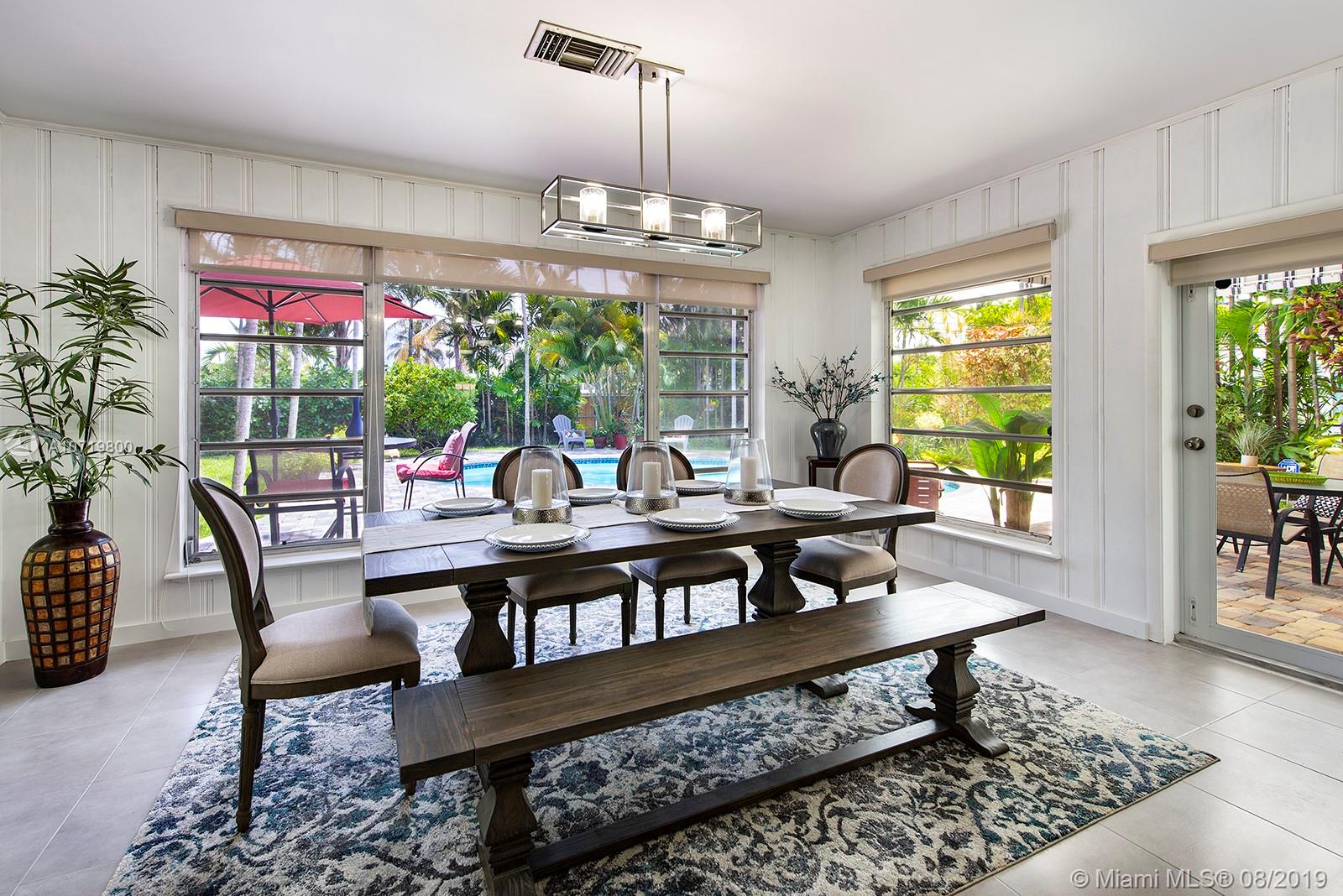Beautiful home in an excellent location, bring your toothbrush. Formal entry and open Spacious floor plan with lots of natural light. 2019, State of the art kitchen with large center island, white marble backsplash and quartz counter tops and new appliances. Impact windows, updated plumbing and electric, Lenox a/c 2 years new, Hardwood floors throughout. updated baths and much more! Backyard is fully fenced with lovely exterior covered patio and inviting pool/patio area,new drain field. Conveniently located within walking distance to community center and Biscayne Bay. As per tax roll, Liv area sf 1,717, Adj sf 1,956 (includes 50% of garage), Total sf 2,195