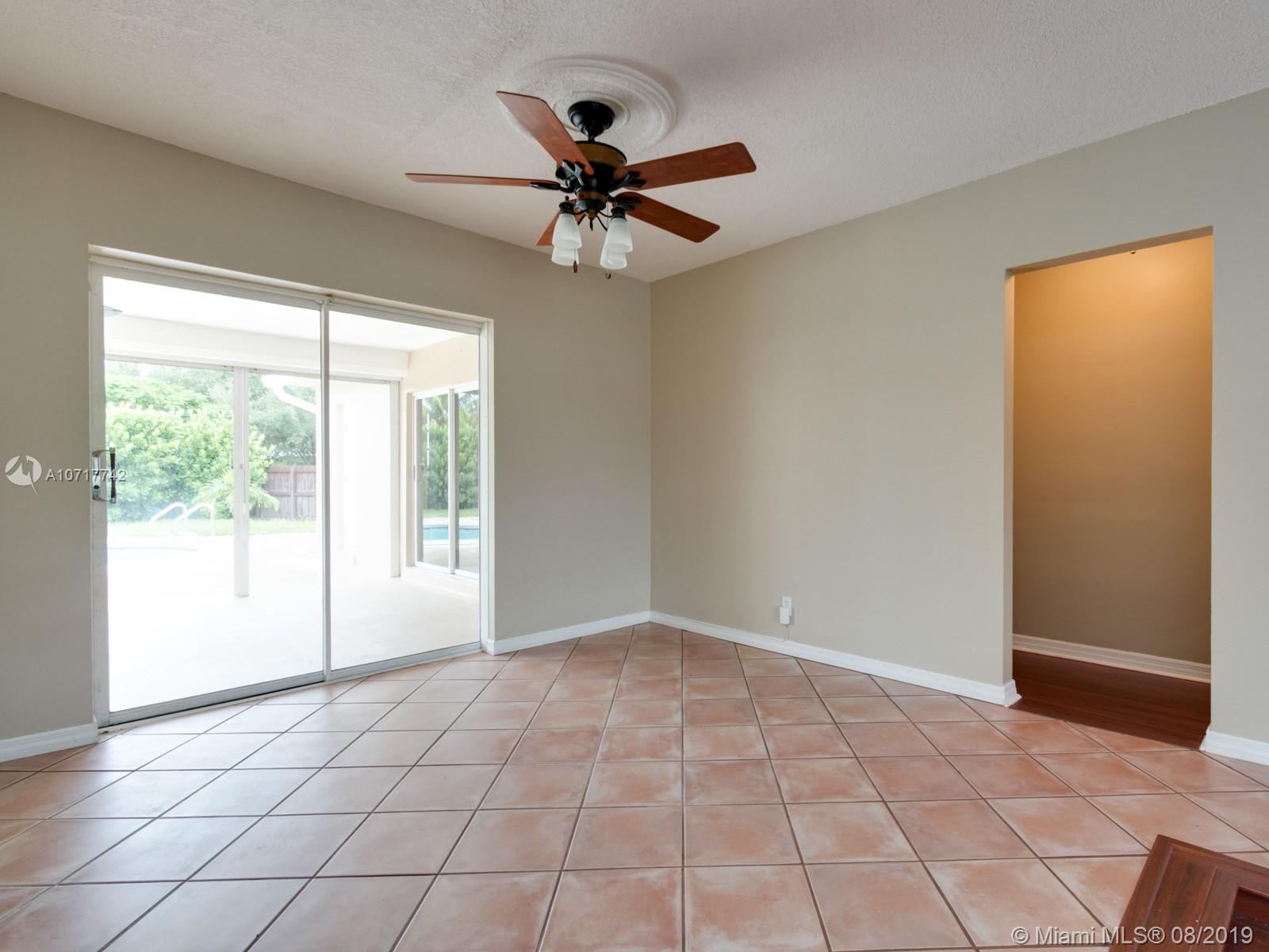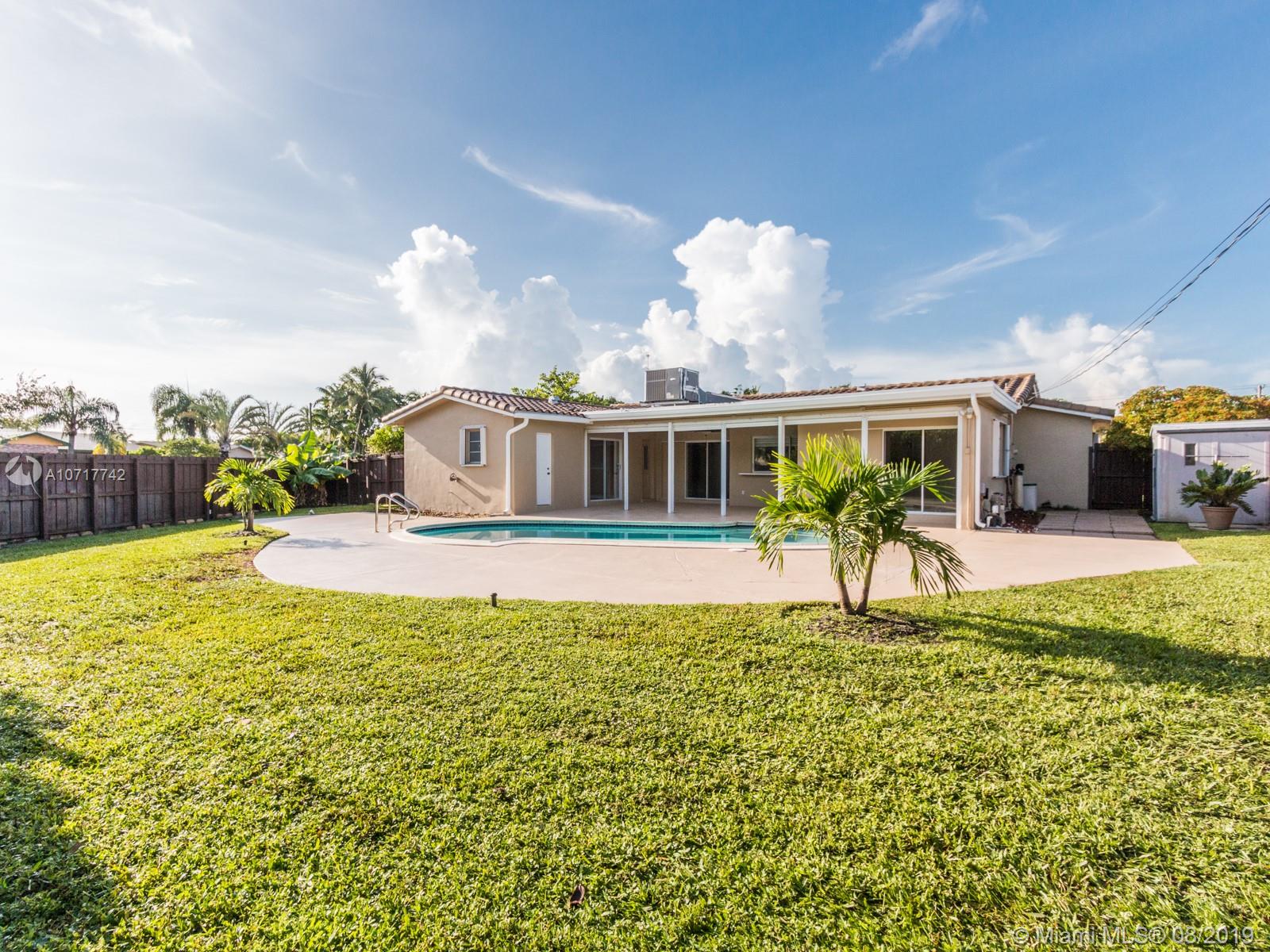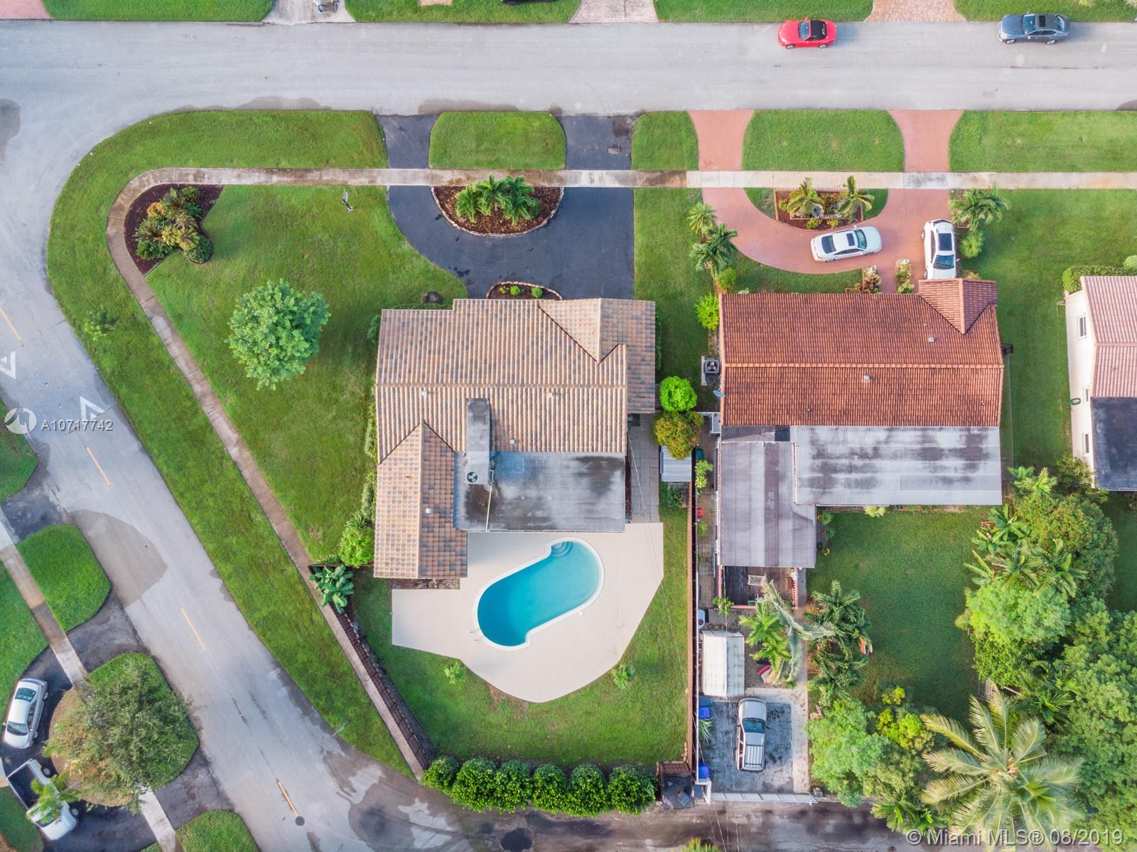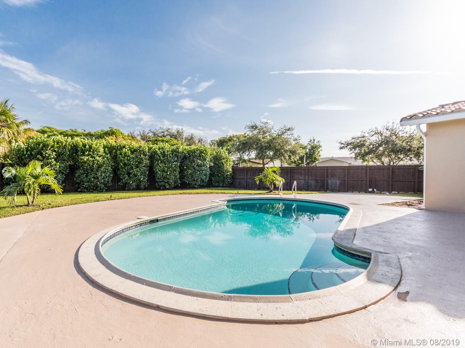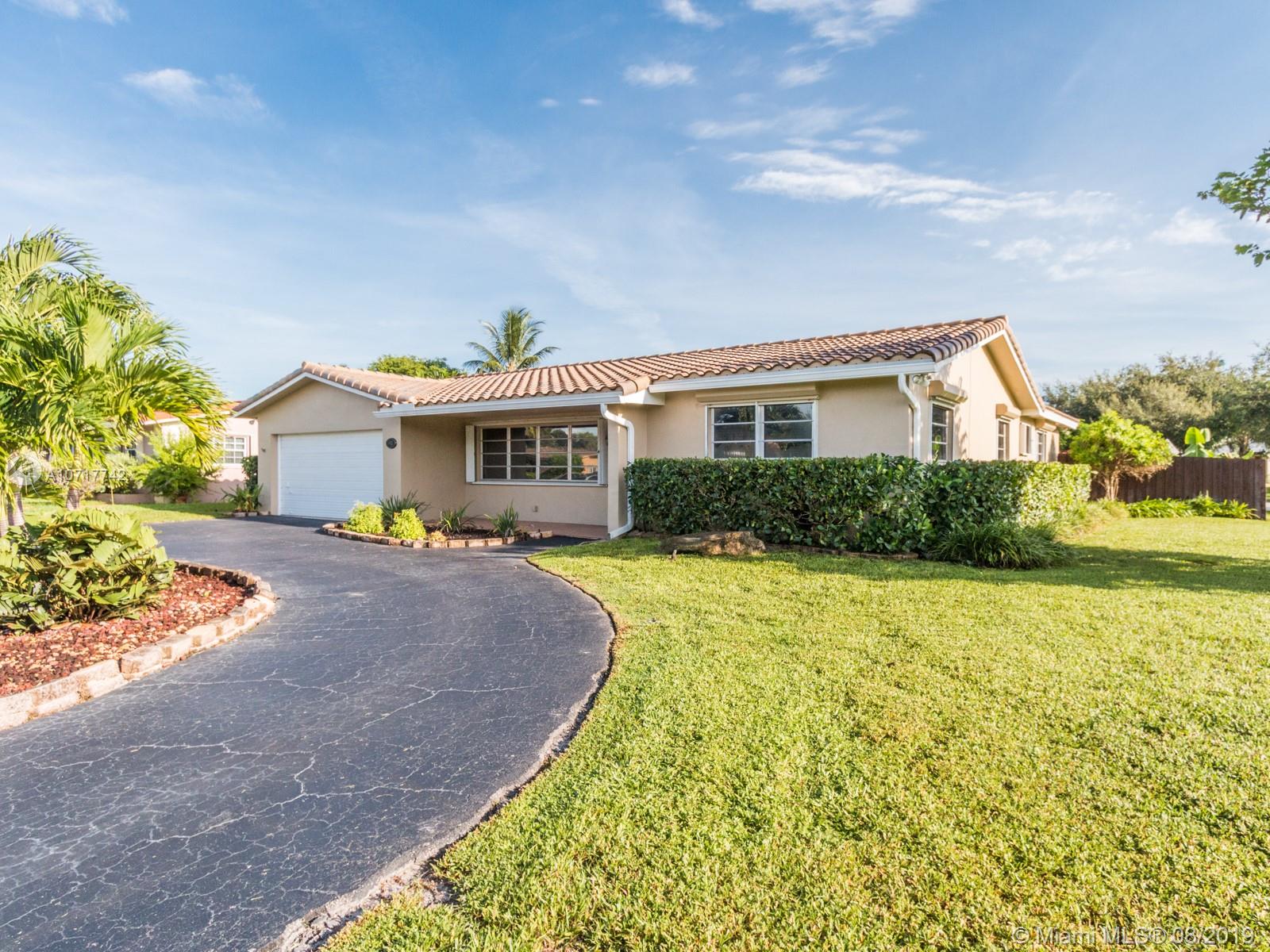 Owners have relocated and ready to sell their lovely, 3/2 home with 2 car garage and a circular driveway, situated on huge (12,779 sq ft) corner lot. Very private patio and pool area. Pool resurfaced & tiled 2014. New salt water system 2015. Safety gate (in garage) included. Newer 4ton a/c with 10yr (compressor) transferable warranty & 2yr service agreement. Tile roof 2016 (tiles under warranty).Privacy fence 2016. Sunken LR, formal DR, family room, updated bathrooms.Kitchen has breakfast bar and storage; stove, microwave & dishwasher 2018. Transferable termite bond through 2020. Hurricane shutters. Master bedroom has a walk in closet. Pergo wood look and tile flooring.Tiled front porch.Shed ,7 fans.This well maintained home is waiting for the right buyer.