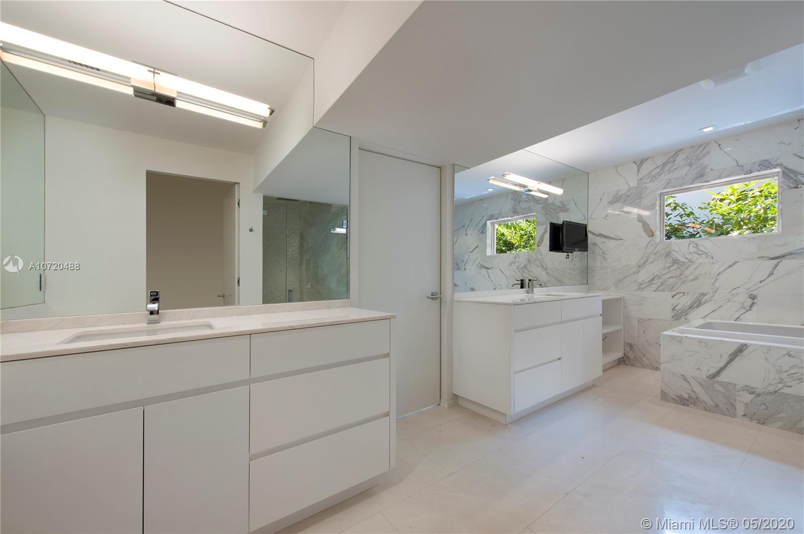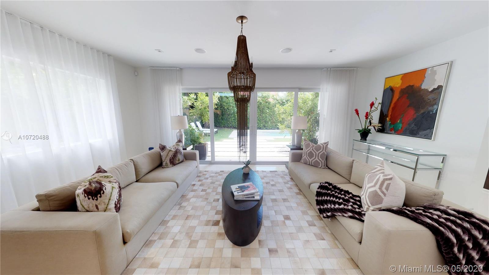 Stunning 4Bed/4.5Bath like new home on prestigious North Bay Road, across from $20 million homes. MIMO architecture with high ceilings which brings lots of light. Very happy and uplifting home + ALL IN ONE LEVEL fabulous open floor-plan attached. 3 separate wings, 4 in-suite bedrooms each with its own beautiful new bathrooms & custom closets. Private master opens into your gorgeous pool/backyard, his/her walk-in closet and bath. Kitchen equipped with gas stove and subzero. Top of the line appliances. Pantry area off kitchen. All new Impact glass, ready set up for back up generator, sound system and more. EXQUISITE BEST DESCRIBES THIS FABULOUS 4 BEDROOM HOME ON NORTH BAY ROAD.