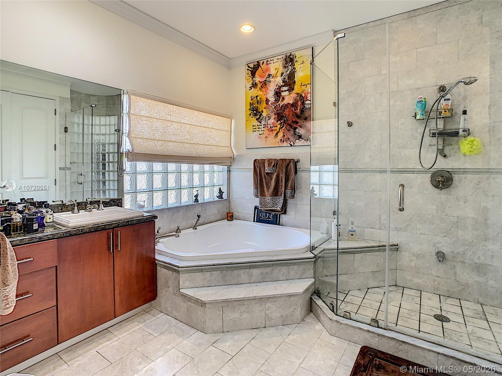 Gorgeous Custom build one Story Waterfront Home, marble and porcelain floors, Impact windows, Dream Italian design kitchen and a second kitchen at the family, 4 bedrooms, 3 bath with great Driveway at entrance. 80' water frontage with no fixes bridges. Automatic lift for a 30' boat and 2 others for jet sky .YACHTMANS DREAM IN GATED COMMUNITY WITH A RATED SCHOOLS Easy to show