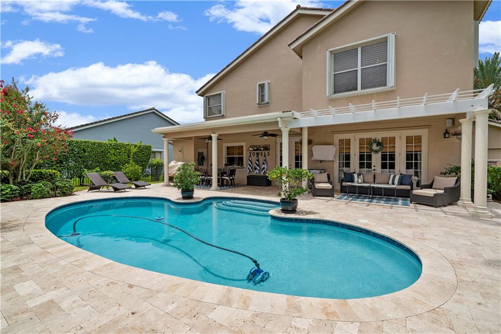 Gorgeous 2-story, 4 bed + HUGE loft, 3 full/2 half bath pool home on beautifully landscaped lot! Beautiful 20x20 tile throughout downstairs. Formal living/dining rooms feature new plantation shutters. The eat-in kitchen which features granite counter tops, stainless steel appliances, large pantry flows into the spacious and bright family room with fireplace and French doors that overlook pool. Newly renovated (May 2018) pool patio features travertine pavers, color changing LED lights, outdoor half bath. Master bedroom has 2 custom built in, walk-in closets. Master bath has Jacuzzi tub, sep shower, dual sinks. BRAND NEW carpet in all bedrooms, loft and stairs! Accordian shutters on rear, impact glass windows on upper front! Huge 3 car garage. LOOKS LIKE A MODEL!!