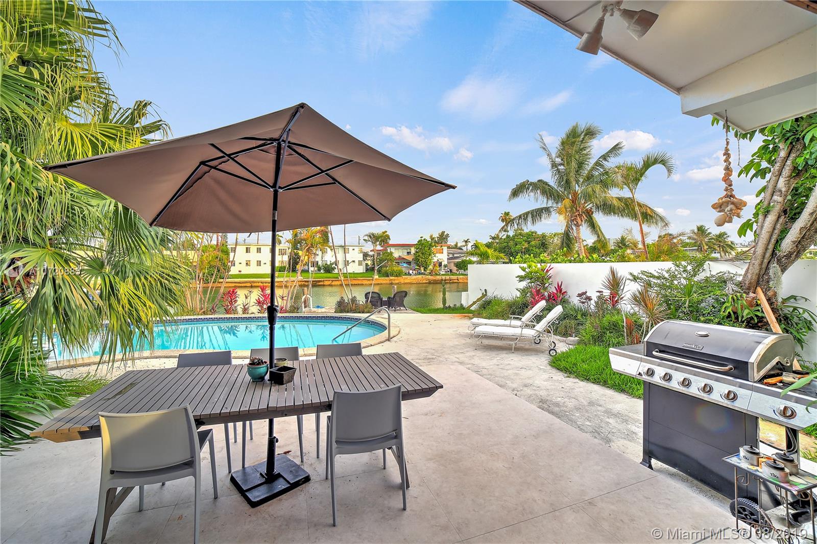 Don't look any further this is the best value for a waterfront house in Miami Beach. Tropical vibes in remodeled large 3213 sqft MiMo house. Lots of space in this 4 Bedrooms, 3 Baths with a double living room high ceilings, beautiful volumes and a true sensation of space throughout the house. This turnkey house a gorgeous remodeled new kitchen and bathrooms imported from Italy and a wood facade Very rare oversized lot with the biggest possible water frontage on the entre Island ( 80 ft) with a brand new boat lift and a dock and can fit several boats. Facing directly south, enjoy cocktails by the large pool over looking the water in a lush tropical garden. 2 car indoor garage ( no conversion) + 4 car driveway. Priced to sell