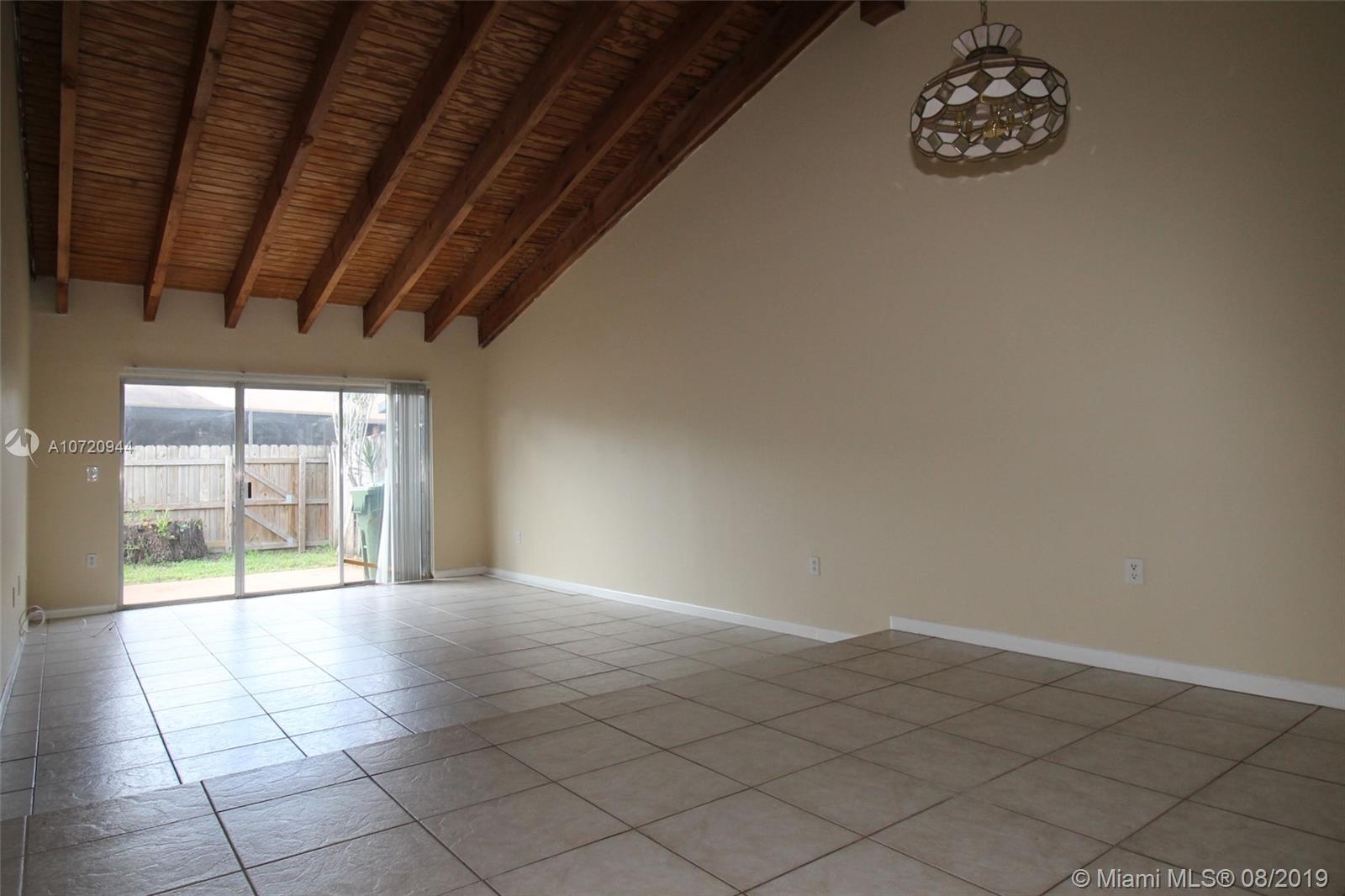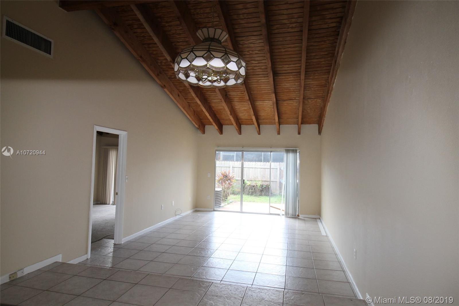 Cedarwoods at Pembroke Lakes Townhome. This 2 bed 2 bath unit is located in an A Rated school district. Home boast vaulted Cedar Beam ceilings, galley style kitchen with breakfast nook, large bedrooms with walk in closets, nice fenced rear yard great for entertaining. Community has the lowest HOA fee in Pembroke Pines and is situated on a huge lake that is bordered with a jogging path. Close to Pembroke Lakes Mall, Cb Smith Park, and only 20 minutes to world famous Hollywood Beach Boardwalk. Sellers are motivated and unit is easy to show!