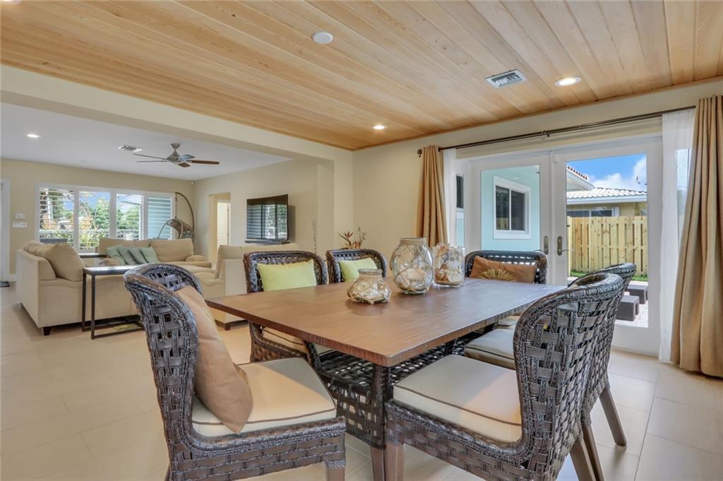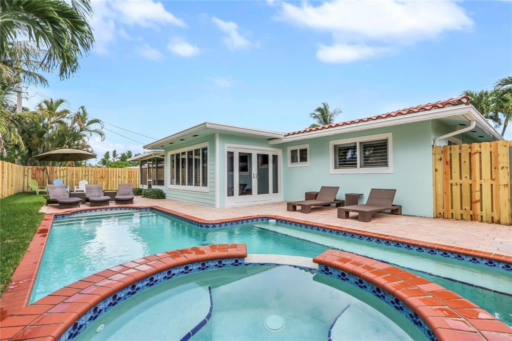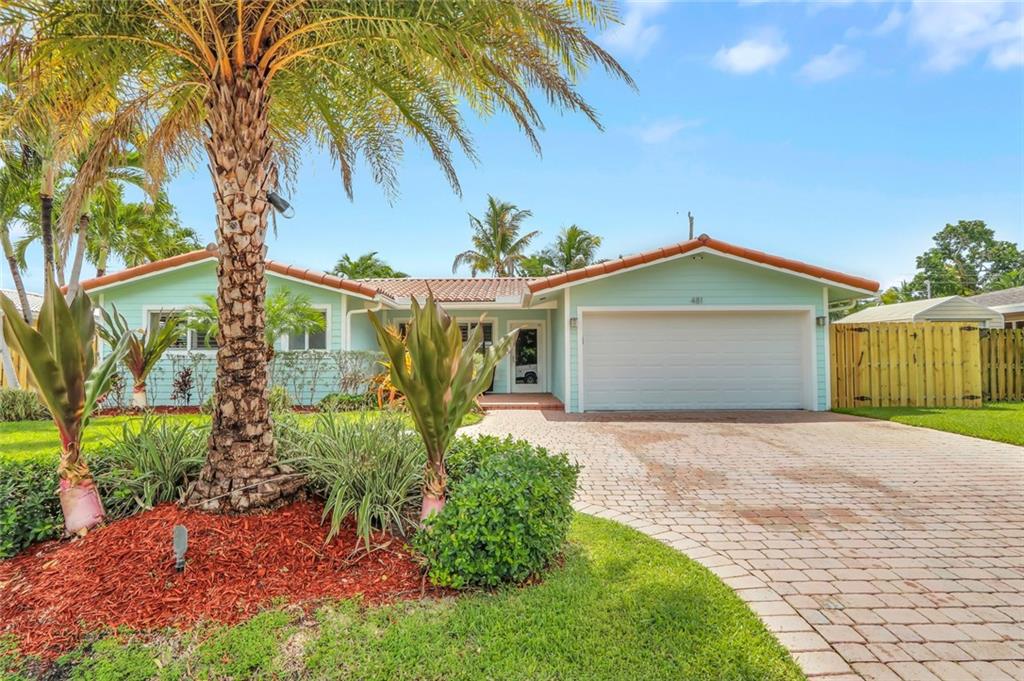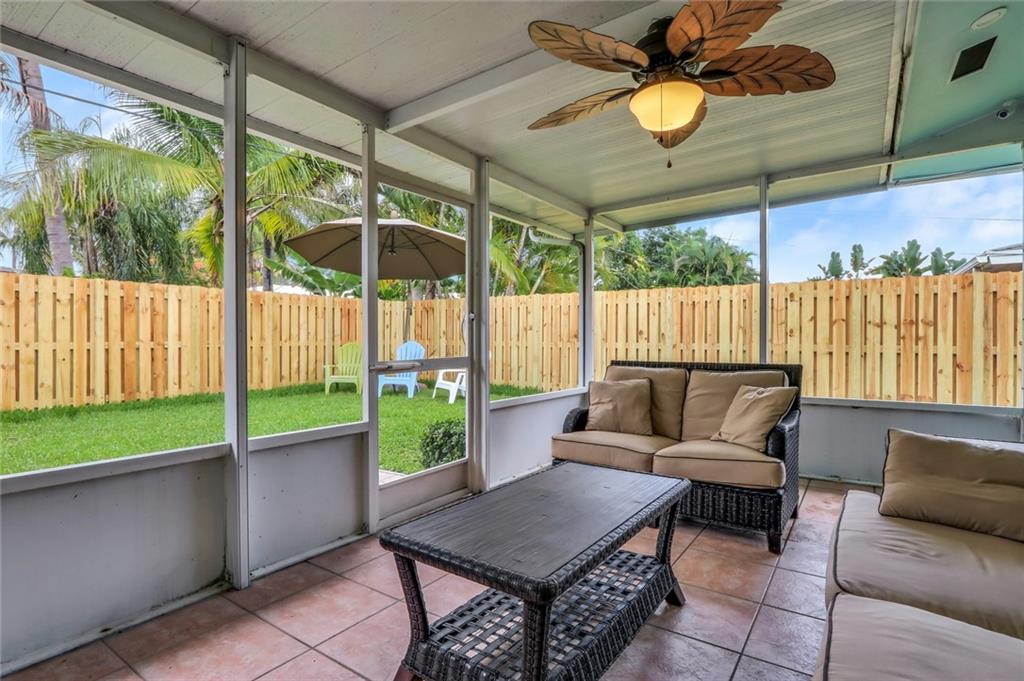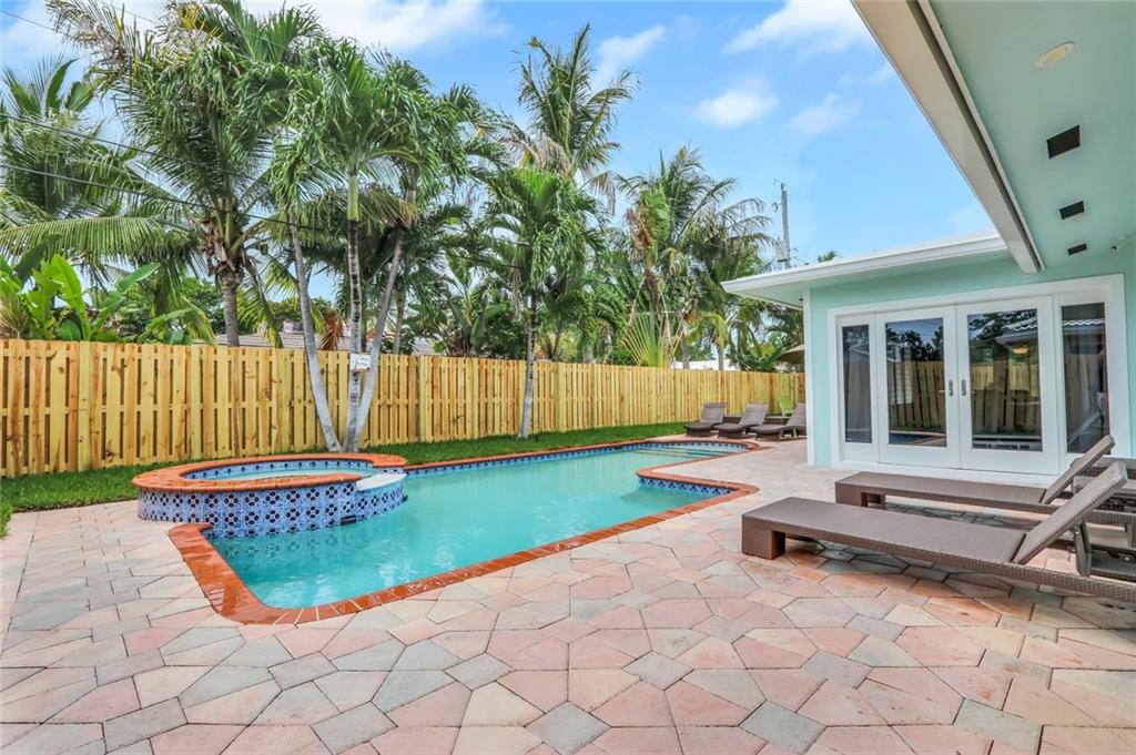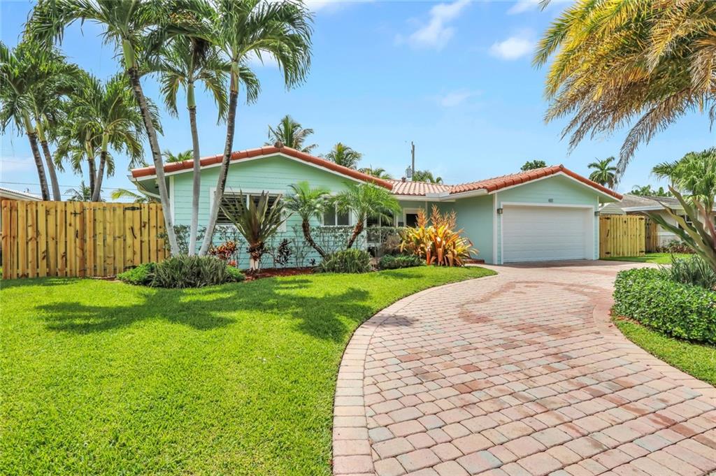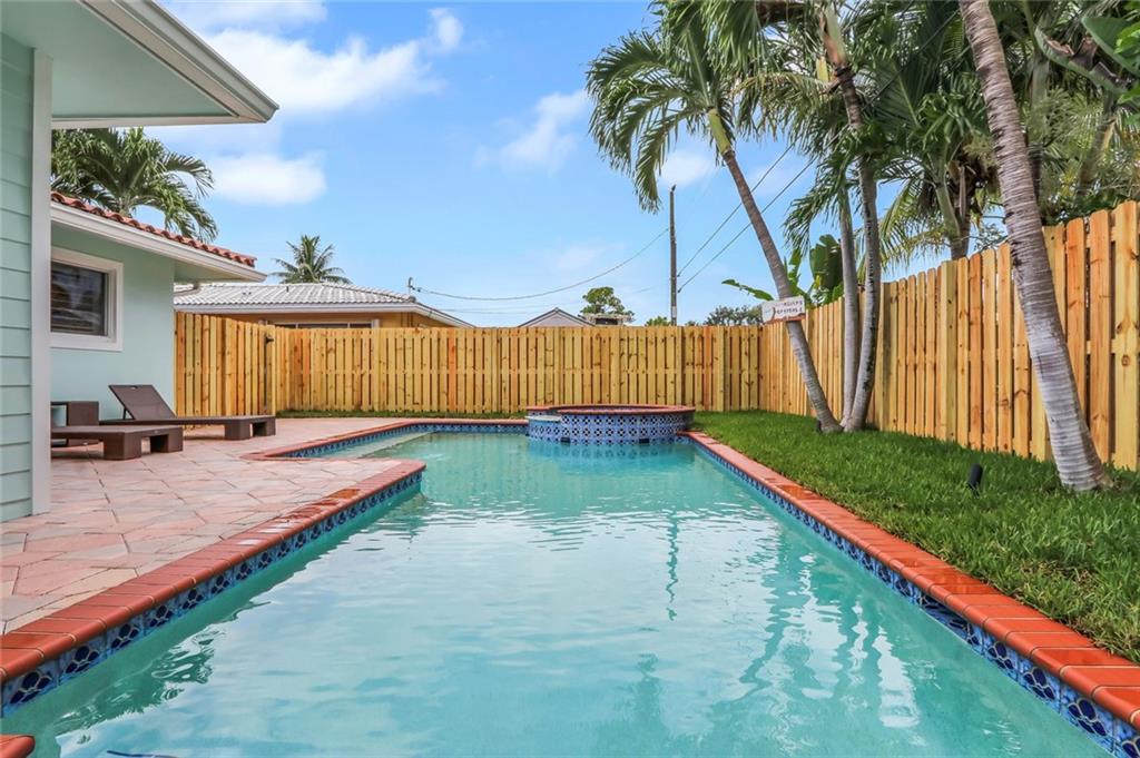 This beautifully renovated 2 bed/2 bath home welcomes you with amazing curb appeal in the front and a private oasis in the back! Island style siding accents the front/back of this home w/ a large front porch to enjoy the beautiful landscaping. Inside features porcelain floors & open concept living with an amazing kitchen featuring a gas stove, SS appliances & large island w/ beverage fridge for entertaining! 2 large bedrooms with renovated ensuite bathrooms, full impact windows and doors, roof 2006, newer washer/dryer. Inside laundry room w/storage & full 2 car garage. Property has brand new wood fence and gate has a 10' wide opening for a boat trailer. Heated & chilled pool with spa and plenty of yard to roam around! This is an exceptional must see house in amazing Pompano Beach!