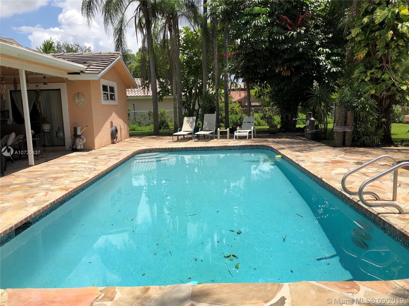 Location Location ...Gorgeous well maintained home situated on a big lot fenced in with water view, this beauty features 3 Bed rooms/2 Full remodeled bathrooms, eaten kitchen and a den, all living areas are tiled and wood floors are in all the bed rooms, the beautiful kitchen has wood cabinets with granite counter top and under mount sink, all appliances are practically new. The pool area is well maintained and has a great costume made Tiki bar on a build out deck for a great pool party. Property is close to all major free ways, shopping centers and malls. Coral Springs has (A) credited schools in all Broward county its an ideal place to leave. Please schedule an appointment to see this beautiful house.