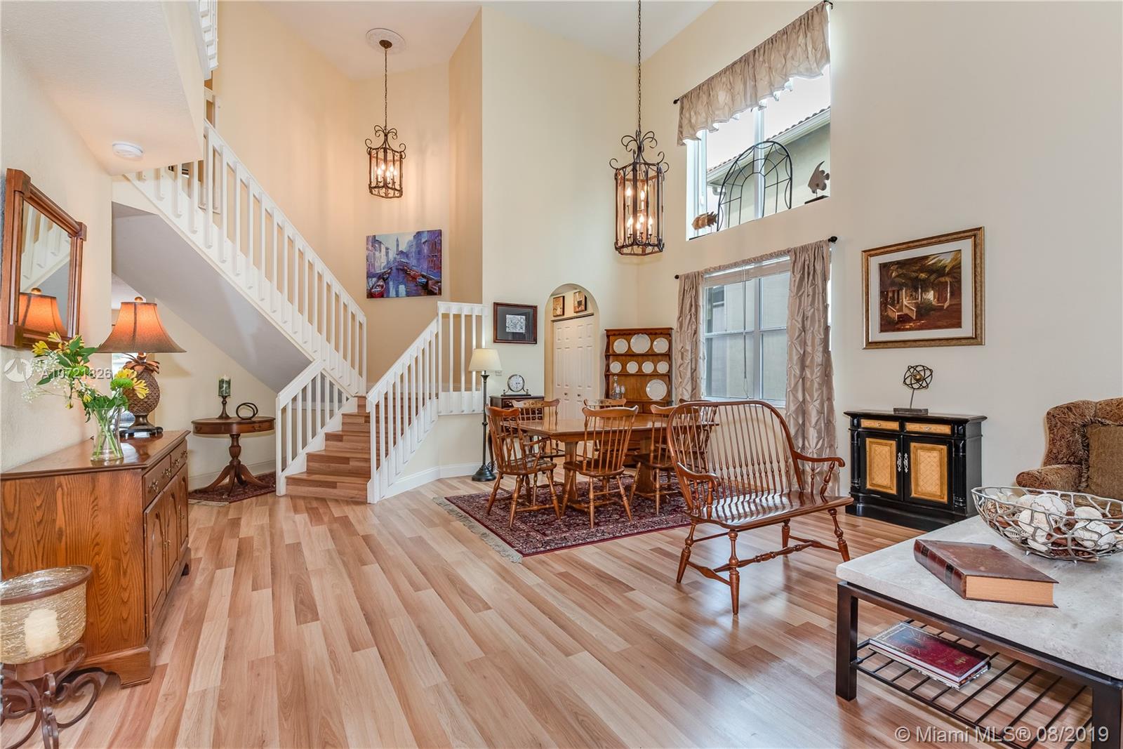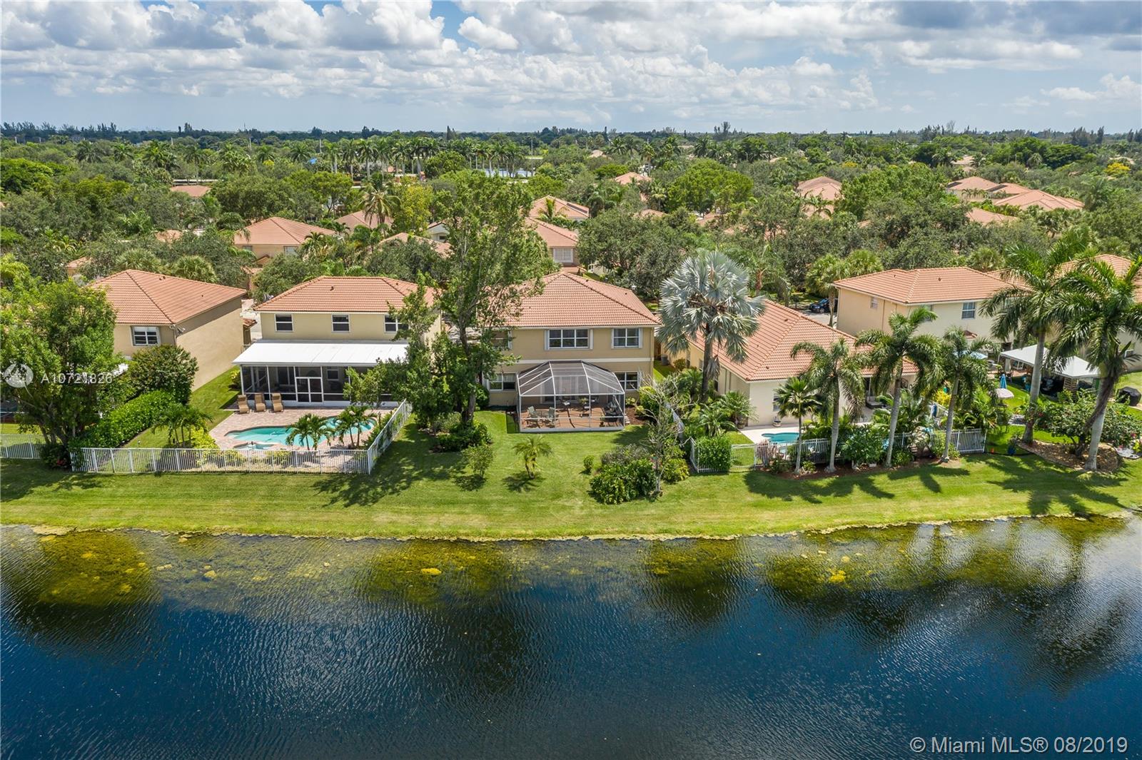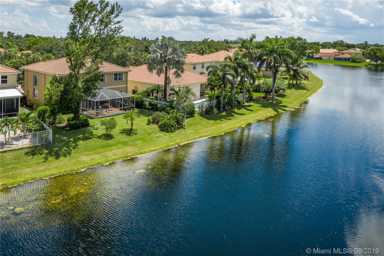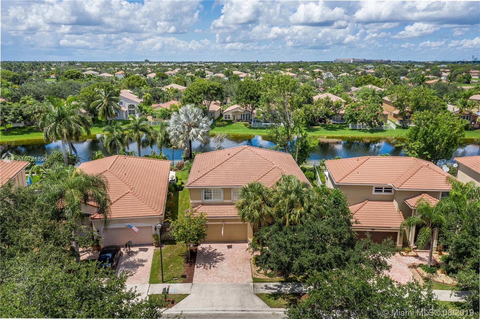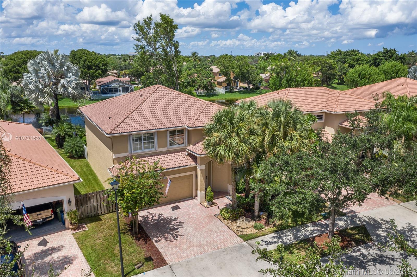 Fantastic waterfront home completely updated and ready to move-in. Popular JADE model! 4 Bedrooms + 3 Full Baths (one of the bedrooms and one full bath are located downstairs), enjoy the view of the lake from the large family room, breakfast nook, kitchen, downstairs BR and master suite. Volume ceiling in living and dining room, loft in the second floor open to living areas. All baths have been updated, the kitchen has granite counter-top and stainless steel appliances. Tiled flooring in living areas and laminate in the bedrooms and great room. The house is completely protected with accordion shutters except 3 windows that have impact glass. Screened patio to enjoy the outdoor! Comm. Pool and Gym. Association fee includes basic cable, internet, alarm & lawn/shrubs/sprinklers maintenance.