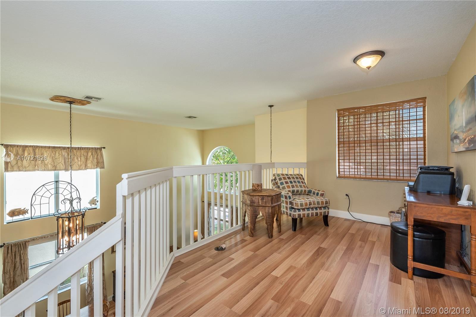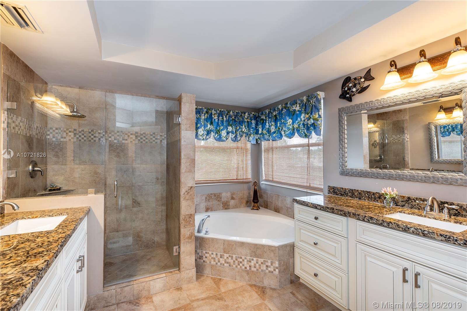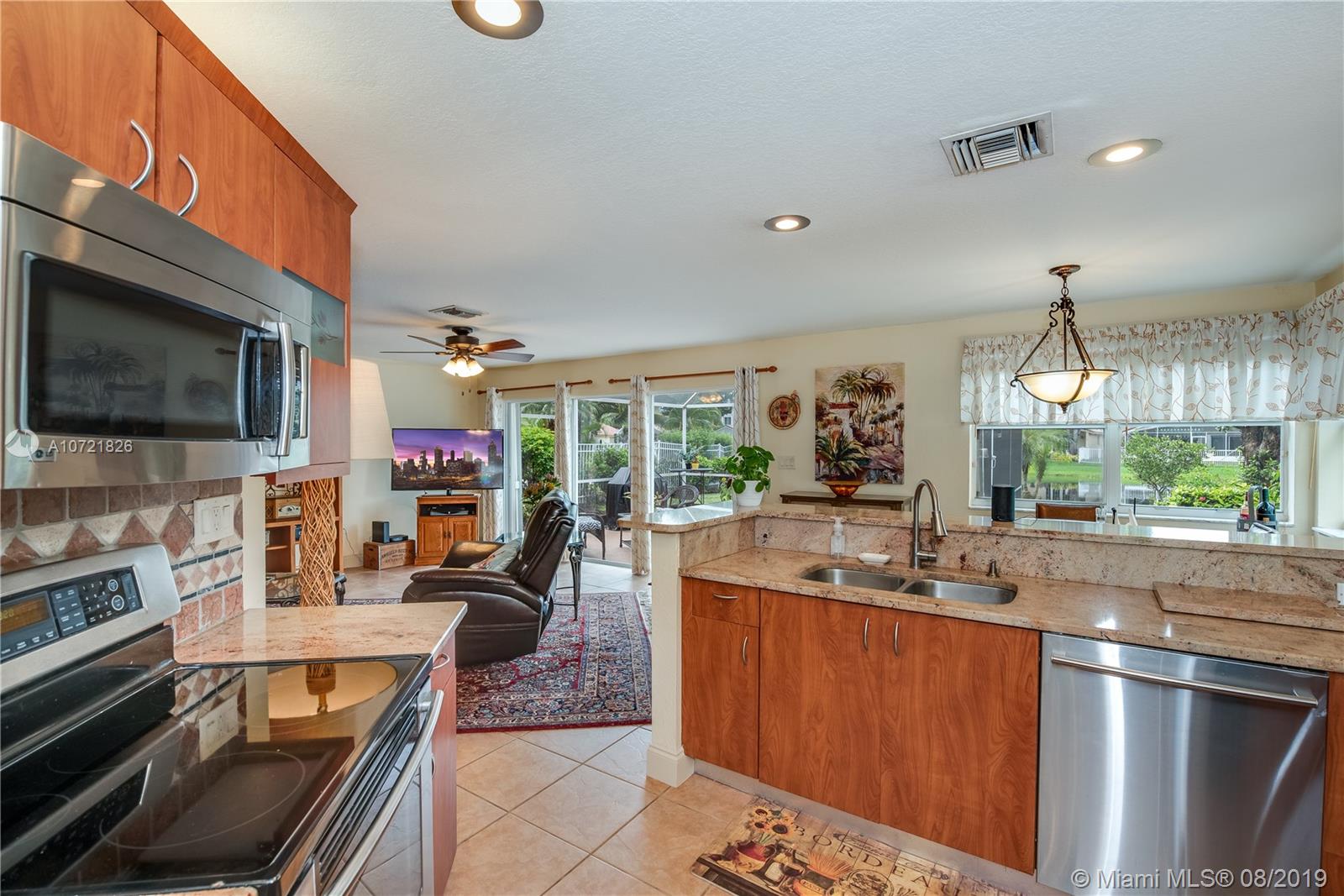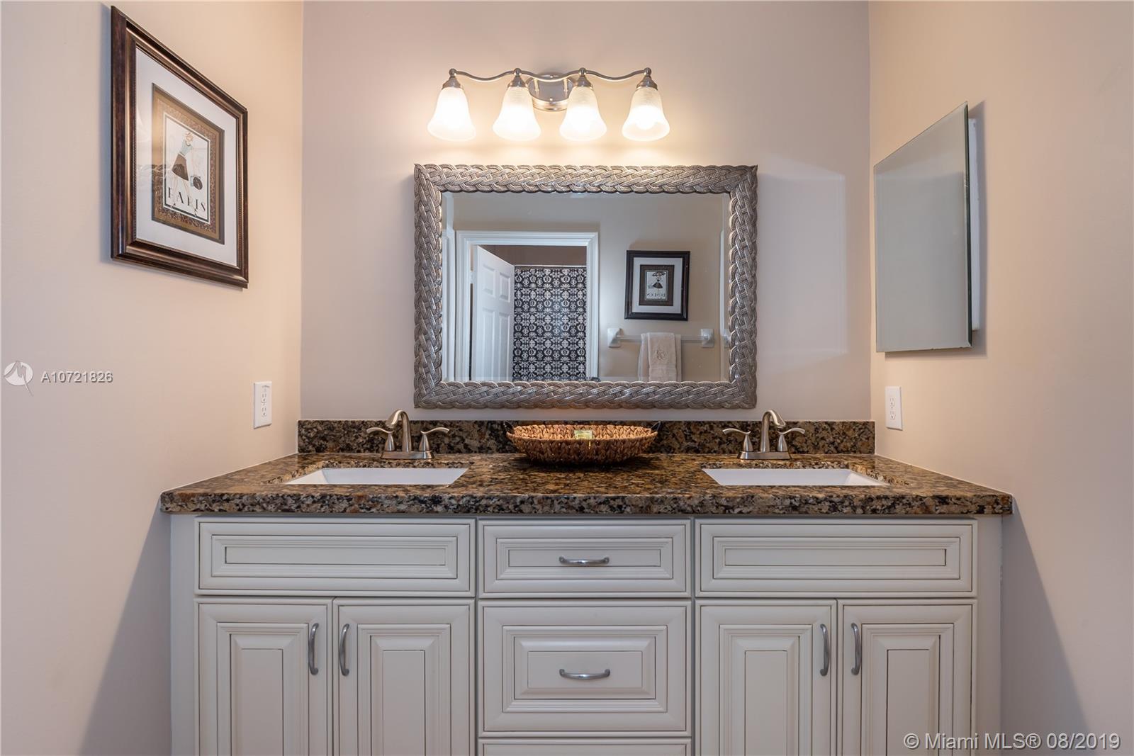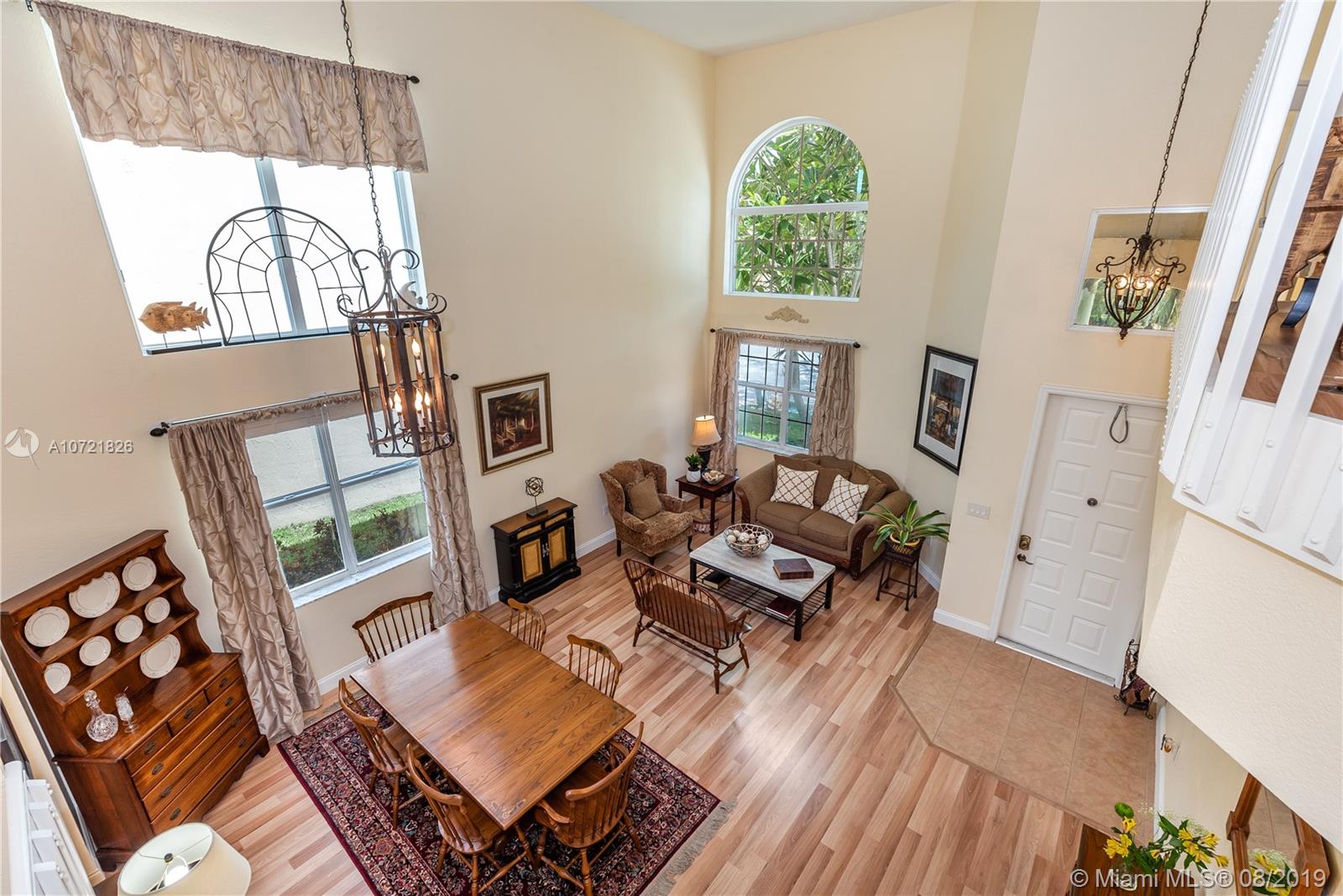 Fantastic waterfront home completely updated and ready to move-in. Popular JADE model! 4 Bedrooms + 3 Full Baths (one of the bedrooms and one full bath are located downstairs), enjoy the view of the lake from the large family room, breakfast nook, kitchen, downstairs BR and master suite. Volume ceiling in living and dining room, loft in the second floor open to living areas. All baths have been updated, the kitchen has granite counter-top and stainless steel appliances. Tiled flooring in living areas and laminate in the bedrooms and great room. The house is completely protected with accordion shutters except 3 windows that have impact glass. Screened patio to enjoy the outdoor! Comm. Pool and Gym. Association fee includes basic cable, internet, alarm & lawn/shrubs/sprinklers maintenance.