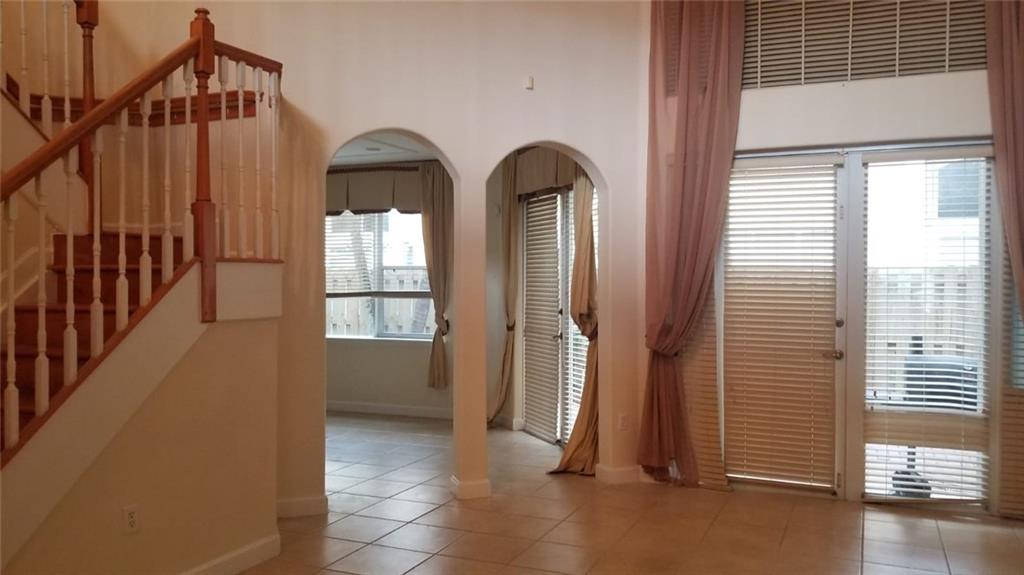 Beautiful townhouse. Well maintained community at the heart of Doral. This was a model house, with all kinds of upgrades, like french doors, crown moldings, fancy draperies, etc. Great schools, shopping malls Tile floors downstairs, wood floor in stairs, and carpet upper level (brand new). Just painted. Granite countertops, kitchen cabinets, stainless appliances. Two car garage. Tankless water heater. Alarm. Vaulted living room, open kitchen. Accordion Shutters. Fenced backyard with a patio covered with pavers. Huge den at second floor with great potential to be converted as 4th bedroom. Walking distance to schools, dog park, etc. Total living space is 2,276 SqFt, the larger townhouse in Las Cascadas. Low association fee (only $225/mo). Two car garage plus driveway parking (2 spaces).