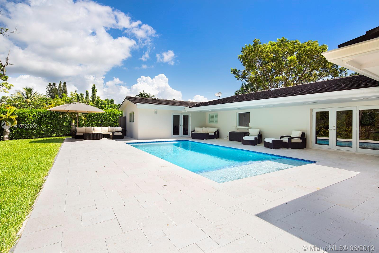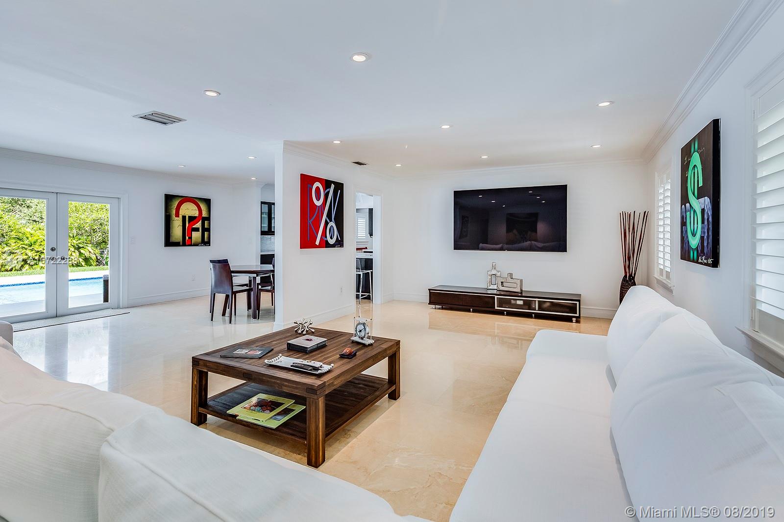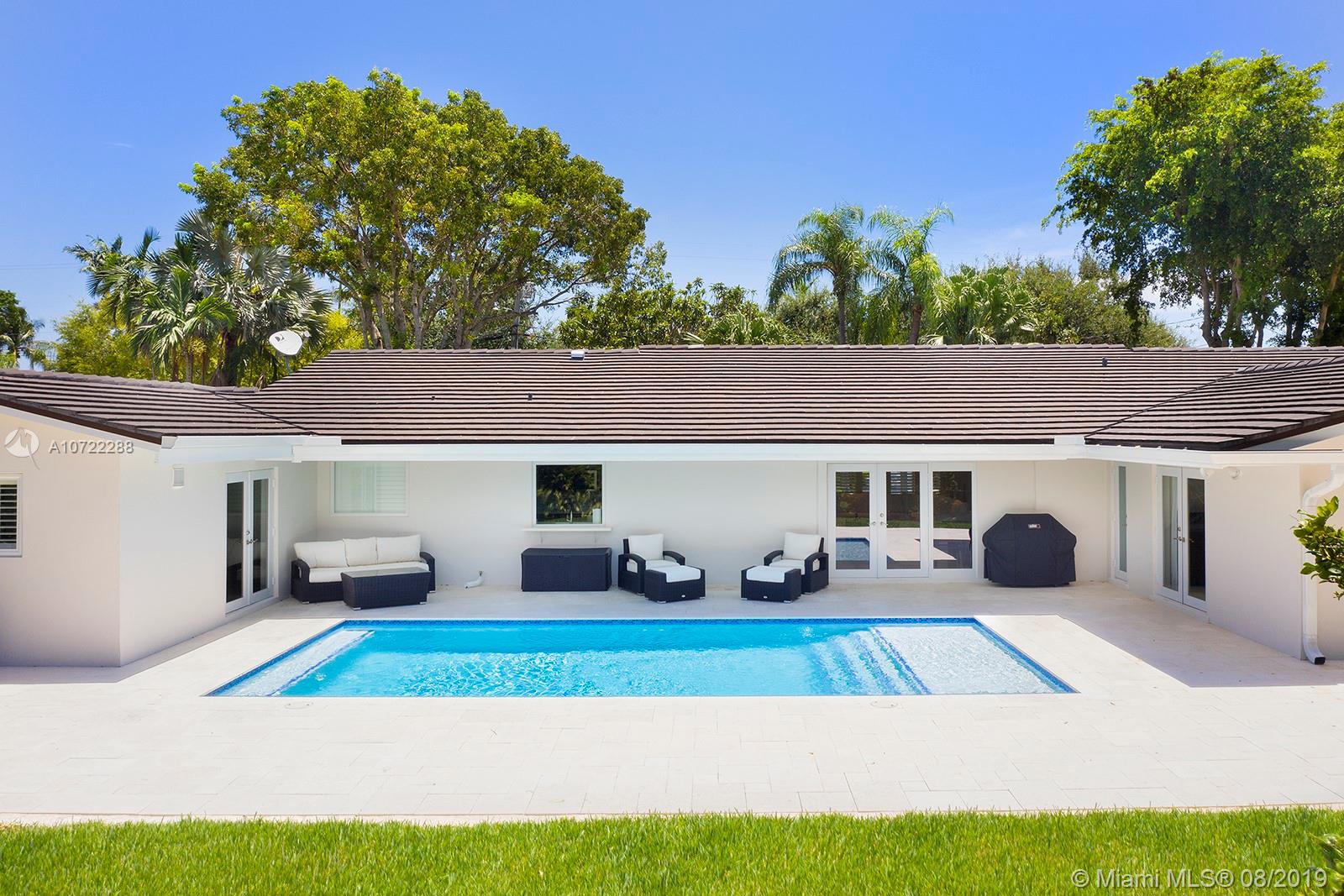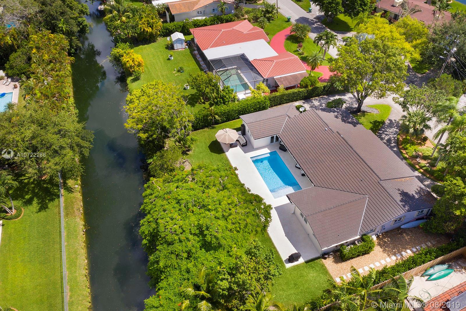 Gorgeous fully updated hard-to-find 5-bedroom family home on quiet street in desirable Palmetto Island neighborhood of Pinecrest. Modern kitchen remodeled in 2016, entire house CGI impact glass windows and doors, 2.5 year old flat tile roof w/ transferable warranty, 2018 beautiful top-of-the-line pool-patio remodel, plantation shutters, gutter system, 24" Travertine marble. LED lighting & more! Carved steps lead down to dock w/davit and navigable canals. Many more upgrades and care put into this lovely home w/high quality finishes.