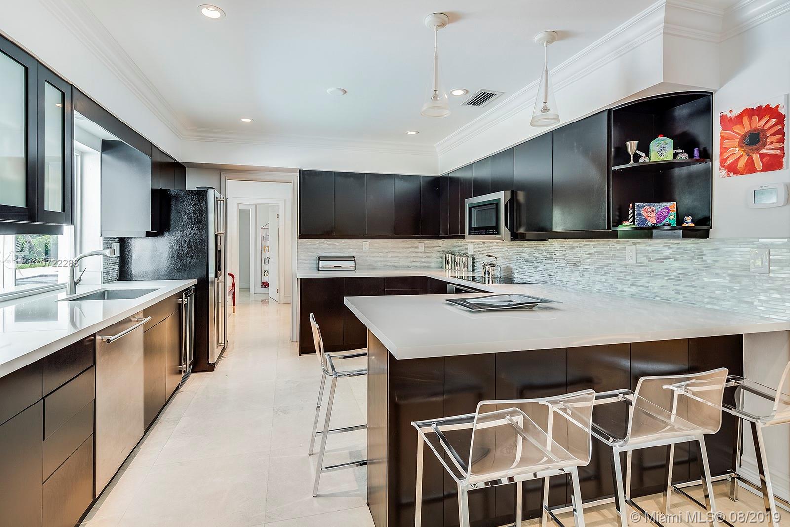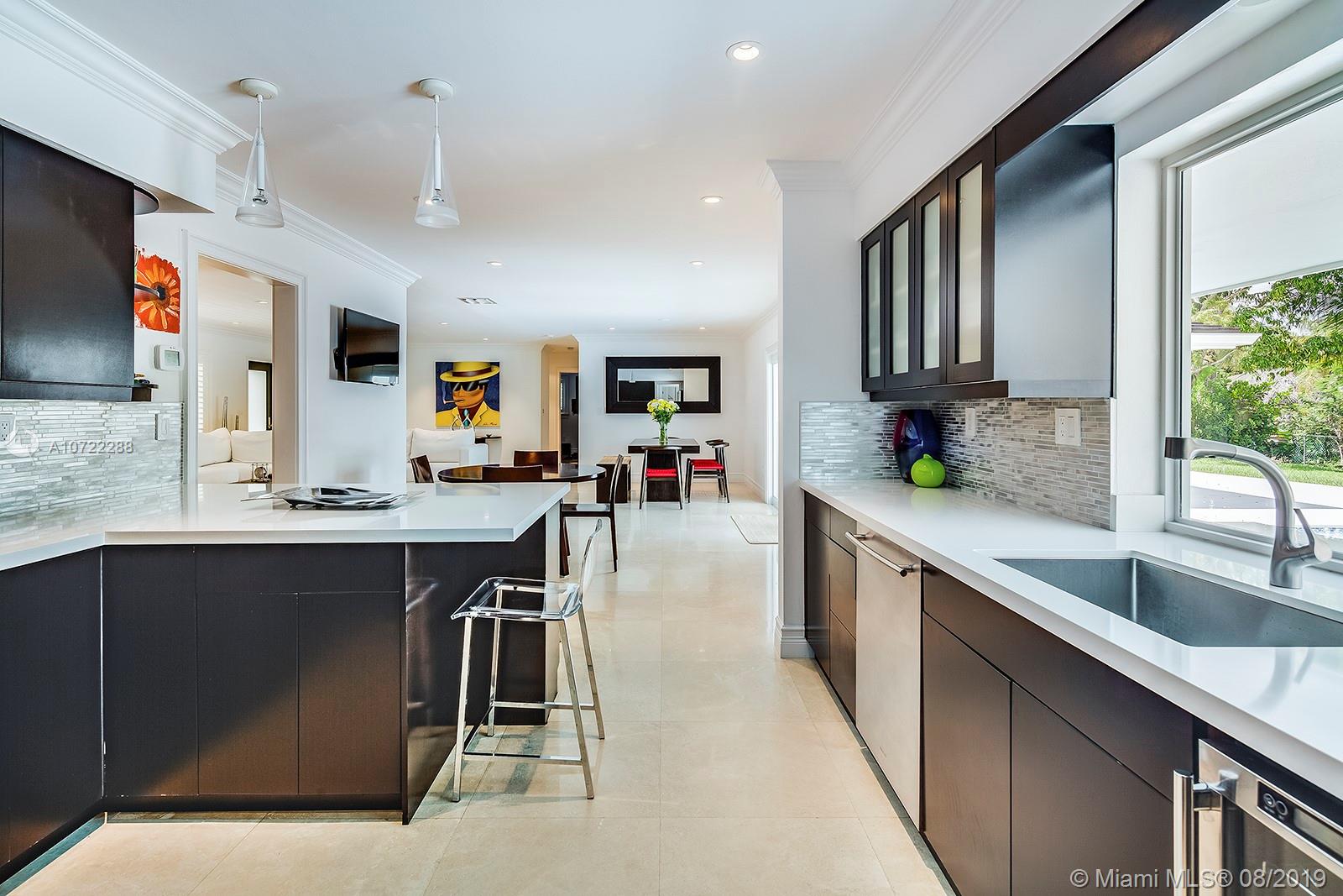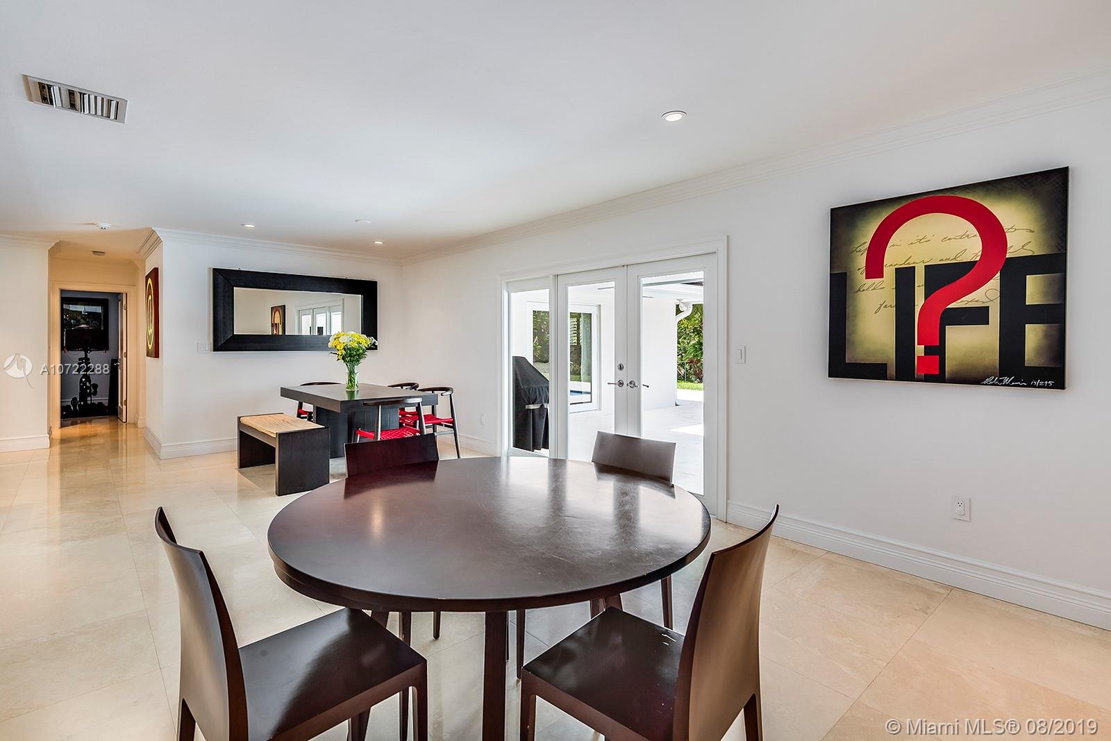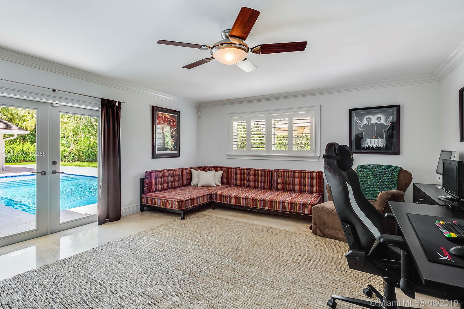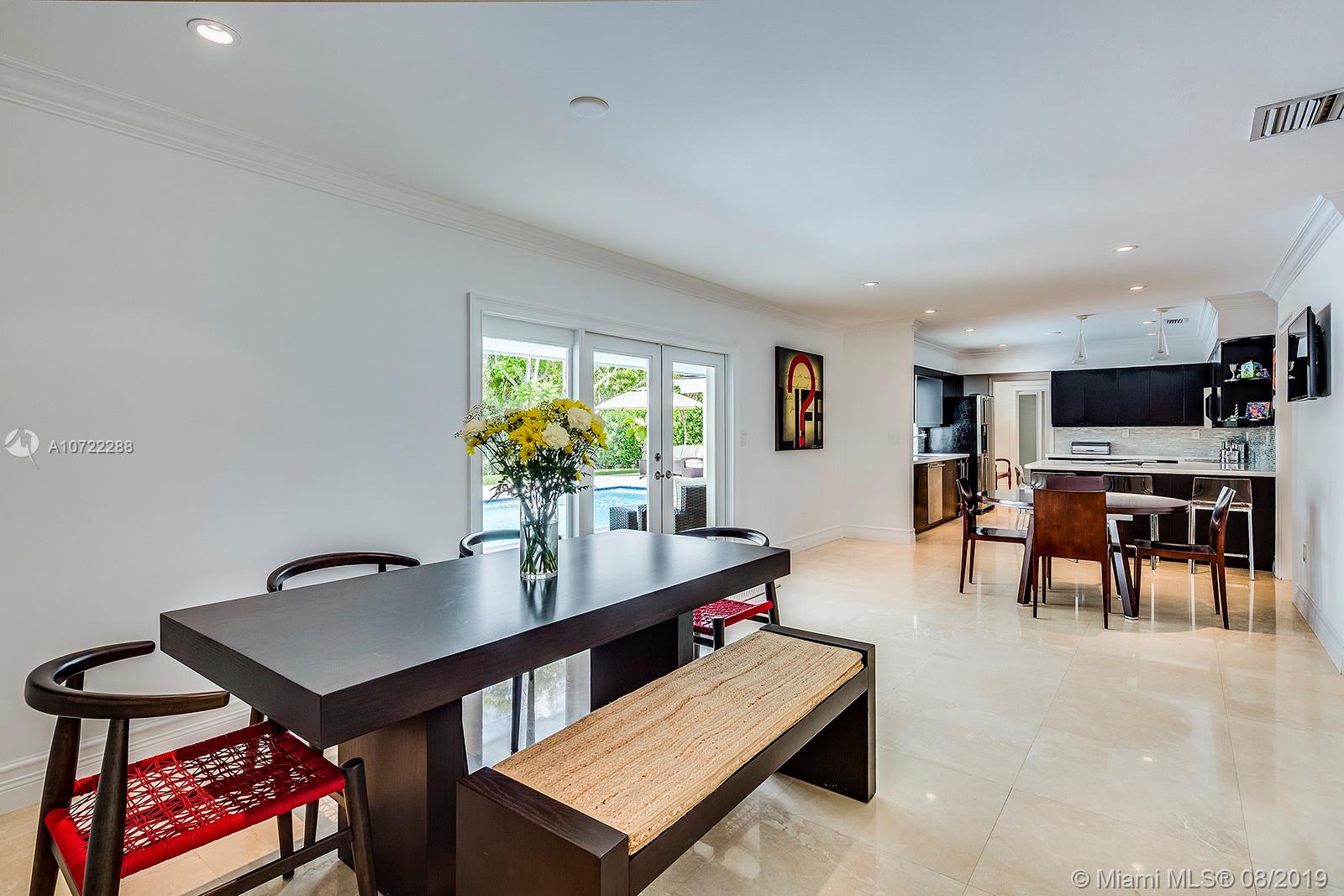 Gorgeous fully updated hard-to-find 5-bedroom family home on quiet street in desirable Palmetto Island neighborhood of Pinecrest. Modern kitchen remodeled in 2016, entire house CGI impact glass windows and doors, 2.5 year old flat tile roof w/ transferable warranty, 2018 beautiful top-of-the-line pool-patio remodel, plantation shutters, gutter system, 24" Travertine marble. LED lighting & more! Carved steps lead down to dock w/davit and navigable canals. Many more upgrades and care put into this lovely home w/high quality finishes.