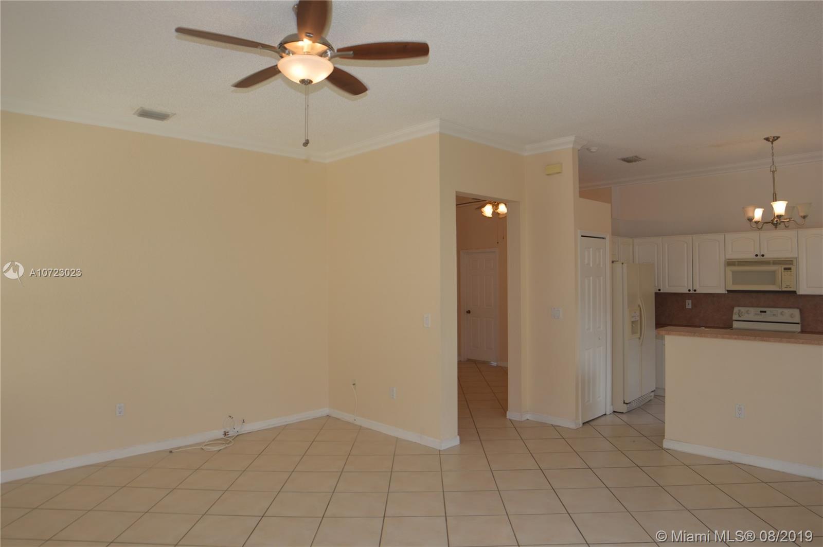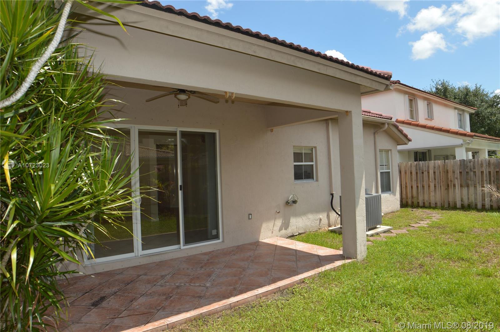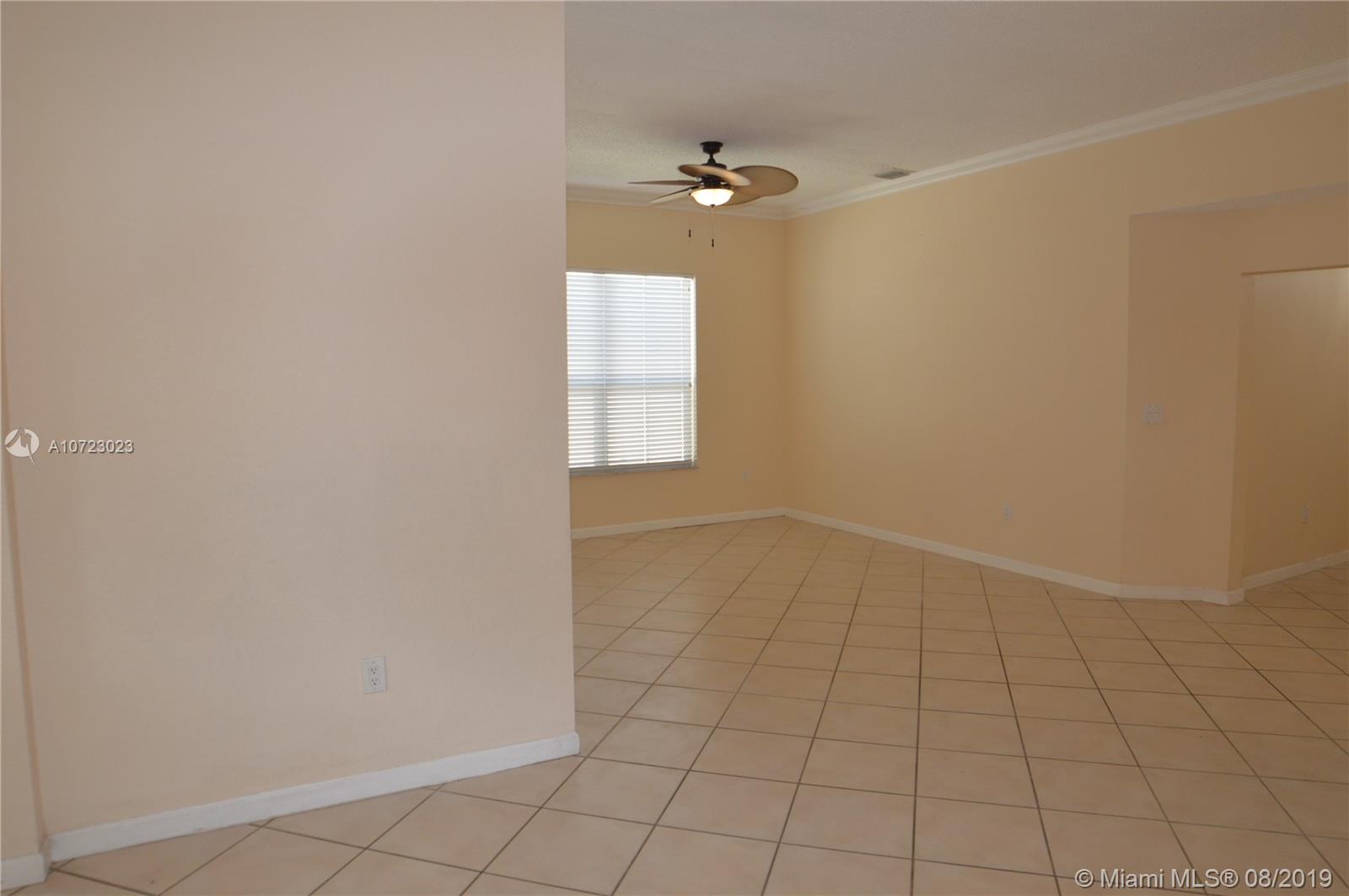 Hurry while interest rates are LOW! 3/2.5 Popular Diplomat model with family, dining and living room. Bright kitchen opens to family room. Split bedrooms with large master. Master bath features dual vanities, roman tub and separate shower. Elegant foyer entry. Tiled through out living areas. Hurricane shutters. Quaint fenced yard with covered patio (an 8000 builder upgrade). Guard gated community. Front lawn mowed by association. Terrific Davie schools. Convenient location near schools, shopping and highways. Great condition and ready for buyer to move in!