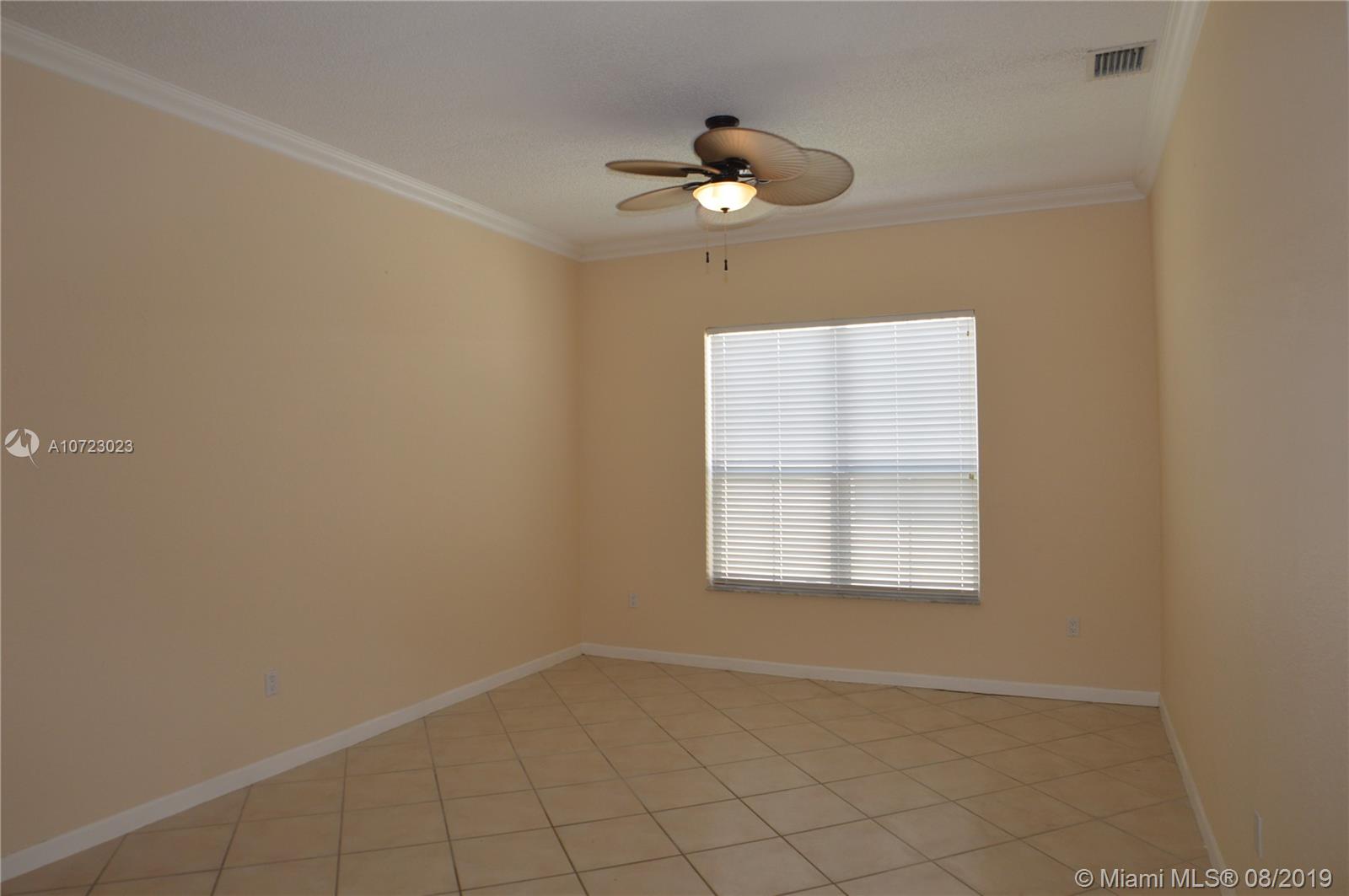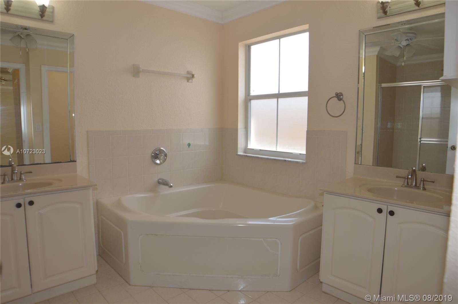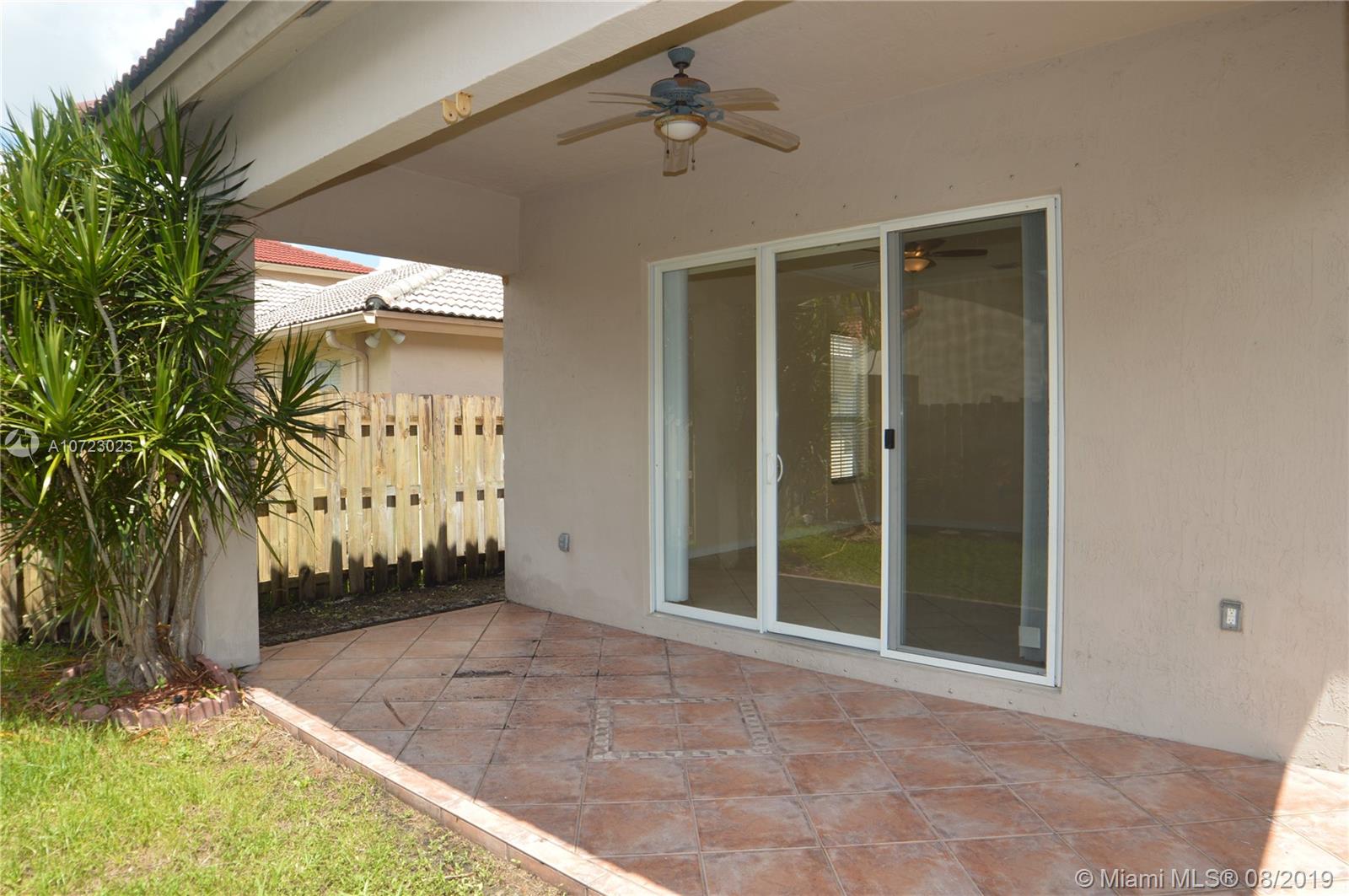 Hurry while interest rates are LOW! 3/2.5 Popular Diplomat model with family, dining and living room. Bright kitchen opens to family room. Split bedrooms with large master. Master bath features dual vanities, roman tub and separate shower. Elegant foyer entry. Tiled through out living areas. Hurricane shutters. Quaint fenced yard with covered patio (an 8000 builder upgrade). Guard gated community. Front lawn mowed by association. Terrific Davie schools. Convenient location near schools, shopping and highways. Great condition and ready for buyer to move in!