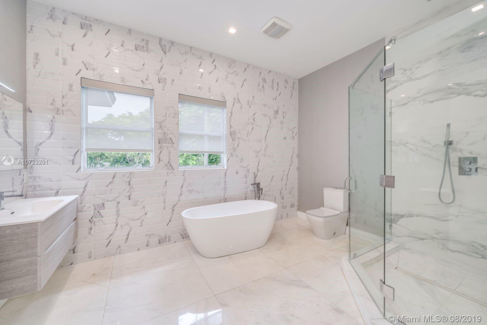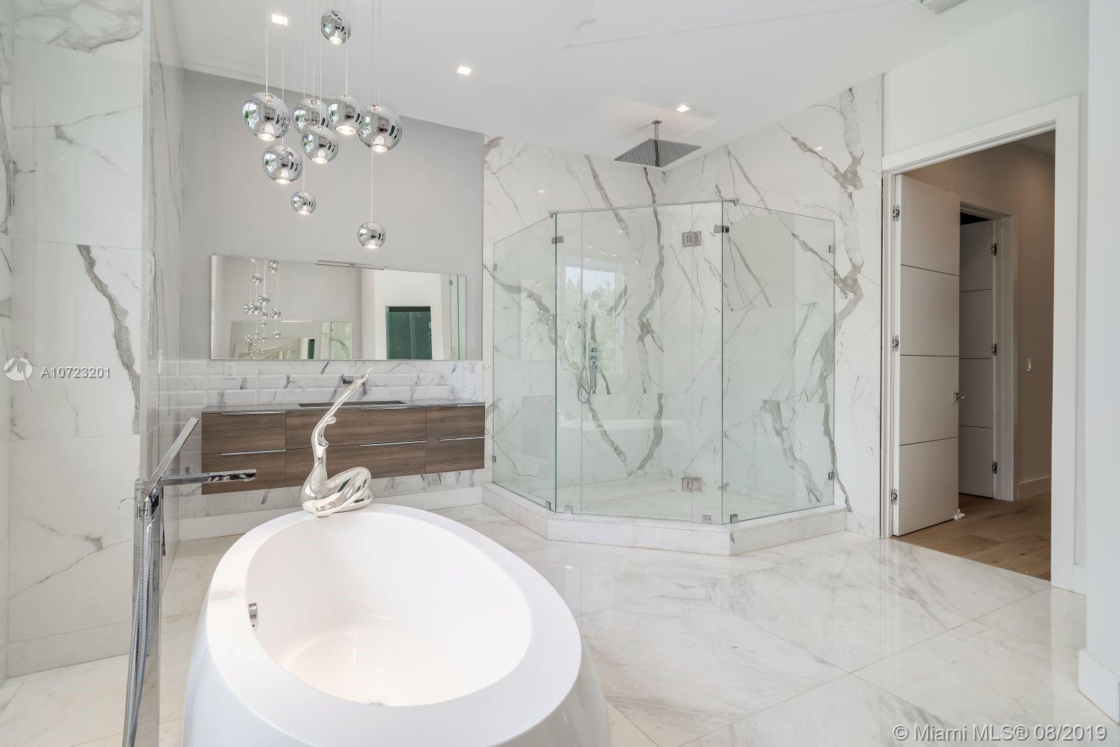 Hello gorgeous! Sleek and sculptural home of today. This sexy never lived in new construction combines modern minded spaces with approachable warmth. Setback from the street you have a grand approach and a huge backyard. With approximately 20,000 SF of land you have plenty of room for pool parties and barbeques. The dramatic 2-story foyer entry with double sweeping staircase sets the tone. Beautiful Mia Cucina kitchen, several outdoor patio spaces, two-car garage, and double master up are just a few of the luxuries offered. Located in exclusive Bay Point, security is paramount. This lush, leafy community owns their own streets. Just minutes to the Design District, Wynwood, Midtown and the heart of Miami Beach.