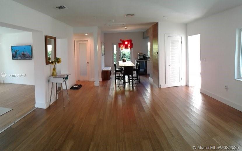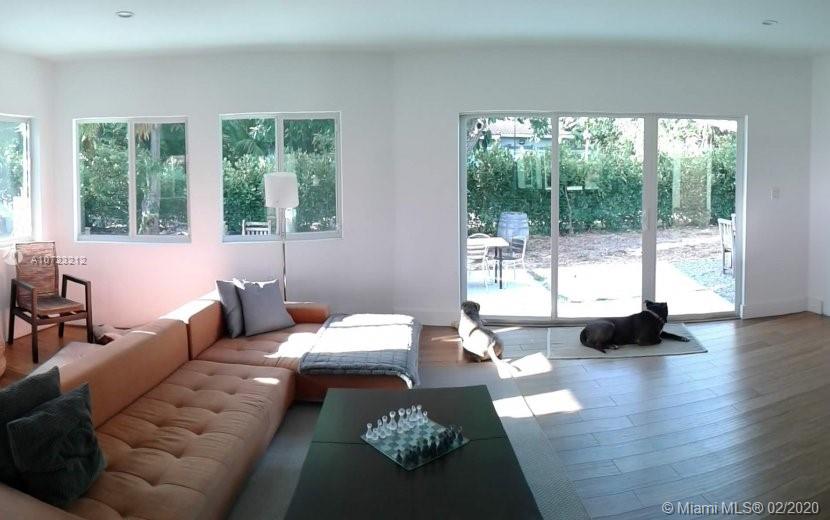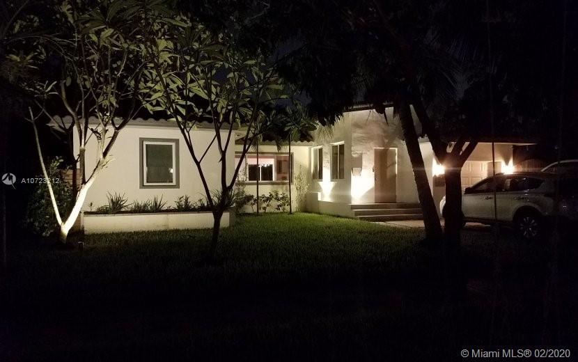 Gorgeous modern completely renovated corner lot, with no expenses spared, in the exclusive community of Miami Shores. This 2,085 SF house offers a bright floor plan that features an impressive facade, 3 bedrooms, 2 bathrooms a garage all done with modern custom touches and a huge fenced backyard. Bedrooms and bathrooms feature designer touches, from doors, door handles, cabinets, recessed (all LED throughout) lighting in and out, lighting outside trees, amazing shower, master bedroom and 3rd bedroom have private entrances for easy access to the yard. Property has new hardwood real bamboo floors, impact rated windows/doors, new Chef design kitchen with white waterfall granite, over-sized hood, wine refrigerator and a professional stove.