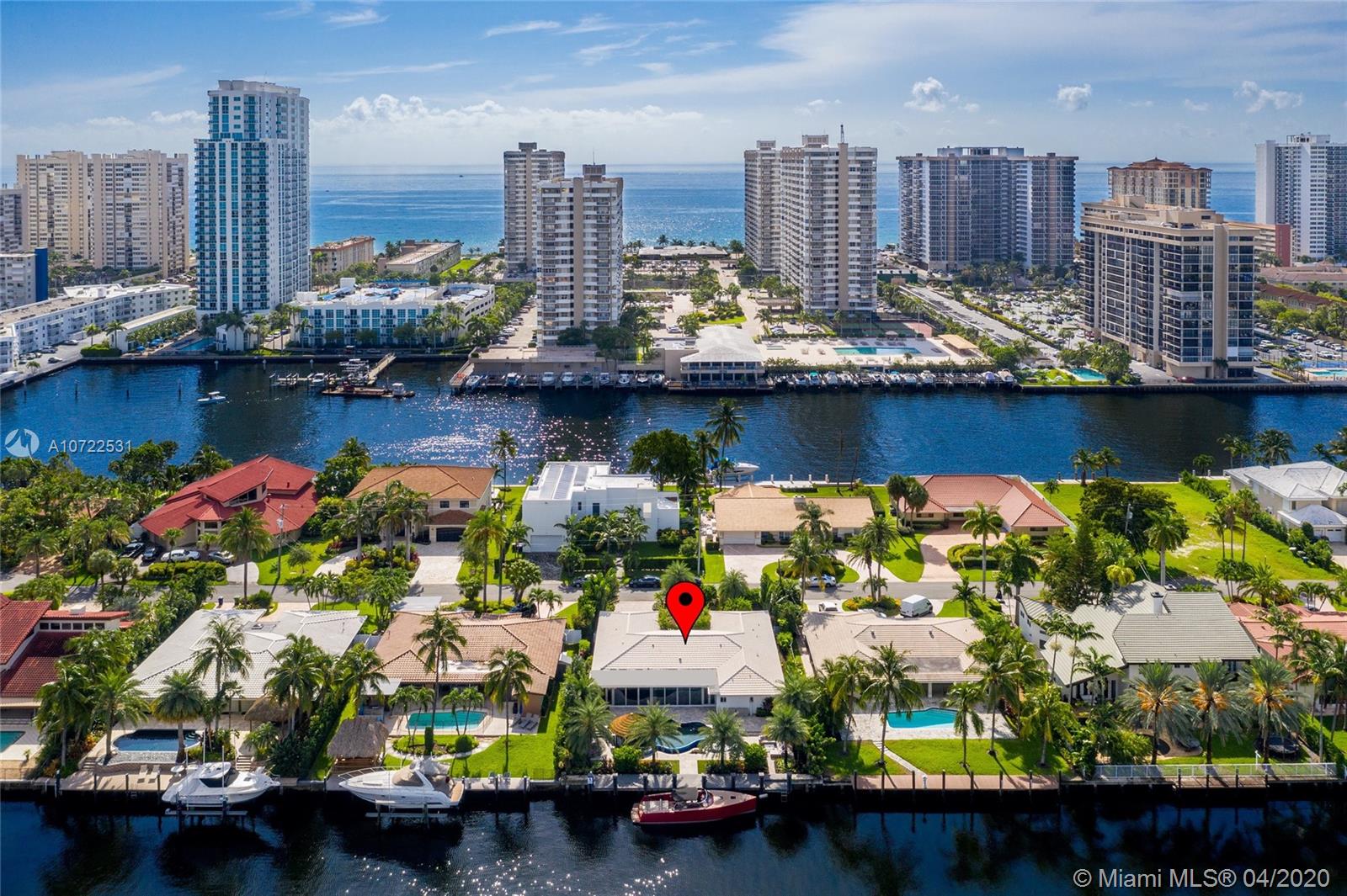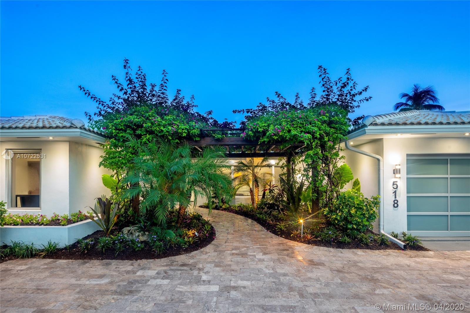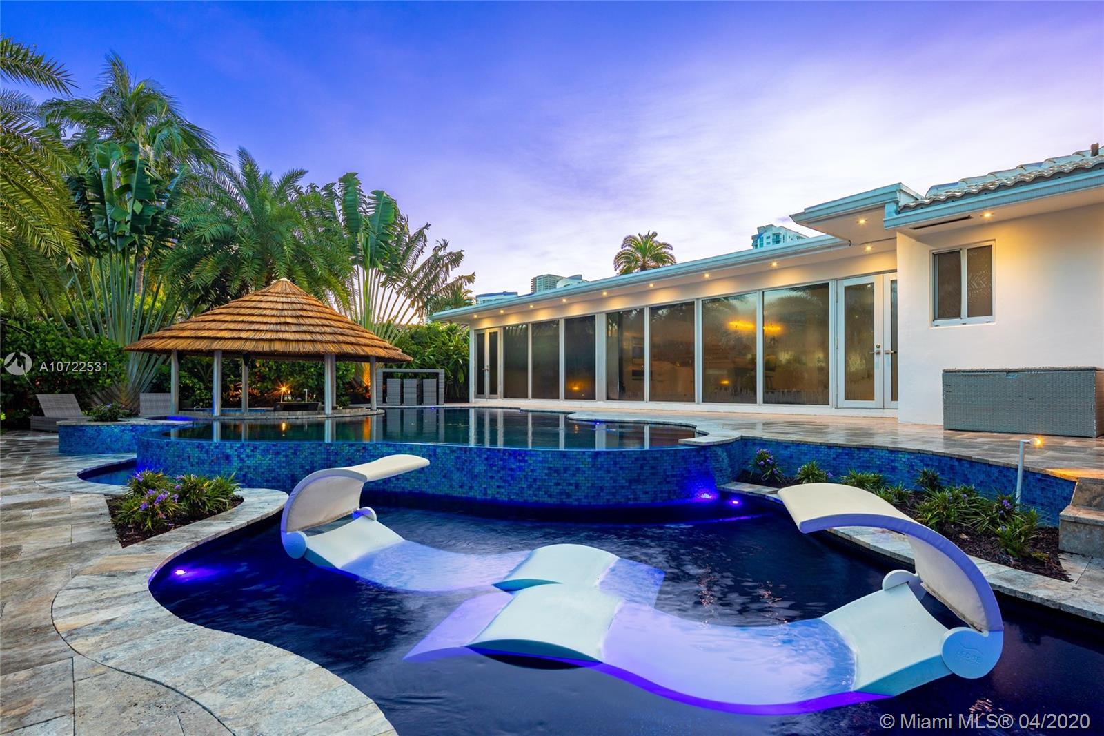Waterfront luxury masterpiece tucked away in the prestigious Golden Isles community. Fully renovated & turn key this stunning residence features 4 oversized bedrooms and 5 bathrooms, 4,000 Sq Ft of living space. A tranquil entry covered in bougainvillea welcomes you to a sleek modern vibrant place to call home. Open concept floor plan. White 32' porcelain tile throughout, custom doors, closets, LED lighting. Snaidero-Pininfarina Kitchen includes Subzero refrigerator & wine cooler, Quartz countertops, Wolf oven & range. 14' high ceilings, impact windows. Resort style backyard perfect for entertaining, custom designed infinity edge salt water pool w/ built in swim up tiki hut including summer kitchen & bar overlooking 85' of water frontage.Easy access to intracoastal,a plus for avid boaters!