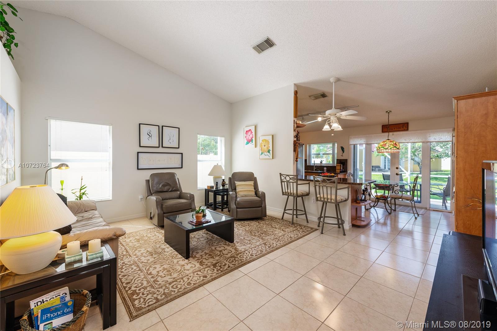 Beautiful 4/2.5 lake view home is centrally located in sought after Trilogy. Home has a split floor plan, laundry room inside the home and upgraded kitchen. Spacious master bedroom and bathroom with sitting area overlooking the peaceful lake. Large yard with screened and tiled patio. Low monthly HOA of $56.