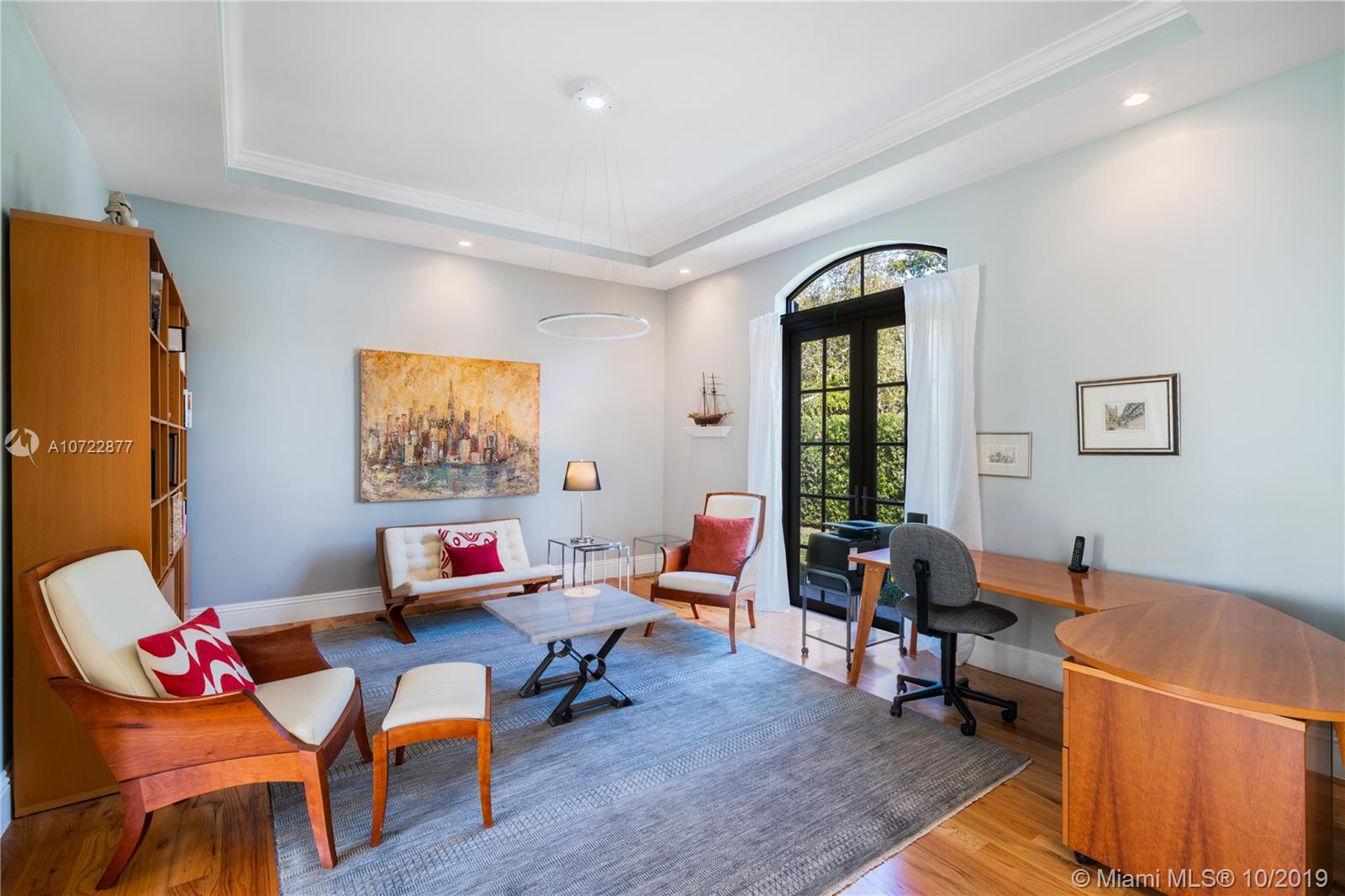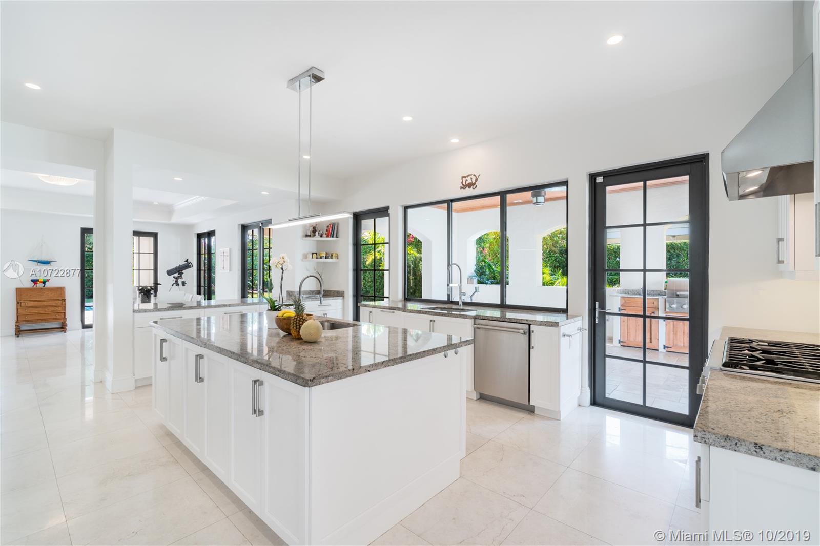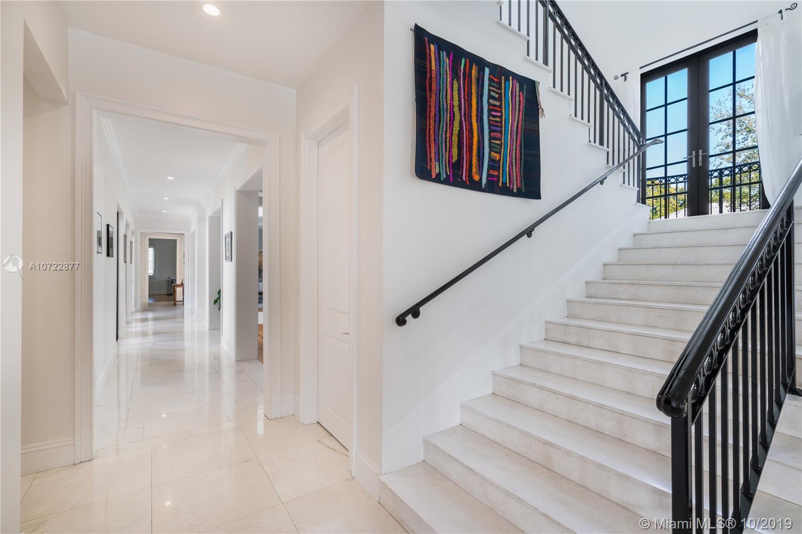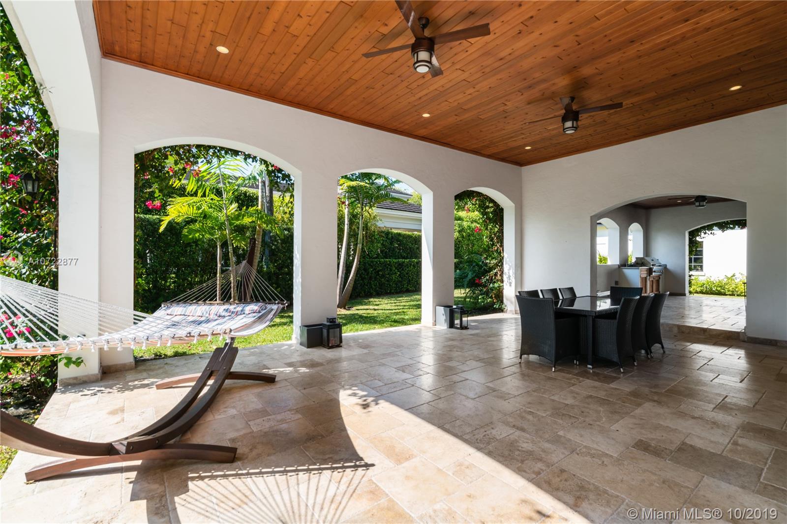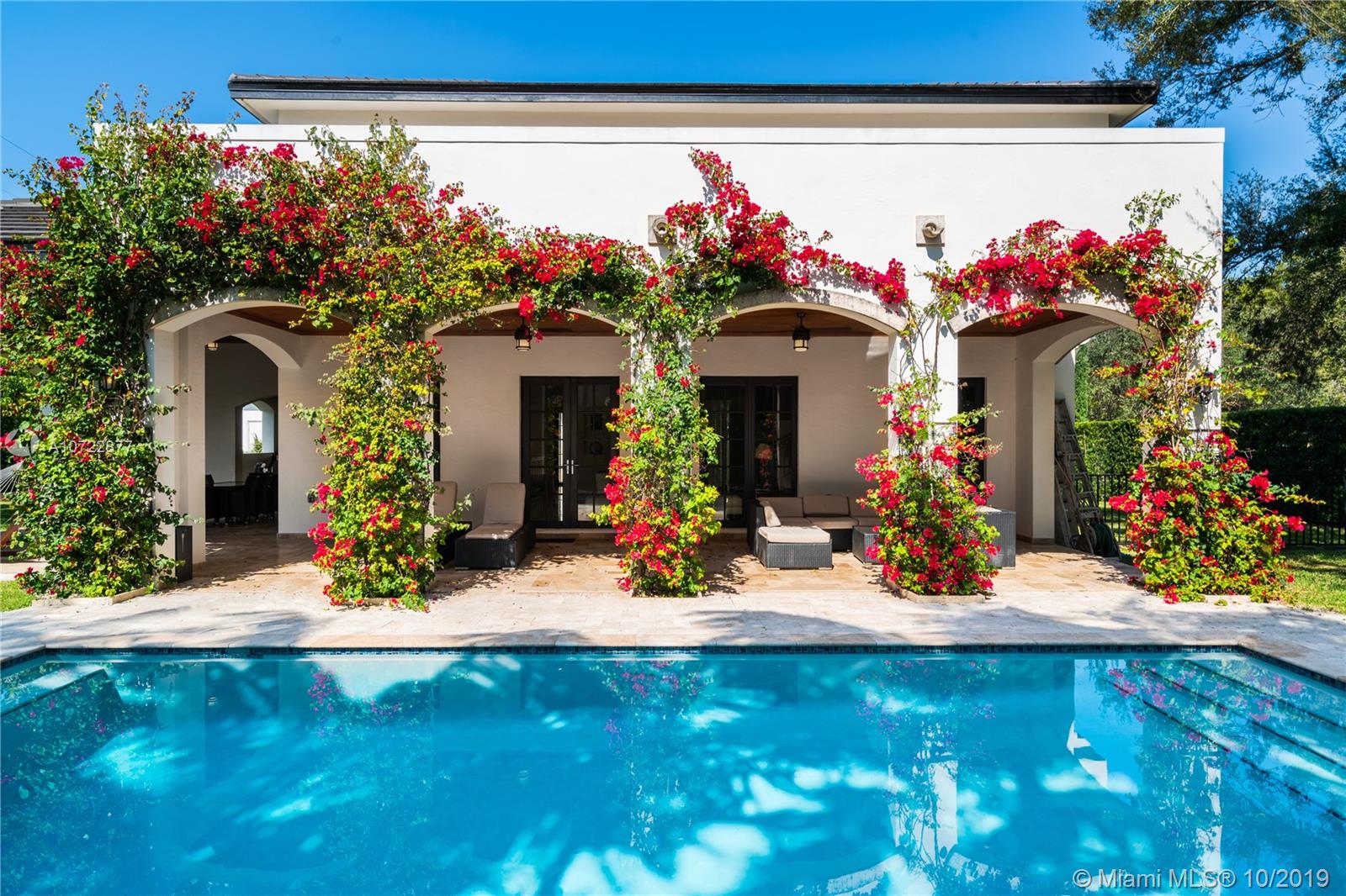 Located on an oversized corner lot in South Gables, this elegant 2 story residence was built in 2015 and features 6 bedrooms, 7 full and 1 half bath. Light filled gourmet European kitchen includes island, Thermador appliances, snack bar, butler’s pantry and walk-in wine cellar. Multiple spacious covered terraces lead to lush manicured yard with pool and summer kitchen. Master Suite features his and hers walk-in closets with custom built-in cabinetry and private deep balcony. Completely walled and gated with 3 car garage. High ceilings and balconies adorn the upstairs bedrooms. Formal Family and Dining Room are adjoined by an enchanting foyer entry. Minutes from A+ rated schools, restaurants and shops. Ideal family home with the spirit for entertaining.