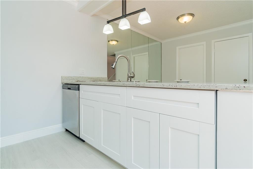 Completely renovated townhouse tucked inside a quiet community; located steps from several beautiful lakes, complex amenities, parks and running trails. Large courtyard entrance into the home; perfect space for private outdoor entertaining. The kitchen and bathrooms are all redesigned; lovely custom soft close cabinets and granite counter tops, huge peninsula and stainless steel appliances. Spacious powder room sits off the kitchen area; new washer & dryer in laundry with storage space. Double bedroom suites located upstairs with large walk-in closets and balconies. Beautiful community with vibrant green lawns and manicured trees. Low HOA fee includes repair/painting of property exterior, insurance, lawn care. Great townhouse for FHA or low conventional loans.