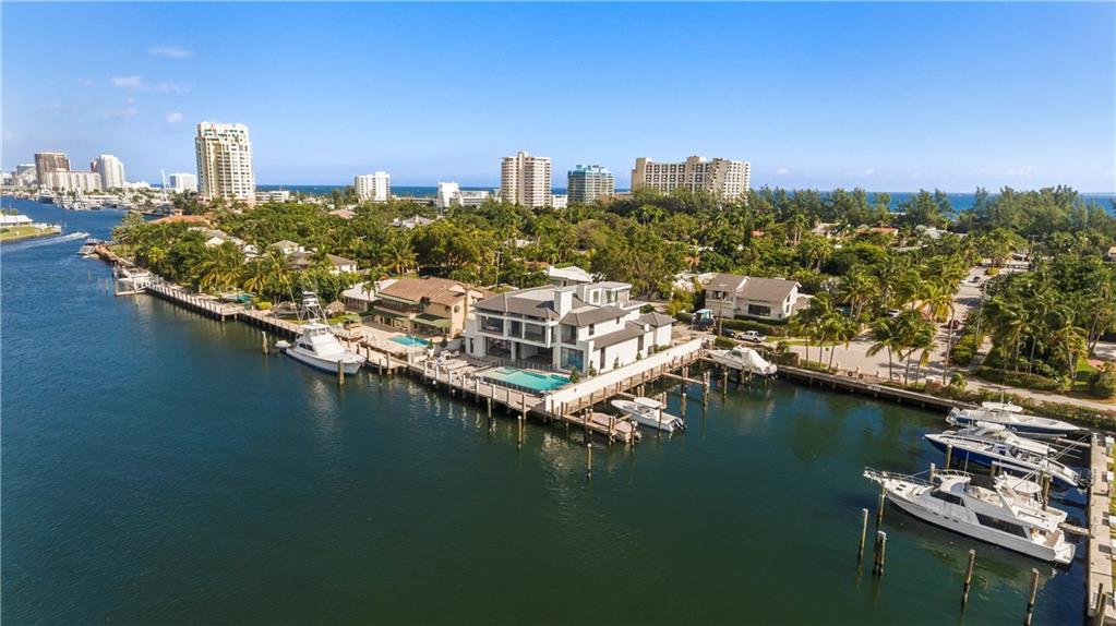 Most recently completed new construction in Harbor Beach! Beautifully refined Coastal Modern design by Randy Stofft/Builder Sarkela Corp. Incredible wide & picturesque Lake Sylvan (open to intracoastal) & Marina views from large corner property. Stunningly open & light floorplan, walls of windows that fold back completely for outdoor enjoyment & entertaining. An expansive covered loggia, & multiple loggias/balconies include a roof top terrace. Chef's kitchen opens to breakfast area & family room, wine wall, two sided fireplace. Glass enclosed library/den opens to club room & bar. One bedroom suite downstairs, incredible Master with private balcony & separate bathrooms/closets. All bedroom suites large & custom designed. Spectacular custom pool & fire pit. Private Surf Club across A1A
