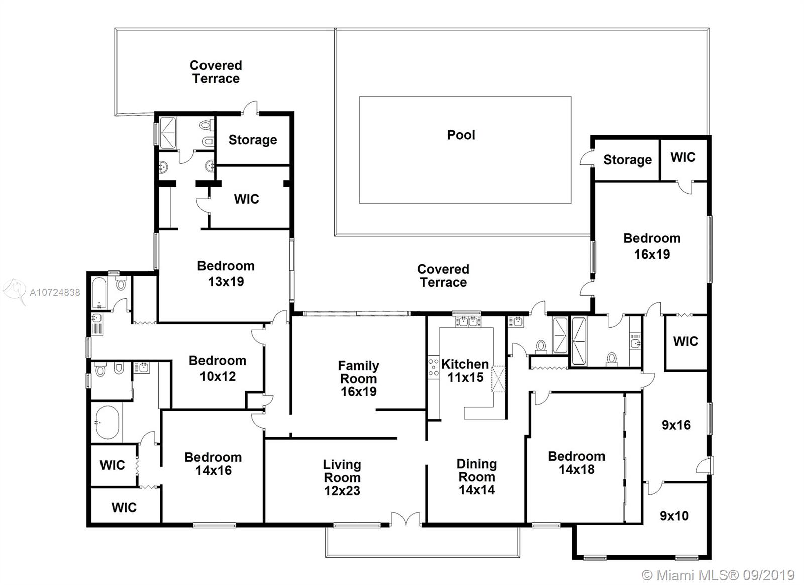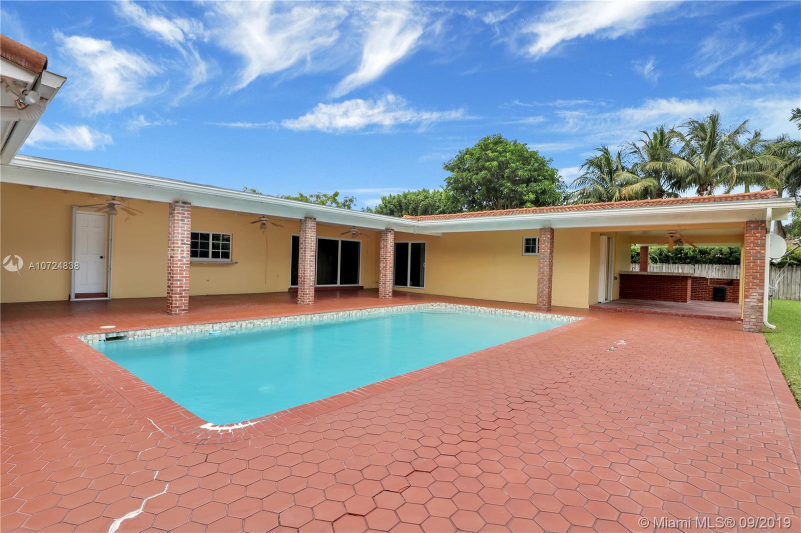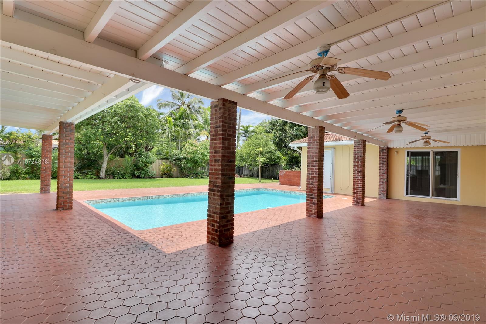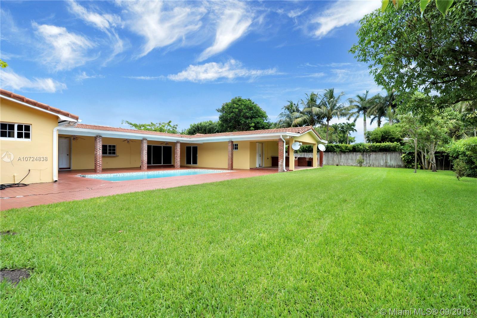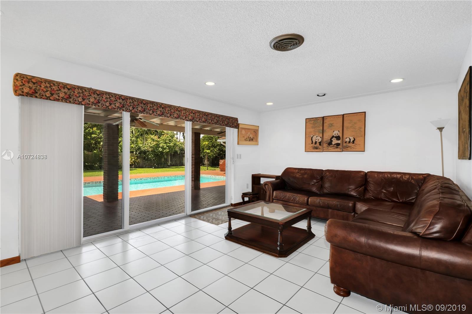 Your own private haven in an excellent location of North Pinecrest. Close to 4,000 sq ft of living area featuring impact glass throughout, a formal living, dining, and family room all adjacent to a large kitchen, this home's floorplan offers potential like non other! Split plan with 3 huge bedrooms with their own bathroom suites on one side and another 2 beds 2 baths on the other, making it perfect for guests or in-law quarters. A central focus and beautiful views of the crystal blue pool from all sides of the house. Located on a quiet street and in Pinecrest's excellent school zone! Easy to show!