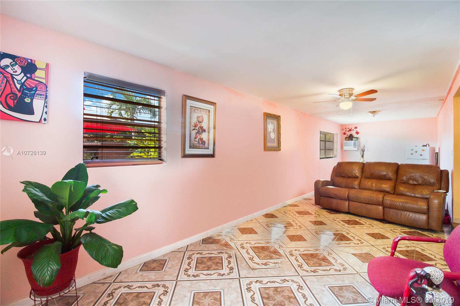Huge property located at the corner lot of desirable neighborhood at the west side of City of Hialeah. Centrally located just a few blocks away from 49th street close, to a main highway, shopping centers, restaurants, malls and many more attractions. This property has 3 bedrooms and 2 bathrooms plus one additional bedroom and bathroom located in the right side of the property which communicates with the property through a door in the kitchen and also has an independent entry to the side patio.