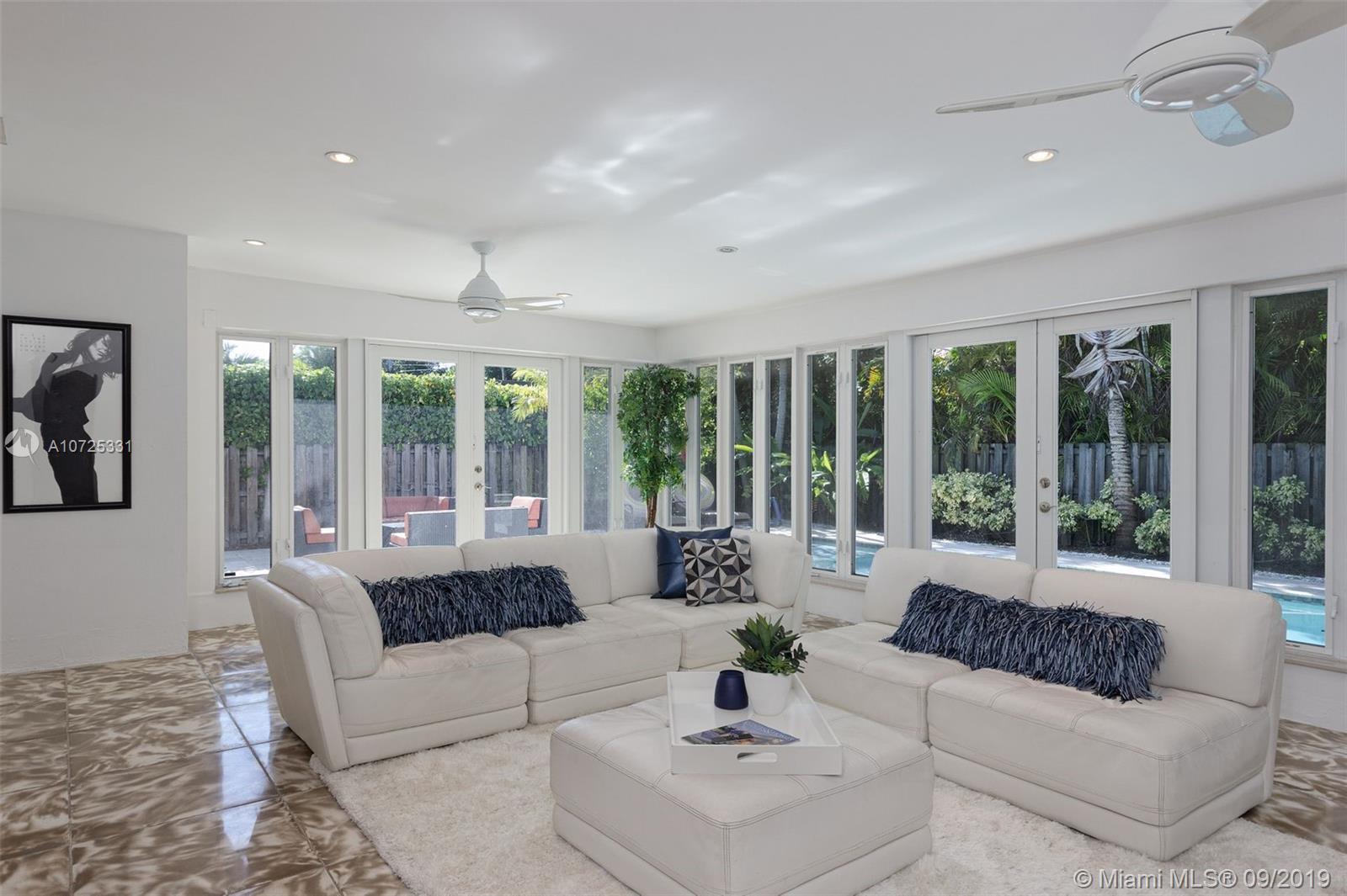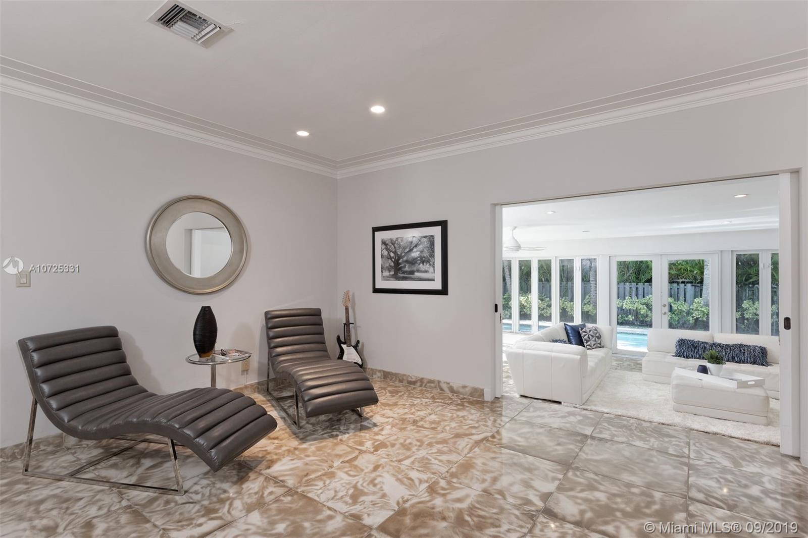 MIAMI SHORES MID CENTURY MODERN EAST OF US-1. 3 BEDROOMS, 2 BATHS, TWO CAR GARAGE AND POOL WITH SPA. BIG OPEN LIVING SPACES MAKE THIS HOME PERFECT FOR ENTERTAINING GUESTS. FAMILY ROOM OVERLOOKS THE POOL AND TROPICAL GARDEN. HUGE EAT-IN KITCHEN WITH CUSTOM WOOD CABINETS AND TOP OF THE LINE APPLIANCES. INSIDE LAUNDRY ROOM WITH STORAGE. MASTER BEDROOM HAS UPDATED PRIVATE BATH AND WALK-IN CLOSET. 2 BIG GUEST BEDROOMS SHARE A FULLY RENOVATED BATH. IMPACT WINDOWS, NEWER ROOF, HEATED POOL AND SPA. GREAT PARKING, LOTS OF STORAGE, QUIET NEIGHBORHOOD. MOVE IN CONDITION. LOW MAINTENANCE HOME... ALL THE WORK HAS BEEN DONE FOR YOU.