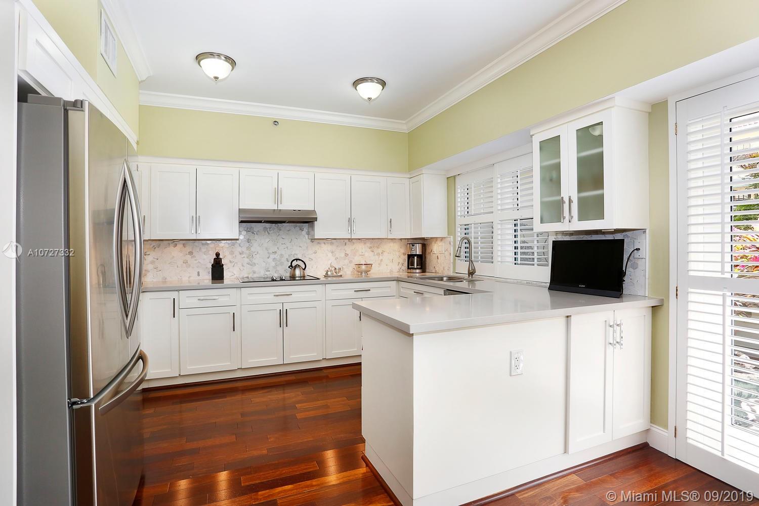 This elegant 2b/2.5b townhouse is located in the coveted New French Village. This stunning home boasts gleaming wood floors throughout, gorgeous kitchen with adjacent breakfast area and impact windows and doors. The spacious master suite features ample closets, marble bath with two vanities, separate tub and shower and bidet. The second bedroom is equally spacious with an en-suite bath and walk-in closet. Charming covered patio off of kitchen area can be enjoyed for morning coffee or evening cocktails. Two covered parking spaces under the building, plus plenty of off street parking is available. The New French Village is ideally situated nearby downtown Coral Gables, yet tranquil and serene. Motivated seller.