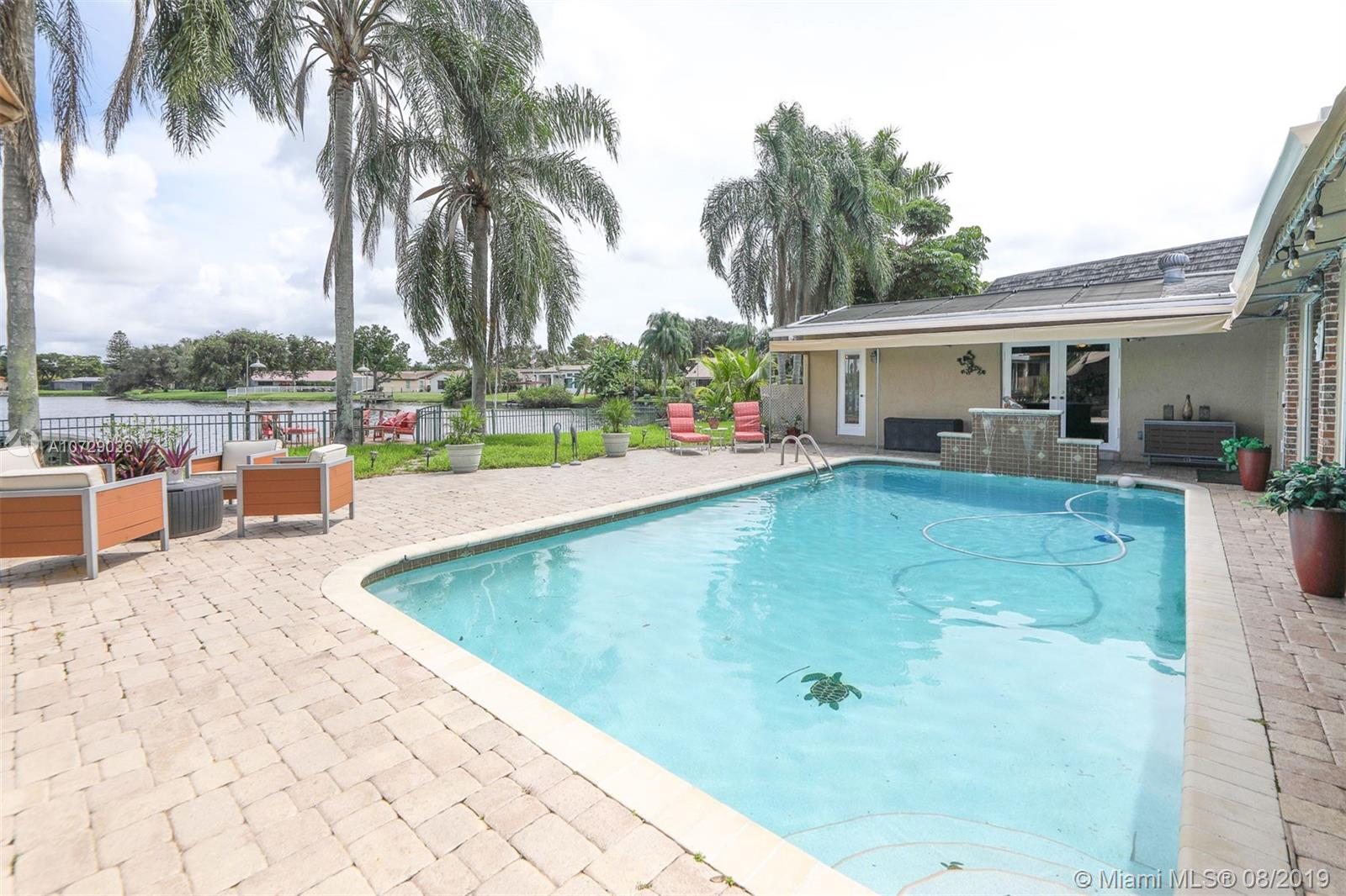 PRICE IMPROVEMENT! GREAT PRICE PER SQ FT! 4/2 on a beautiful lot w/ WIDE LAKE perfect for entertaining w/formal living & dining rooms & CUSTOM-DESIGNED GOURMET KITCHEN, granite countertops, family rm features WOOD-BURNING FIREPLACE. kitchen has lake views & opens to the large sunroom w/PICTURE WINDOWS. Porcelain tile in kitchen & family room, updated master bath. The spacious master suite features double French doors that open to pool & patio. Enjoy a private DOCK finished w/maintenance-free engineered wood. New electrical panels, 3 y/o energy efficient AC, partial impact windows & partial insulated windows w/hurricane panels, Bahama shutters, FENCED YARD,3 y/o variable speed pool pump, travertine circular drive, Add your personal finishing touches. ROOM FOR BOAT/RV. NO HOA