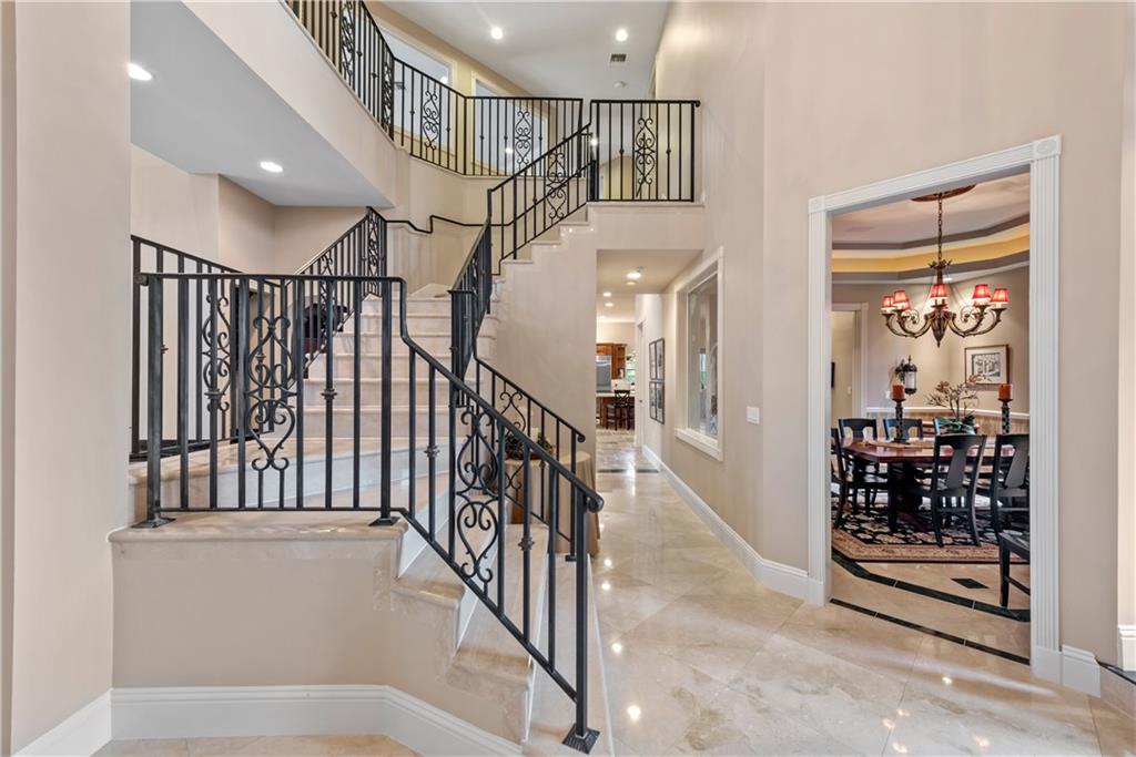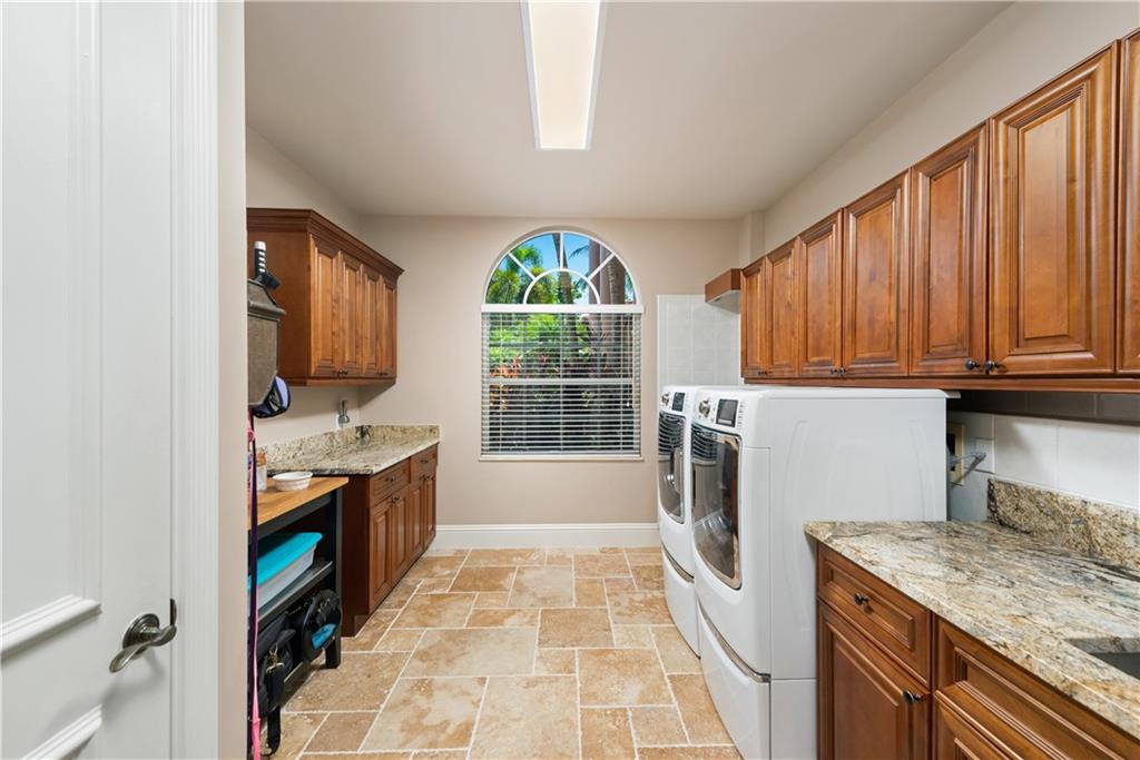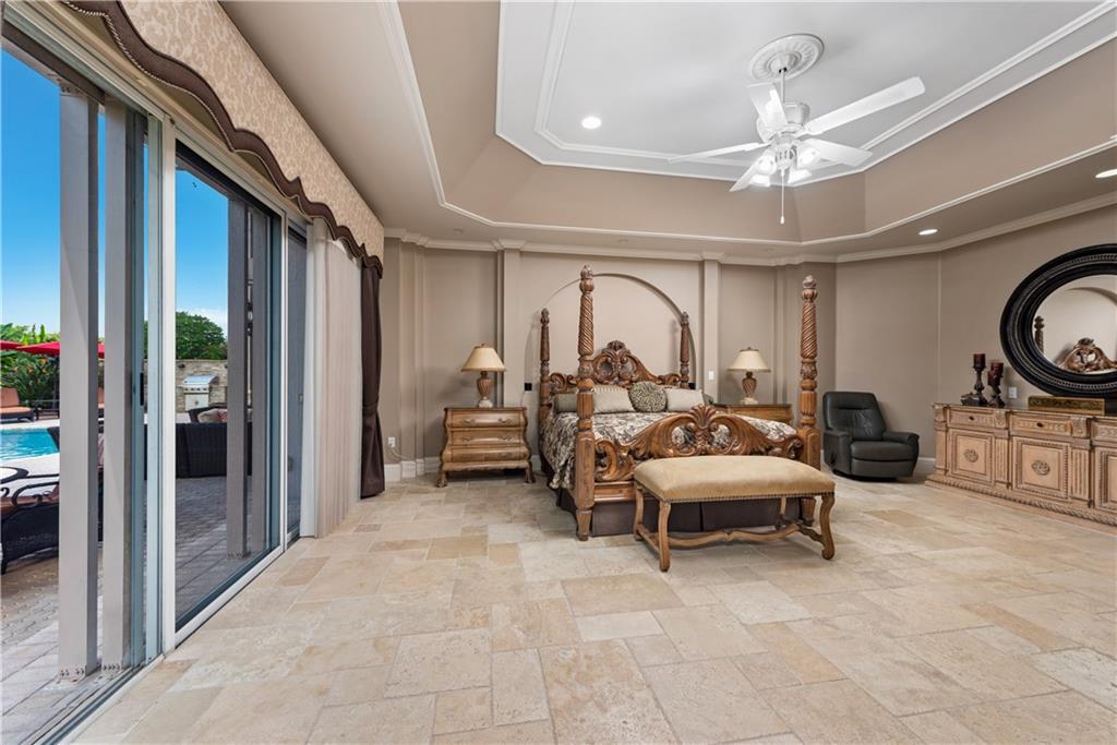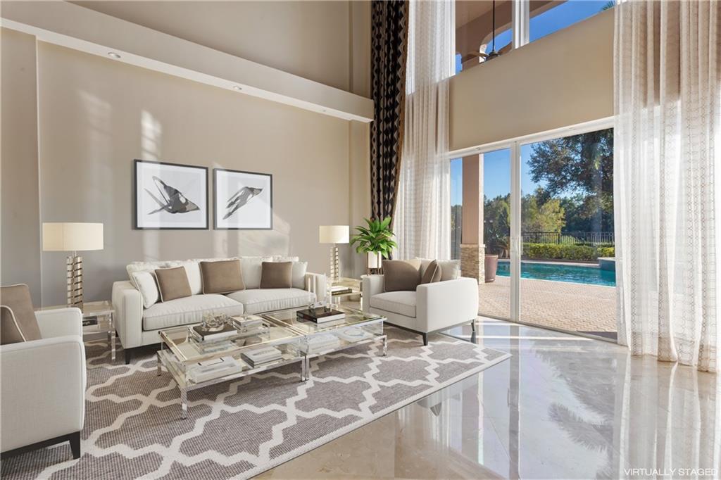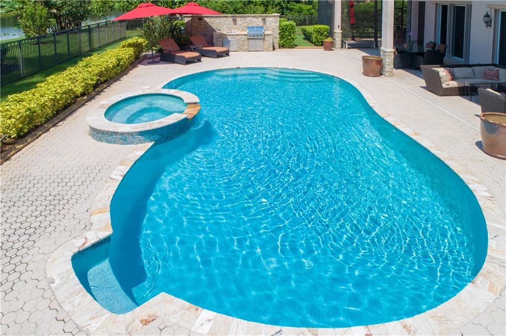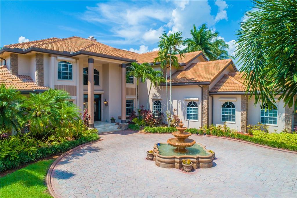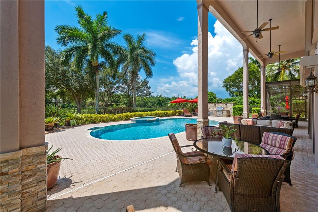 This spectacular Windmill Lake Estates home is privately nestled in an exclusively gated enclave of only 54 custom homes on acreage lots. Property boasts a grand driveway entrance with large fountain, beautifully manicured grounds, 2 story foyer, 7 bed/6 bath/ 2 half-baths, formal dining with butler’s pantry, formal living room with wet bar, and updated kitchen with center island and large pantry. Tumbled marble floors. Elegant master suite with separate sitting area overlooks the lush resort-style pool which offers complete privacy with no rear neighbors. Easily accessible air conditioned attic space, plenty of parking space, oversized garage, Rolladen hurricane protection throughout, new roof, hue lighting, nest smart home system, outdoor turf in backyard, and low HOA.